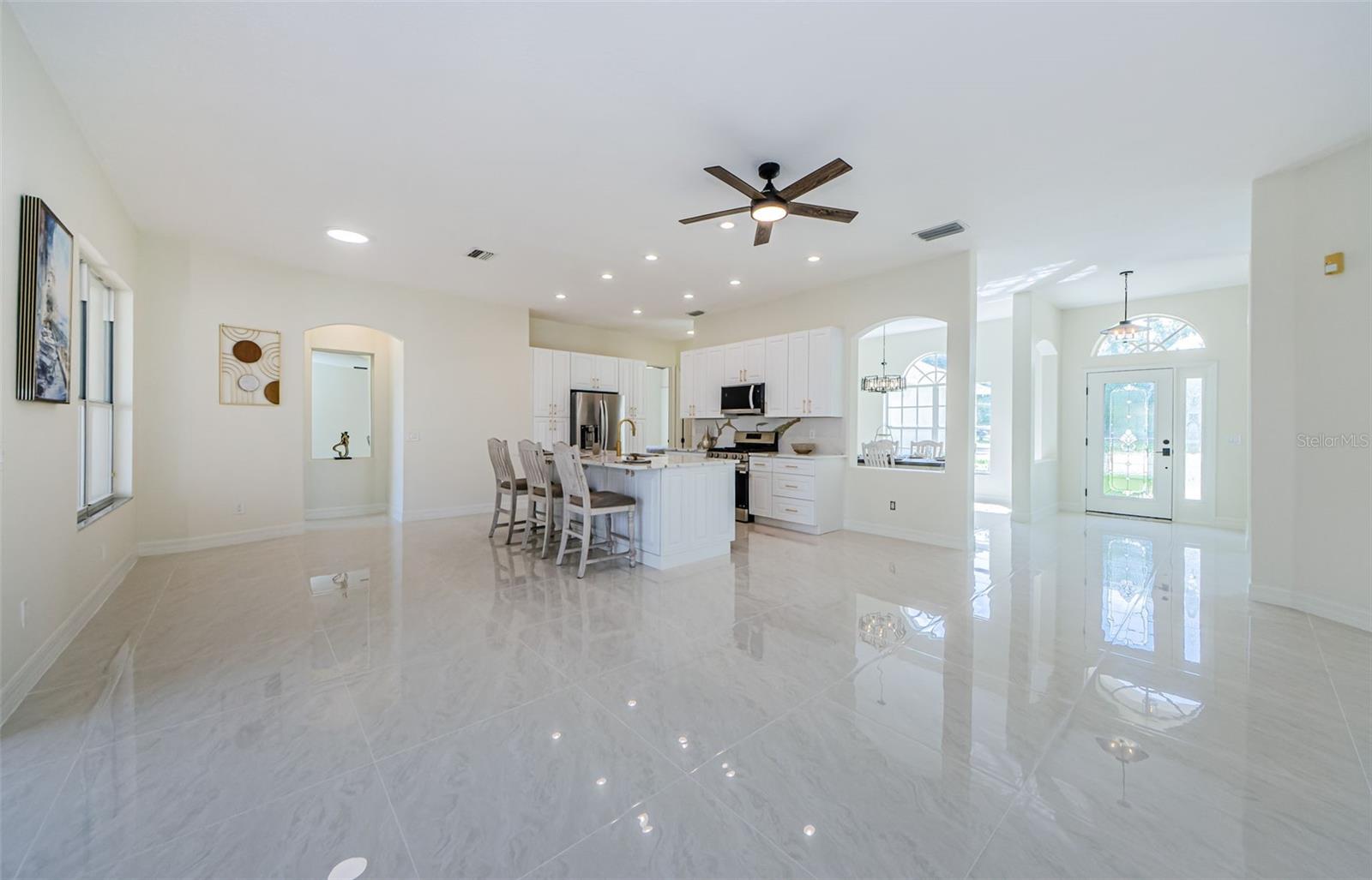 Piscina de 4 quartos completamente remodelada em casa em New Tampa, desejável! Teto substituiu 2022. Escondido em um beco sem saída tranquilo na comunidade procurada de New Tampa, esta casa de 4 banheiros e de 4 banheiros, lindamente renovada, oferece a mistura perfeita de luxo e conforto. Entre para descobrir um espaçoso piso plano aberto com ladrilhos de porcelana por toda parte, uma sala de bônus ideal para um escritório ou sala de jogos e elegantes acabamentos de grife em todos os cantos. No coração da casa, há uma cozinha de luxo deslumbrante, com uma ilha grande, armários modernos, bancadas premium e utensílios de aço inoxidável - perfeitos para cozinhar, entreter ou reunir com familiares e amigos. Descontraia o banho primário semelhante ao spa, com uma banheira de imersão e chuveiro. Do lado de fora, sua própria piscina privada no solo cria um oásis de quintal sereno-ideal para relaxar ou hospedar convidados. Viver em West Meadows significa comodidades no estilo resort à sua porta: desfrute de acesso a duas piscinas comunitárias, uma academia totalmente equipada, quadras de basquete e tênis, parques de cães, playgrounds e campos de beisebol e futebol bem conservados. É o ambiente perfeito para um estilo de vida ativo, a poucos minutos das escolas de melhor classificação, compras, restaurantes e grandes rodovias. Não perca a chance de possuir esta casa pronta para casa em um dos bairros mais vibrantes de New Tampa!