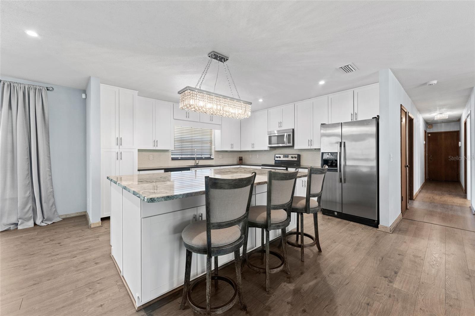 Situada em um lote GRANDE de 0,32 acres no coração de Carrollwood, esta casa com PISCINA em estilo rancho lindamente atualizada é imperdível! Oferecendo 3 quartos, 2 banheiros e 2.020 pés quadrados de área útil bem projetada, a casa é cercada por carvalhos maduros, paisagismo tropical e um jardim colorido que realça sua atmosfera privada e convidativa. No interior, você será recebido por um layout aconchegante e de conceito aberto, ancorado por uma impressionante lareira de pedra do chão ao teto e um amplo piso de tábuas com aparência de madeira. A cozinha totalmente renovada é uma verdadeira peça central, com armários brancos, bancadas de granito, uma enorme ilha central, eletrodomésticos de aço inoxidável e iluminação de designer. Os banheiros principal e de hóspedes foram lindamente atualizados com acabamentos elegantes e acessórios modernos, aumentando o apelo de pronta mudança da casa. Amplas portas de vidro deslizantes preenchem as áreas de estar e de jantar com luz natural e abrem para um quintal em estilo resort com uma piscina cintilante, várias áreas de estar e uma cozinha externa coberta com bar com tampo de granito, churrasqueira a gás embutida, ventiladores de teto e uma fogueira a gás - sua fuga no quintal durante todo o ano! Um grande galpão de armazenamento acrescenta conveniência, e o quintal totalmente cercado oferece um espaço tranquilo para relaxar. Os recursos adicionais incluem uma entrada de automóveis grande, garagem para 2 carros e um telhado de metal durável para tranquilidade a longo prazo. Sem HOA, sem taxas de CDD e sem necessidade de seguro contra inundações! Localizada no coração de Carrollwood e a poucos minutos do Aeroporto Internacional de Tampa, do centro de Tampa, do Raymond James Stadium, do George M. Steinbrenner Field, de restaurantes, lojas, instalações médicas e das praias - esta casa realmente oferece o melhor da vida na Flórida. Agende sua exibição privada hoje mesmo!