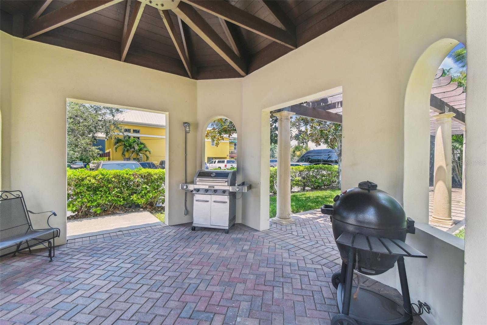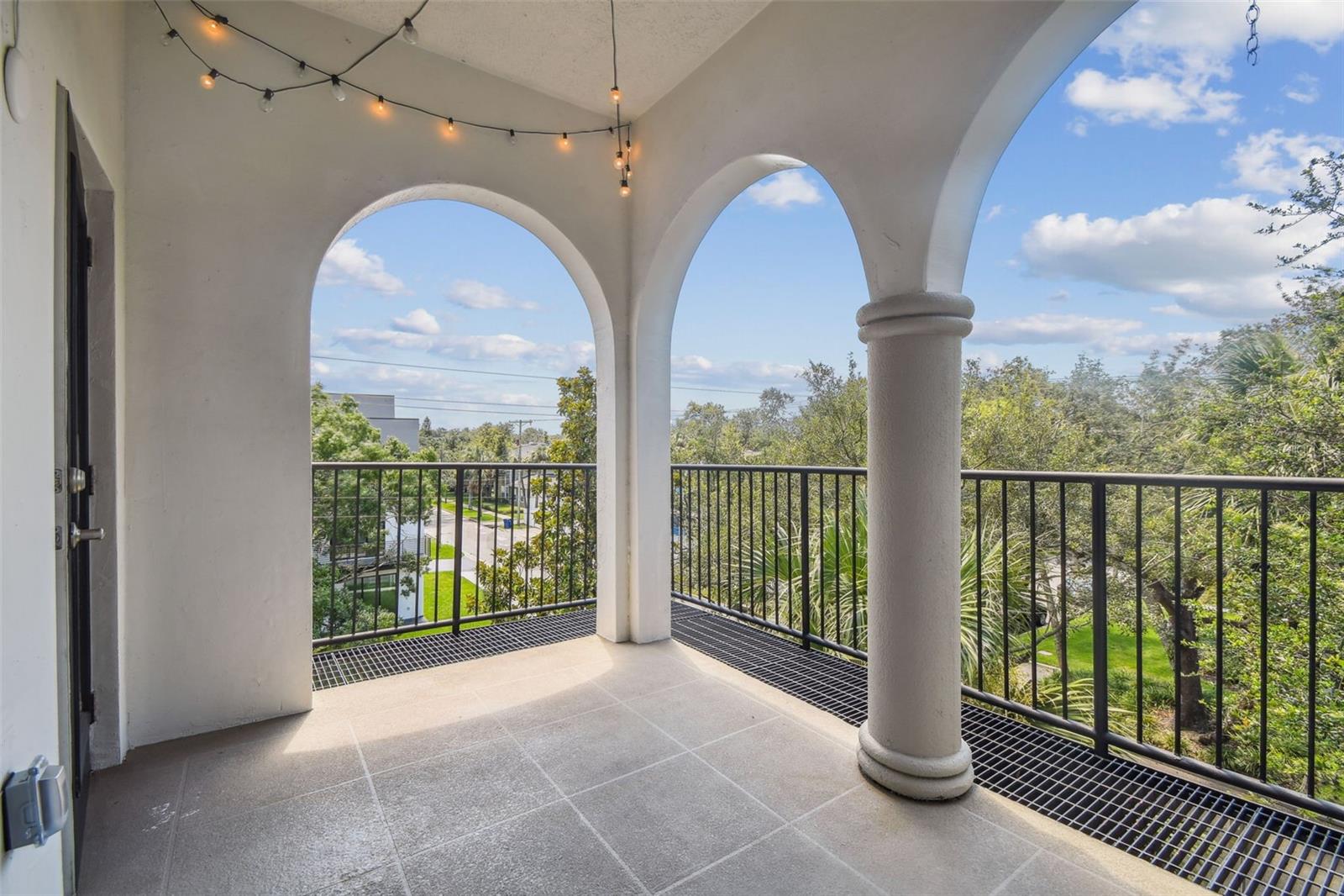Varanda, iluminação, grelha ao ar livre, caixa de correio privada, calhas de chuva, calçada, armazenamento