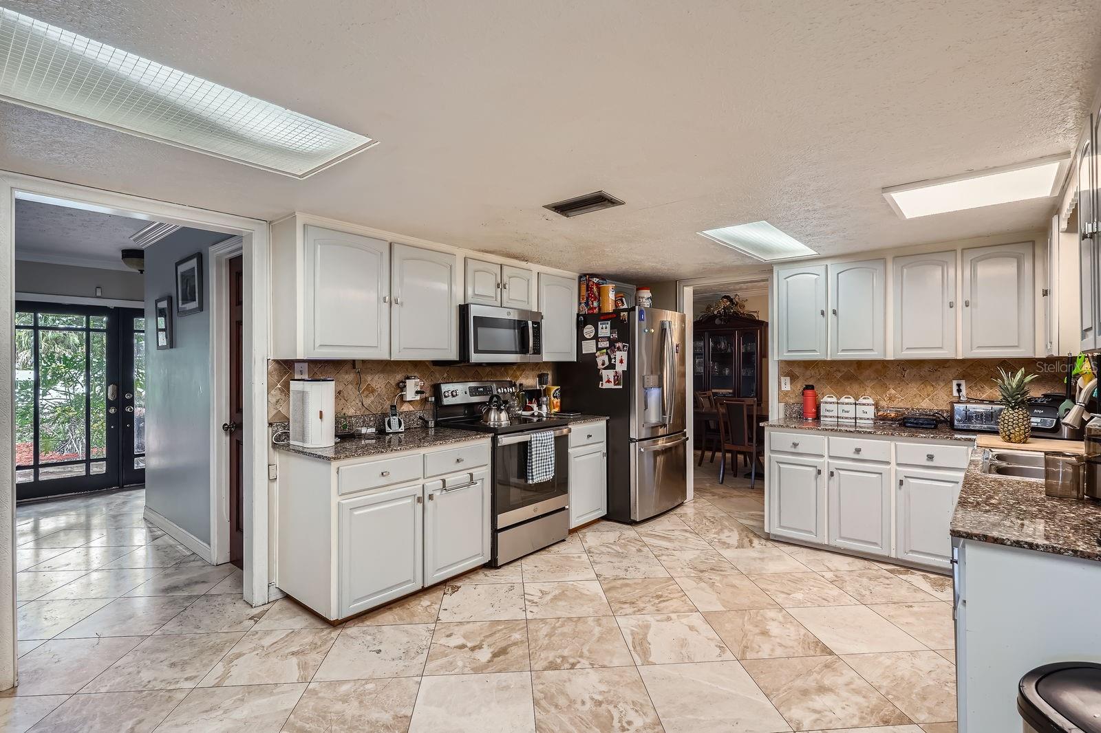 Aninhado em um bairro tranquilo na área do lago Madaleno, em Tampa, esta casa multigeracional amplia o estilo de vida da Flórida, com vários espaços de vida e entretenimento por dentro e por fora. O paisagismo exuberante e maduro levou às grandes portas de vidro duplo da varanda da frente do sul. Ao entrar nesta casa, encontra -se as salas de vida e jantar formal, emolduradas por belos degraus de madeira e portas de madeira. O piso de ladrilhos de grandes dimensões leva um através das salas generosas desta casa. A cozinha e o enorme recanto do café da manhã são perfeitos para várias estações de culinária, proporcionando aos moradores a capacidade de cozinhar, comer e entreter. Uma sala familiar é adjacente à cozinha e se presta a atividades menos formais. O quarto principal fica no primeiro andar. No andar de cima, há mais quatro quartos, incluindo uma sala privativa e mais dois banheiros. O Lanai exibido dá lugar a um oásis particular de entretenimento e diversão ao ar livre. Uma piscina de tamanho grande e um grande gazebo de cozinha ao ar livre facilitam o prazer de muitas horas de diversão com os amigos. O banho e o chuveiro da piscina são acessíveis de fora. Perto de I 275 e Dale Mabry, viajando de e para esta casa é uma brisa.