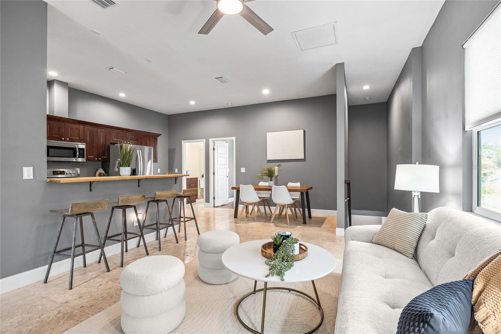 Esta casa de 2016 bem projetada em 2016, em Palmetto Beach, fica a poucos minutos do centro de Tampa, Channelside, Sparkman Wharf e Ybor City, você pode morar bem perto da ação, oferecendo o conforto e a privacidade de uma comunidade tranquila e sombreada por árvores. Localizada nos domicílios do leste de Channelside, você será recebido por arquitetura elegante, áreas comuns pizadas e carvalhos maduros que proporcionam uma atmosfera fria e convidativa. Lá dentro, a casa possui uma mistura impressionante de ladrilhos de porcelana, pisos de madeira ricos e tetos altos que criam uma sensação arejada e elegante. O piso térreo apresenta um vestíbulo espaçoso, uma grande sala de bônus perfeita para um escritório em casa, academia ou espaço para hóspedes e acesso direto a uma generosa garagem para dois carros. No andar de cima, o espaço de estar de conceito aberto oferece muito espaço para entretenimento, jantar e relaxar. O layout de quartos divididos garante a privacidade, com uma suíte primária que inclua um banheiro privativo e um quarto secundário conectado ao banho de hóspedes por meio de uma entrada privada de macacos. A cozinha no estilo da galera é um verdadeiro destaque, com balcões de açougueiro quente com uma barra de café da manhã, armários de madeira no estilo Shaker, uma pia de fazenda, utensílios de aço inoxidável, um recanto da despensa e uma conveniente área de lavanderia aberta. Os entusiastas do ar livre vão adorar o acesso próximo a McKay Bay, DeSoto Park e as trilhas e a torre de observação do McKay Bay Park - todas a uma curta distância. A Universidade de Tampa fica a aproximadamente 2,5 quilômetros de distância, e a Universidade do Sul da Flórida fica a cerca de 11 quilômetros de distância. Os investidores tomam nota: esta comunidade é amiga do Airbnb, tornando-a uma excelente oportunidade.