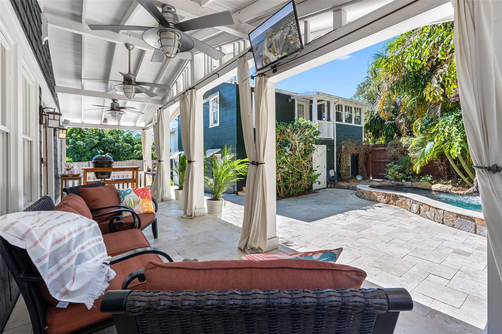Bem-vindo a este bangalô de movimentação lindamente restaurado, pronta, perfeitamente posicionada a 5 portas da Bayshore Blvd e a 2 quarteirões da vila de Hyde Park. Novos telhados e financiamento do vendedor disponíveis. Esta casa oferece 4 quartos, 4 banheiros, uma piscina/spa de coquetéis, além de uma casa de carruagem de 2 andares contendo dois apartamentos. A varanda acolhedora oferece uma vista da água e é um local perfeito para se reunir com amigos ou vizinhos. Upon entering through the 48” Craftsman front door you'll notice the abundance of natural light. Eye-catching refinished heart-of-pine wood floors lead into the open floor plan. Box beam ceilings, custom millwork, judges panels, crown molding, and built-ins can be found throughout. FIRST FLOOR:As you step inside, you’ll find the living room with a gas fireplace followed by a large dining room, which then opens to the recently remodeled (2023/24) Cozinha do chef. Quarto, onde um conjunto de portas francesas leva ao seu próprio pedaço de paraíso: o Lanai traseiro com uma piscina/spa aquecida, cercada por paisagismo tropical que fornece privacidade dos vizinhos. Chuveiro e uma grande banheira para relaxamento final. O segundo quarto é a suíte. O armazenamento, uma área coberta para estacionar um carrinho de golfe e uma estação de carregamento rápido da Tesla.