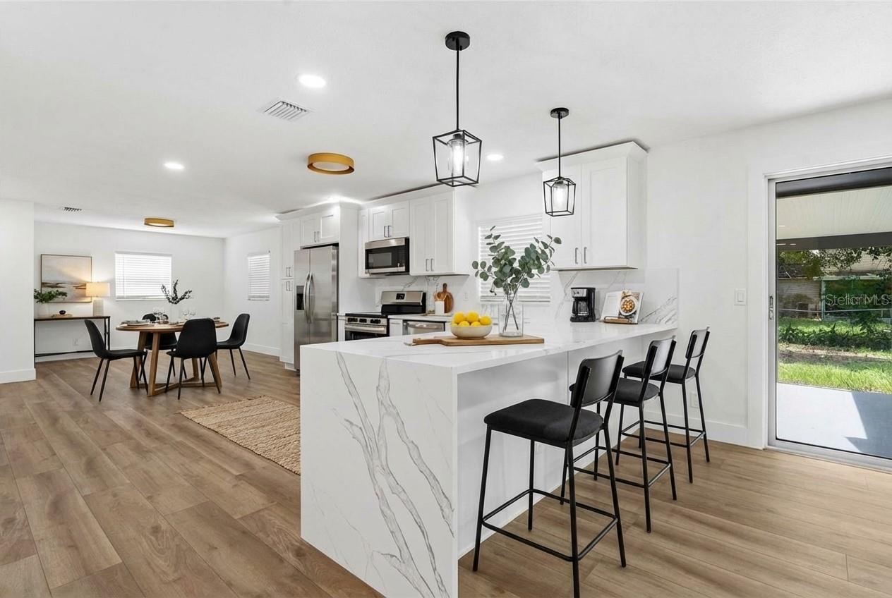 Uma ou mais fotos foram virtualmente encenadas. Totalmente remodelado Lake Ellen Gem em Carrollwood! 2512 Lake Ellen Cir, Tampa, FL 33618 Descubra a vida moderna no coração de Carrollwood com esta casa lindamente remodelada de 3 quartos e 2 banheiros localizada no cobiçado Lake Ellen Circle. Entre para encontrar um layout de conceito aberto com luxuoso piso de pranchas de vinil, pintura interna fresca e uma nova cozinha deslumbrante com bancadas de quartzo, armários shaker, eletrodomésticos de aço inoxidável e acabamentos de designer por toda parte. Ambos os banheiros foram totalmente atualizados com azulejos, penteadeiras e acessórios contemporâneos. As espaçosas áreas de estar e jantar oferecem excelente fluxo de entretenimento, enquanto as grandes janelas proporcionam muita luz natural. Desfrute da vida ao ar livre no quintal privado cercado com paisagismo maduro e muito espaço para reuniões ou relaxamento. Situado em um bairro tranquilo e estabelecido, a poucos minutos das melhores escolas, lojas, restaurantes e parques. Esta casa pronta para morar combina charme atemporal com atualizações elegantes - agende sua exibição hoje mesmo!