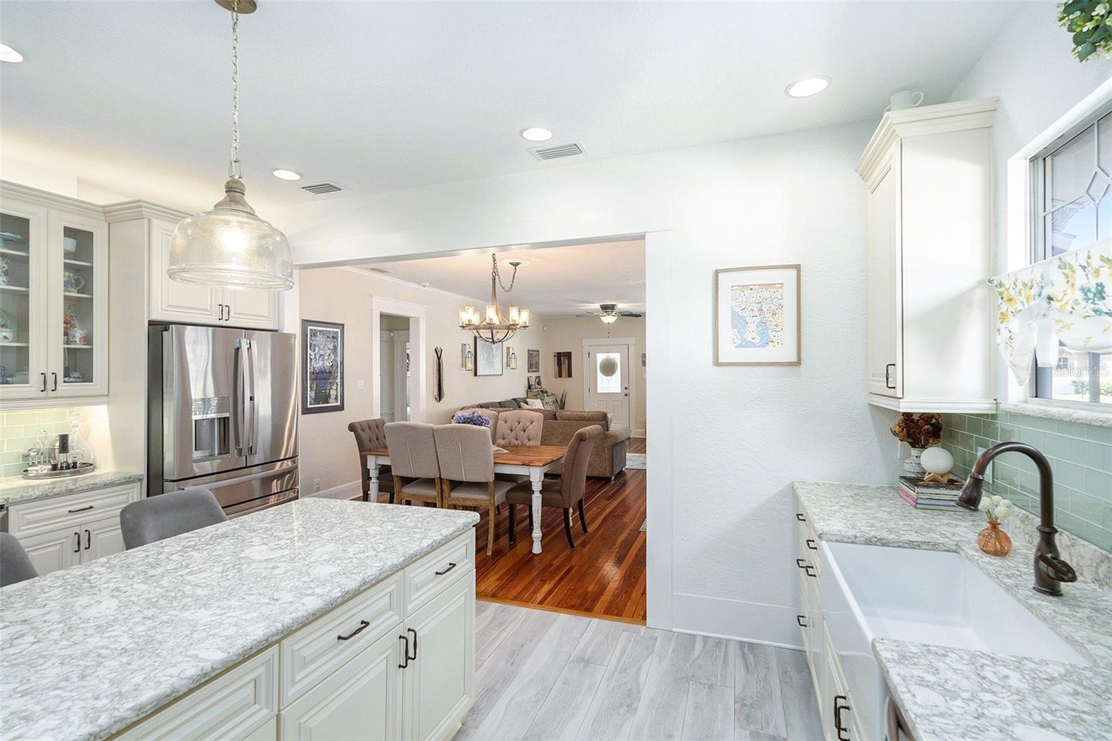 Bem -vindo ao seu santuário urbano no coração de Old Seminole Heights Este bangalô impressionante e totalmente renovado é a mistura perfeita de charme atemporal e luxo moderno, localizado em um dos bairros mais desejáveis de Tampa. A partir do momento em que você chegar, você será cativado pela varanda de grandes dimensões - ideal por beber seu café da manhã ou relaxar à noite no grande balanço. Entre em uma planta de piso de conceito aberto, projetado para entretenimento sem esforço, com acabamentos sofisticados por toda parte. Os pisos originais de madeira de pinheiro foram lindamente restaurados, e a elegante lareira é enquadrada por prateleiras embutidas personalizadas, adicionando calor e caráter ao espaço. A nova cozinha gourmet é o sonho de um chef, equipado com utensílios de aço inoxidável, bancadas de quartzo de Cambria, iluminação de grife e armários personalizados. A despensa espaçosa de um mordomo inclui um refrigerador de bebidas e um armazenamento generoso, tornando a hospedagem uma brisa. Nenhum detalhe foi negligenciado nesta casa cuidadosamente selecionada. O amplo layout inclui três quartos, um escritório dedicado com uma mesa e prateleiras embutidas, uma sala de lavanderia de grandes dimensões completa com uma pia de utilidade e mais de 1.900 pés quadrados de espaço de estar. A casa, equipada com gás natural para o fogão, secador e aquecedor de água, fica em um estacionamento de canto com uma garagem rara lado a lado de dois carros de carro, oferecendo acesso coberto à entrada lateral perto da cozinha e da área de jantar. Prepare -se para se surpreender com a suíte master - quase 600 pés quadrados de luxo puro. O banheiro semelhante ao spa fica diretamente de uma revista, com uma banheira de pé de garra, chuveiro massivo, vaidades duplas, uma parede atraente de ladrilhos de cimento, um lustre de declaração e um armário de água privado. O mestre também inclui um enorme armário personalizado com amplo armazenamento de sapatos embutido. Os quartos adicionais são generosamente de tamanho, cheio de luz natural e oferecem amplo espaço no armário. O segundo banheiro continua o charme do período da casa, com uma pia de pedestal, banheira de imersão profunda e lustre elegante. Além da bela estética, este lar oferece tranquilidade com atualizações estruturais feitas por LRE, um novo telhado, novo sistema HVAC, um aquecedor de água a gás natural, tudo em 2020 e uma nova cerca de vinil em 2024. Localizada a uma curta distância de alguns dos melhores restaurantes, cervejarias e lojas locais de Seminole Heights, incluindo a Casa C, Galo e o Toil, 82 West Distilling, Iology Brewing, Revolution Ice Cream, Front Porch, Mandarin Heights e New to The Area, The Salty Donut, este home extraordinário oferece conforto e conveniência e foi apresentado. Não perca a oportunidade de possuir esta casa de sonho cuidadosamente projetada em uma das comunidades mais vibrantes de Tampa!