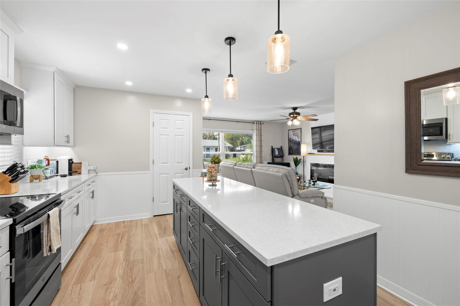 Esta casa lindamente atualizada de 3 quartos e 2 banheiros fica em um lote de canto de grandes dimensões em uma localização central e privilegiada-clossa para fazer compras, jantares, escolas, parques e grandes rotas de passageiros. A casa oferece uma planta baixa inteligente e eficiente, sem espaço desperdiçado, tornando todos os pés quadrados funcionais e confortáveis. No interior, você encontrará atualizações modernas, incluindo uma cozinha totalmente renovada (2024) com novos armários, pisos e utensílios de aço inoxidável (2022). Os quartos são espaçosos e os banheiros são bem conservados. As áreas de estar de conceito aberto fluem perfeitamente para a vida e entretenimento cotidianos. O vendedor concluiu uma longa lista de melhorias para garantir a paz de espírito para o próximo proprietário, incluindo: Novo telhado (2025) Janelas de impacto (2022) para proteção de tempestades e eficiência energética Painel elétrico atualizado (2021) com interruptor de transferência de gerador para facilitar a conexão de energia de backup A/C mais recente com duto (2016) Encanamento atualizado (2018) Aquecedor de água (2022) Isolamento aprimorado (2023) Paisagismo e tinta externa atualizada (2025) Pátio de concreto com cobertura de teto para diversão ao ar livre o ano todo Quintal cercado para privacidade Trabalho de trabalho dedicado para armazenamento ou projetos Sistema de câmera de segurança (2023) Esta casa oferece conveniência proibida com todos os principais sistemas atualizados, um pátio de baixa manutenção e excelente apelo ao meio-fio. O quintal cercado, o galpão de trabalho, o grande lote de canto e o sistema elétrico pronto para gerador fornecem tranquilidade e funcionalidade extra. Não perca a chance de possuir uma propriedade totalmente atualizada e localizada com detalhes atenciosos, um layout prático e atualizações que agregam valor para os próximos anos.