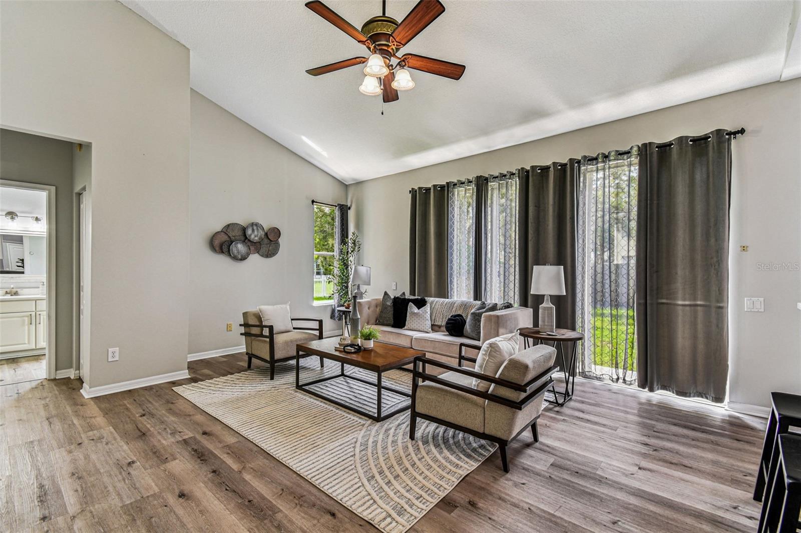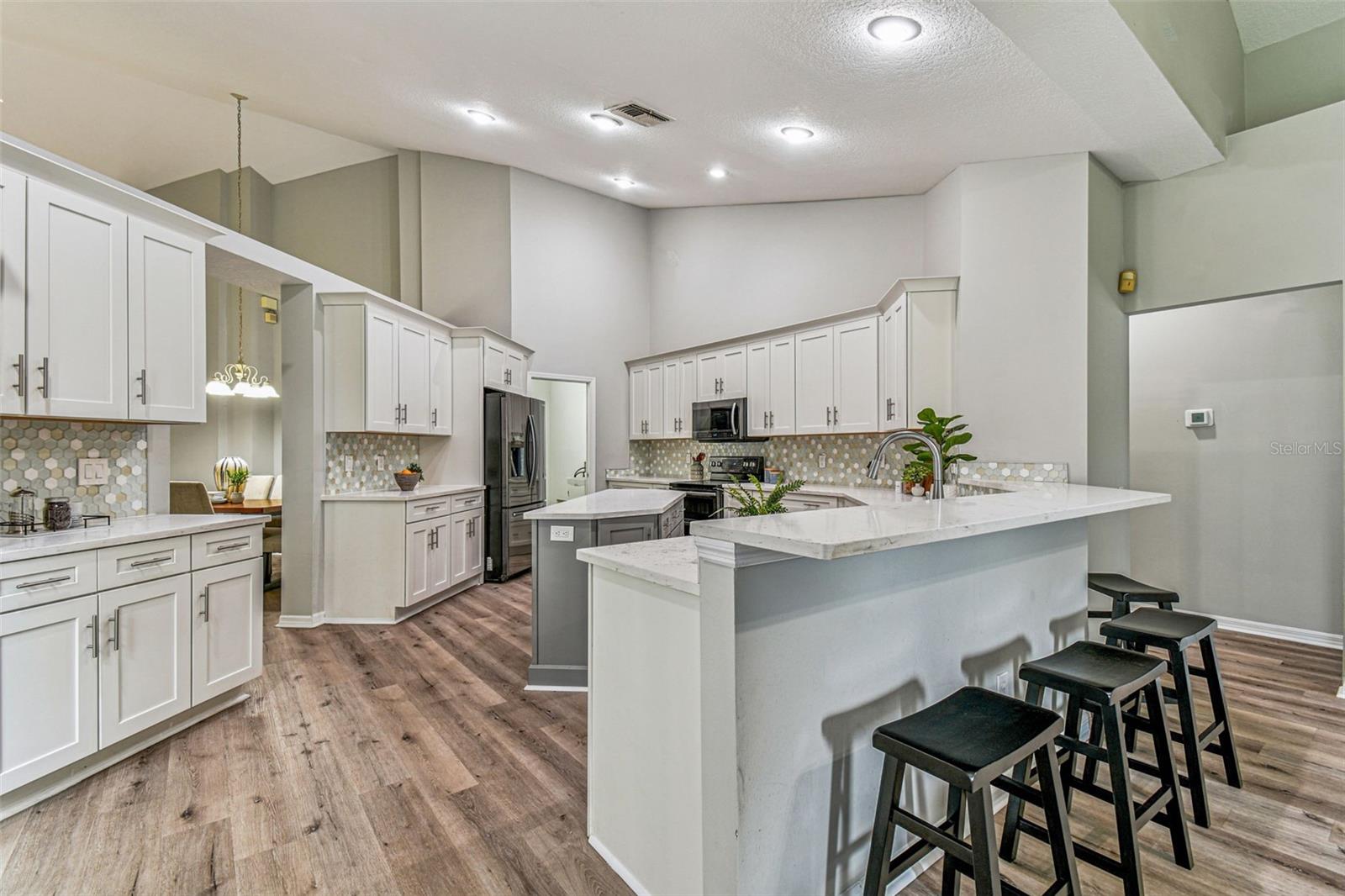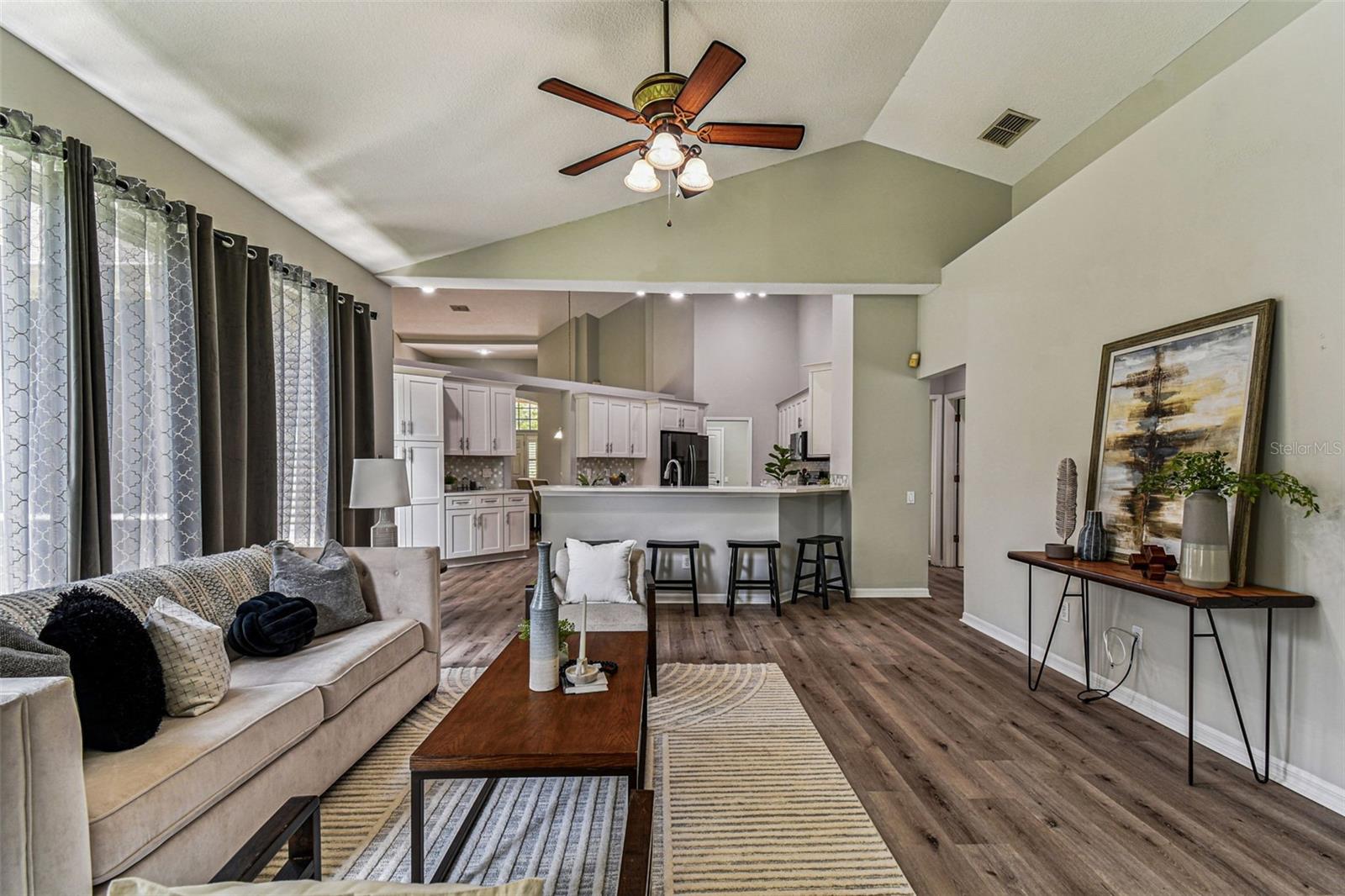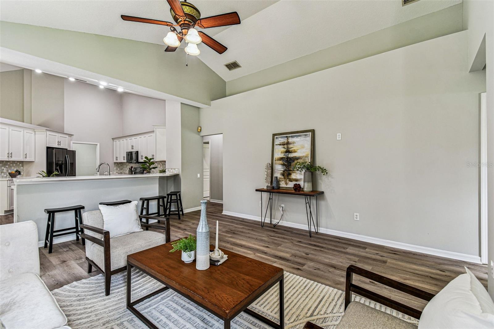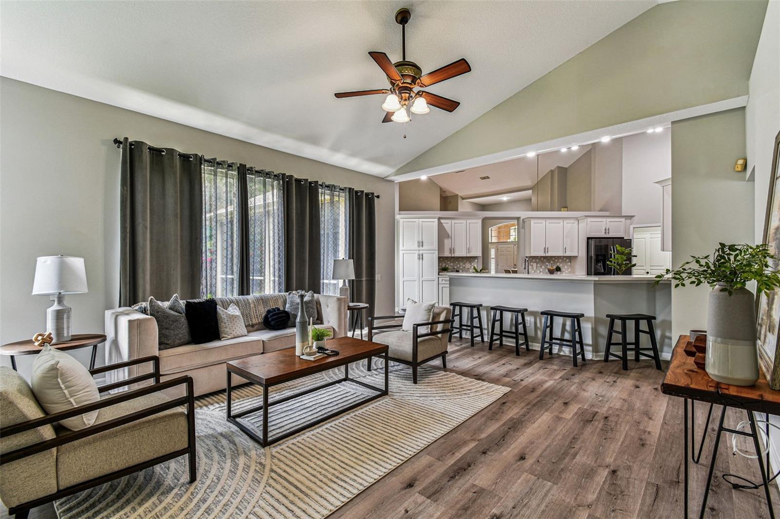 Uma oportunidade extraordinária de possuir um imóvel raro em TAMPA PALMS! Esta casa lindamente renovada situada em um terreno à beira-mar de 0,32 acres oferece 2.318 pés quadrados de espaço luxuoso, com 4 quartos, 3 banheiros e uma espaçosa garagem para 3 carros com tetos altos de mais de 15 pés em grande parte da casa. Nenhum detalhe foi esquecido nesta propriedade meticulosamente trabalhada. Uma longa lista de atualizações recentes de alta qualidade inclui uma nova cozinha (2022), piso de pranchas de vinil de luxo (2023), bancadas de quartzo (2023), pintura externa (2020), sistema HVAC (2020), telhado (2018) e muito mais! O coração da casa é a elegante cozinha e área de estar de conceito aberto, que se conecta perfeitamente ao enorme quintal cercado com belas vistas da água - oferecendo o cenário perfeito para uma vida descontraída em ambientes internos e externos! A suíte principal é um verdadeiro retiro com tetos abobadados, closet, banheiro reformado e acesso privativo à varanda com lindas vistas para o mar! Localizados na prestigiada comunidade de Wellington, em TAMPA PALMS, os residentes desfrutam de uma impressionante variedade de comodidades, incluindo tênis iluminado, pickleball, basquete, campos de futebol, vários playgrounds, pistas de corrida e acesso ao Tampa Palms Golf and Country Club, onde a família encontrará um campo de golfe de classe mundial projetado por Arthur Hills, comodidades excepcionais e um calendário social robusto! O clube ainda oferece um hotel boutique de luxo com 25 suítes para pernoites e hóspedes de fora da cidade! Conveniente para escolas de primeira linha, I-75, Wiregrass, Tampa Premium Outlets, hospitais e restaurantes, esta casa realmente oferece o melhor estilo de vida da Flórida em uma das comunidades mais procuradas de Tampa!