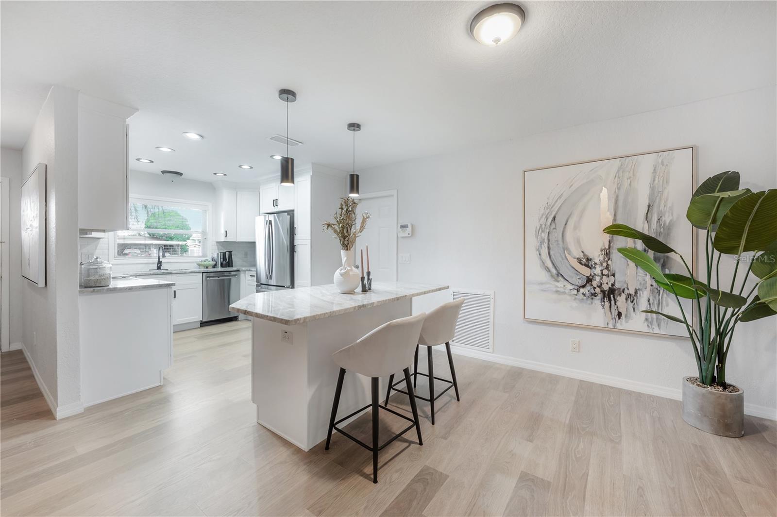 Retiro recém-remodelado de Tampa Bay Area em Dana Shores-Passos para o golfe, minutos para a praia! Bem-vindo à sua Florida descontraída que vive nesta casa recém-remediada com atualizações por toda parte. Lá dentro, você encontrará uma cozinha nova, piso de tábua de vinil de luxo, todas as novas portas internas com hardware atualizado, um interior recém-pintado para um visual nítido e convidativo ... e muito mais! A casa possui quatro quartos - dois dos quais são suítes primárias. Uma suíte, original para a casa, mas pensativamente modernizada, inclui um closet, um banheiro em suíte que economiza espaço, um ventilador de teto e uma janela que olha para a cozinha ao ar livre sombreada por uma grande treliça. A suíte recém-adicionada vem completa com um closet, um banho privativo em suíte com um chuveiro fechado de vidro com chuveiro de chuva e uma grande janela de imagens emoldurando vistas serenas da fuga da piscina tropical. Os dois quartos adicionais são de tamanho uniforme e bem projetados para conforto, cada um com grandes janelas, ventiladores de teto e armários generosos - perfeitos para família, convidados ou uso flexível. As principais áreas de estar fluem sem esforço. Uma sala de família aberta oferece janelas amplas com vista para a piscina do quintal e o pátio coberto, enquanto o aconchegante espaço para refeições cria um cenário caloroso para refeições diárias ou reuniões íntimas. Os móveis atuais são organizados para definir espaços de vida, família e jantar separados, mas o layout é altamente flexível e pode ser facilmente reimaginado para se adequar ao seu fluxo preferido. No coração da casa, a nova cozinha combina o estilo e a função com armários de madeira, bancadas de superfície sólida, iluminação LED, utensílios de aço inoxidável, espaço de contador generoso e uma ilha central versátil. Saia para o seu próprio oásis ao ar livre. A piscina de forma livre e cristalina é cercada por palmeiras balançando para privacidade, decks de pavimentação expansiva, uma fogueira para noites frias, uma cozinha externa coberta de treliça com assentos de bar, duas áreas de grama artificial e uma lanchone coberta para que a sala de estar sombreada. Um caminho para o trampolim leva à conveniente piscina/banho de hóspedes-perfeita para manter a diversão sem rastrear a água dentro. Tudo isso é ambientado em Dana Shores, um bairro procurado a poucos passos do campo de golfe Rocky Point, um campo de 18 buracos, par-71 na Florida Historic Golf Trail e um curto passeio de bicicleta até a Skyway Trail. Você também está a uma curta distância de carro das praias do Golfo, rampas de barcos públicos, restaurantes com classificação Michelin e dois aeroportos-incluindo a Tampa International mais bem classificada. Compras de classe mundial, centro de Tampa, parques à beira-mar e atrações culturais estão de fácil acesso. Mais sobre a comunidade em DanaShores.com e sobre o parque no complexo esportivo Skyway https://hcfl.gov/locations/skyway-sports-coplex. Rocky Point Golf Course https://www.rockypointgolf.net/ Porta da frente para ser pintada em breve. A cor nas fotos representa a nova cor que está por vir.