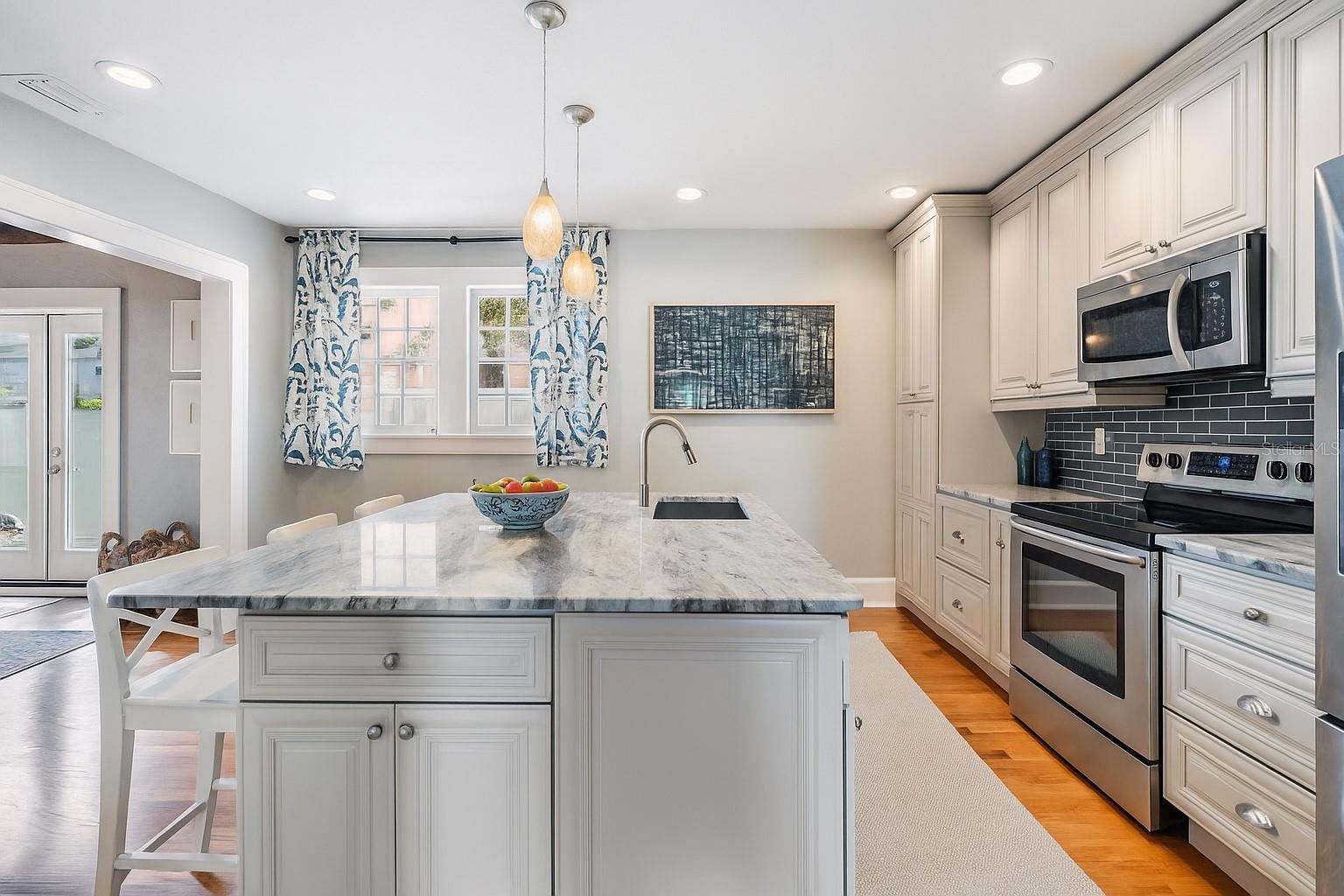 Charmoso Mediterrâneo da década de 1920 em Palma Ceia, em uma rua tranquila de tijolos que pode ser percorrida até 1983 e Cru, a poucos minutos do TGH, do centro da cidade e de MacDill. Desfrute de passeios tranquilos até Hyde Park Village, SoHo e Bayshore Boulevard — com acesso a escolas de bairro com classificação A e ao amado estilo de vida de Palma Ceia. Atualizada para a vida moderna, preservando seu caráter histórico, esta casa de 3 quartos/2 banheiros recebe você com madeiras originais, tetos e vigas de cipreste/cedro, janelas e portas emolduradas, portas internas vintage com ferragens originais e uma lareira decorativa de tijolos. Uma convidativa sala de jantar oferece acesso por porta francesa a um pátio lateral e ao quintal sombreado e cercado de privacidade - perfeito para o café da manhã ou noites relaxantes. A cozinha aberta combina calor e função com armários elegantes, backsplash escuro de azulejos de metrô, iluminação sob o armário e incluindo um refrigerador de vinho embaixo da bancada para entretenimento sem esforço. Uma lavanderia interna dedicada acrescenta conveniência ao dia a dia. A espaçosa suíte principal - posicionada na parte traseira para maior privacidade - apresenta detalhes cuidadosos, incluindo closet verdadeiramente personalizado, pias duplas, balcões de granito e chuveiro com efeito de chuva. Dois quartos adicionais (com opção de porta comunicante) compartilham um banheiro clássico completo com pia de pedestal e azulejos em favo de mel. Incomum para uma casa desta época, o layout oferece armazenamento excepcional por toda parte. O quintal gramado profissionalmente oferece excelente privacidade e inclui uma pérgula sombreada, fogueira e várias áreas para relaxar ou entreter - um retiro convidativo para tardes ensolaradas e noites relaxantes. Árvores maduras, calçadas e espaços ao ar livre cuidadosamente projetados completam uma casa que foi excepcionalmente bem cuidada e mantida com amor, refletindo o que há de melhor na vida em Palma Ceia. Atualizações notáveis: • Telhado (2017) • HVAC (2017) • Adição de cama/banheiro primário (2016) • Trabalho estrutural (2015) • Encanamento substituído (2004) com linha de esgoto atualizada para PVC (2006) • Elétrica substituída (2004)