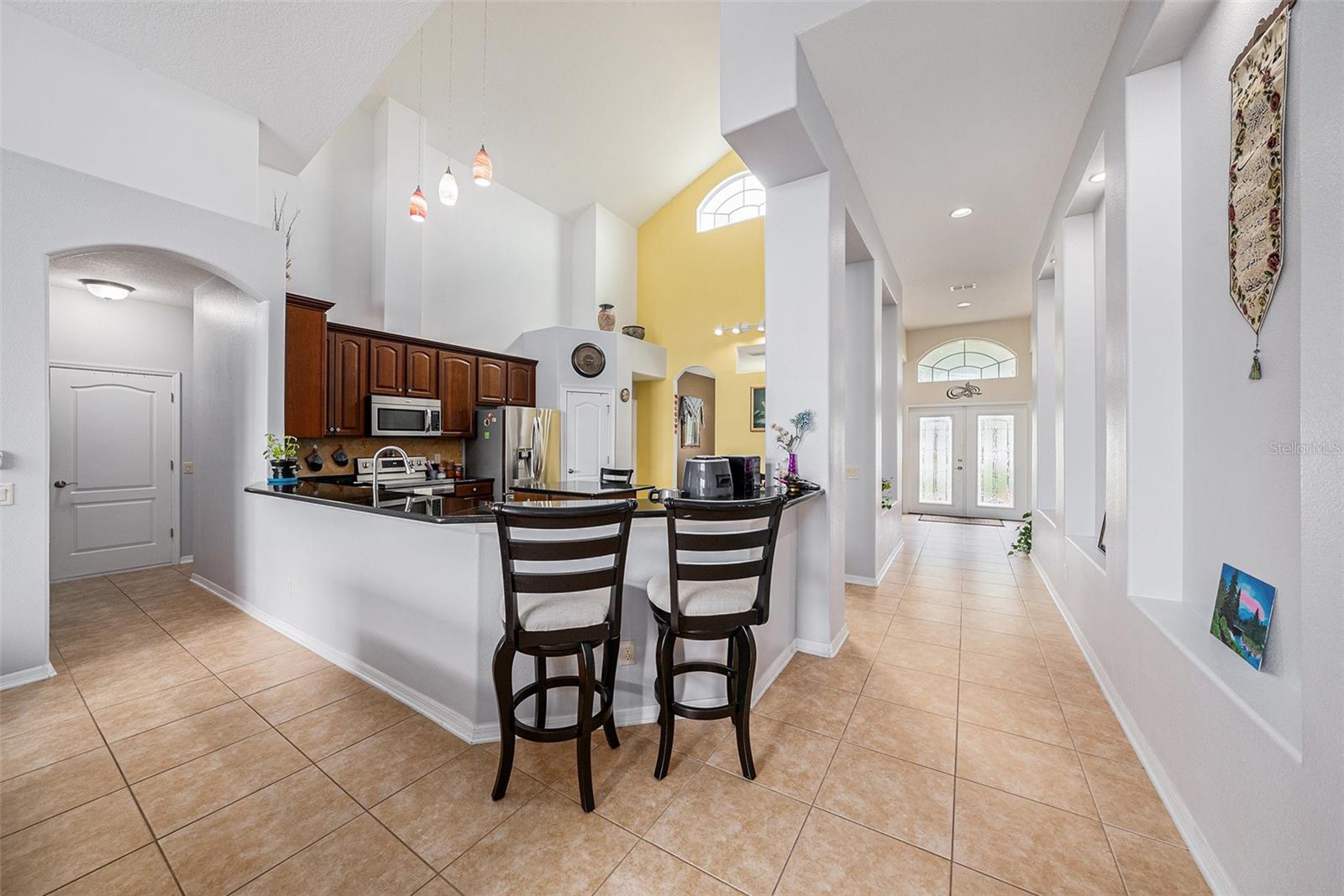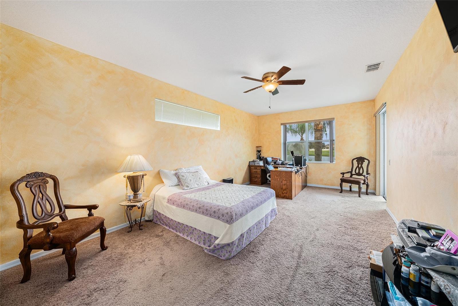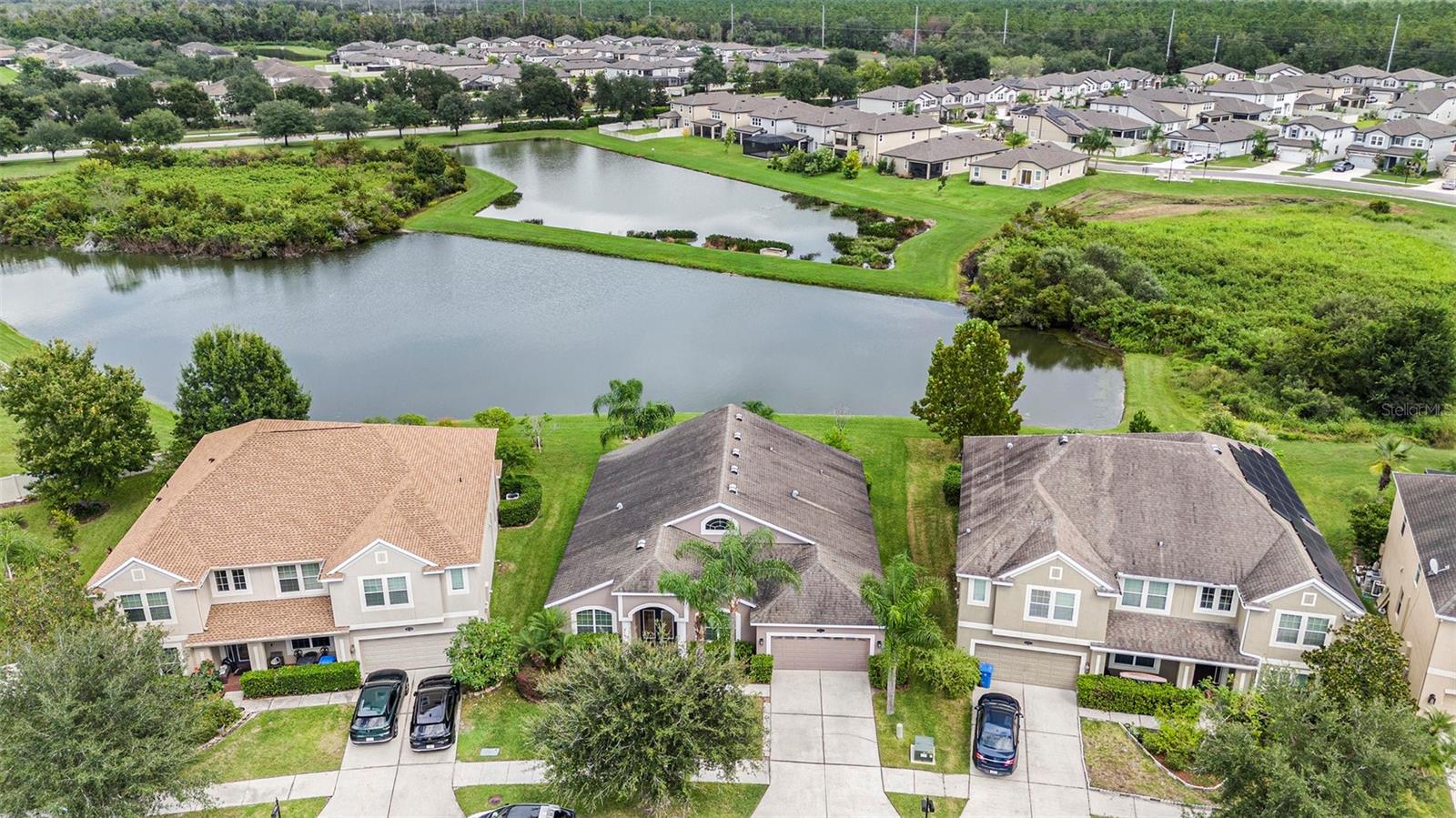 Bem-vindo a esta impressionante casa de 4 quartos e três banheiros com uma garagem de 2 carros localizada na desejável comunidade de Easton Park. With 2,626 sq ft of living space, this residence showcases thoughtful upgrades including granite countertops, 42" cabinets, hardwood flooring in the formal living and dining rooms, ceramic tile throughout all common areas, and drywall rounded corners. Wake up to sunrise in both primary bedrooms, or watch it over the pond, from the kitchen or the family living room. The exterior features beautiful landscaping with mature palm As árvores do layout de conceito aberto conectam a cozinha à família com áreas de jantar, criando um espaço funcional e acolhedor. Bacia de lavagem útil.