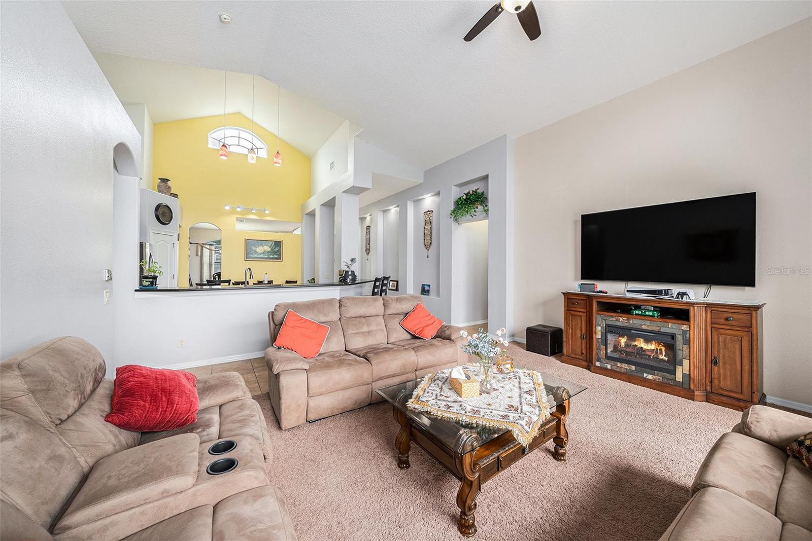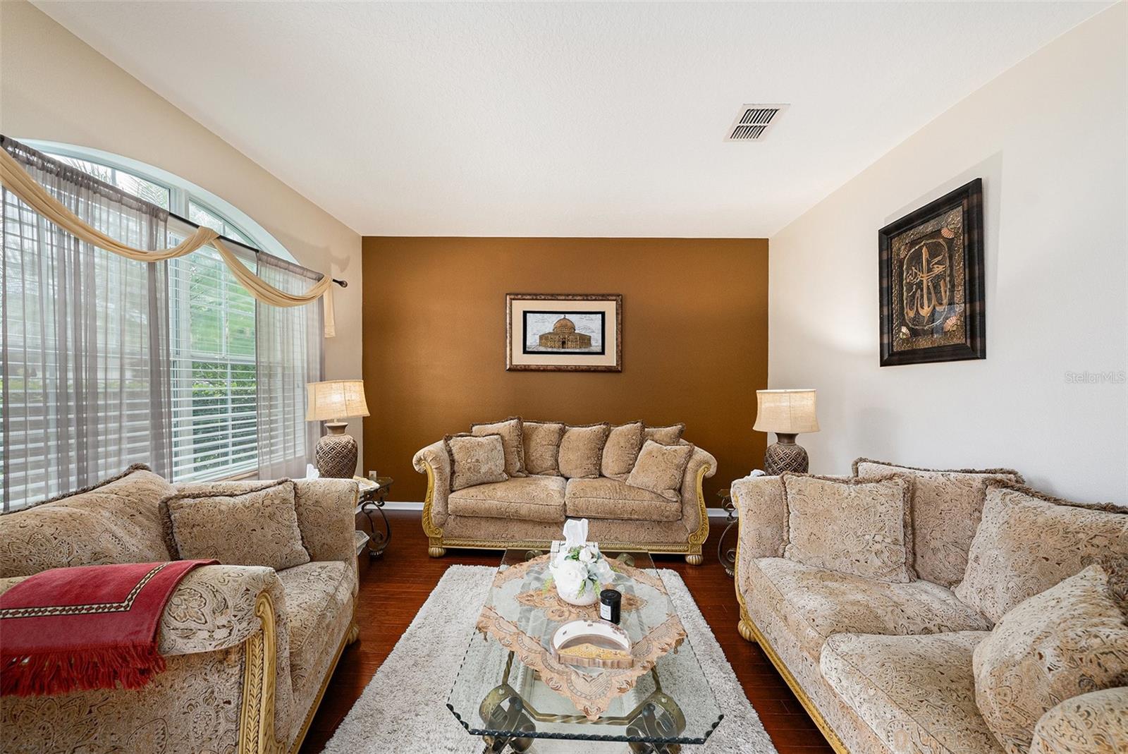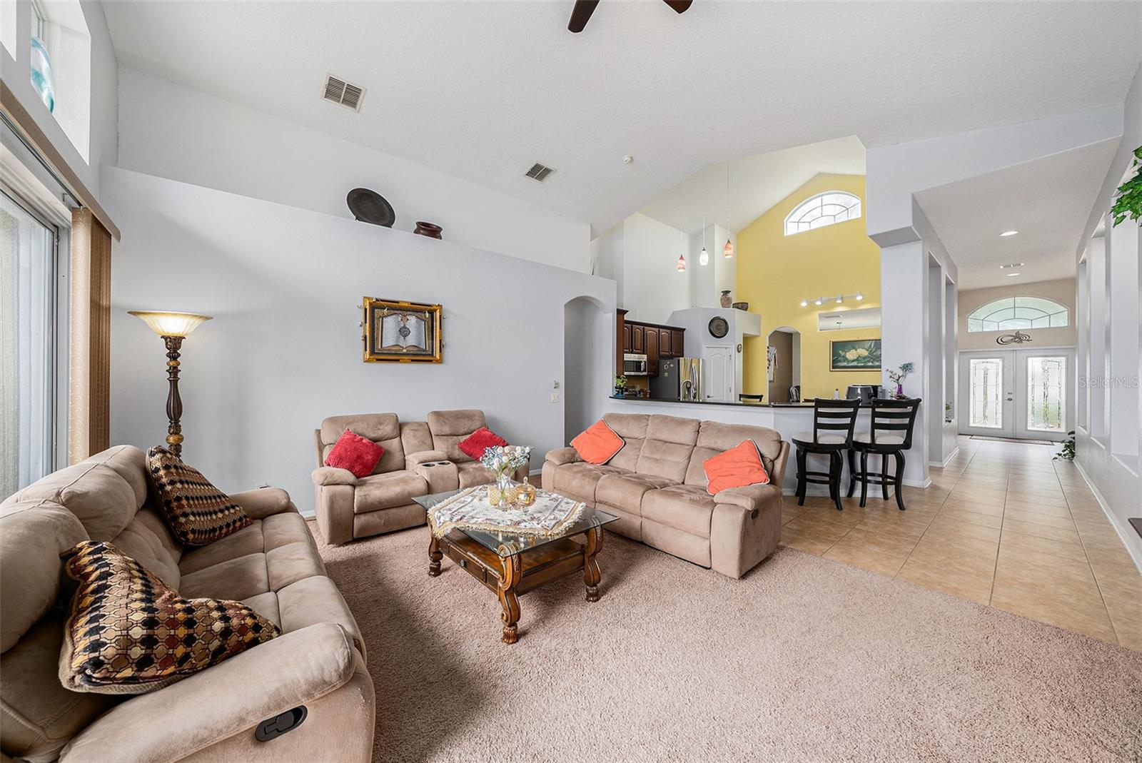Bem-vindo a esta impressionante casa de 4 quartos e três banheiros com uma garagem de 2 carros localizada na desejável comunidade de Easton Park. With 2,626 sq ft of living space, this residence showcases thoughtful upgrades including granite countertops, 42" cabinets, hardwood flooring in the formal living and dining rooms, ceramic tile throughout all common areas, and drywall rounded corners. Wake up to sunrise in both primary bedrooms, or watch it over the pond, from the kitchen or the family living room. The exterior features beautiful landscaping with mature palm As árvores do layout de conceito aberto conectam a cozinha à família com áreas de jantar, criando um espaço funcional e acolhedor. Bacia de lavagem útil.