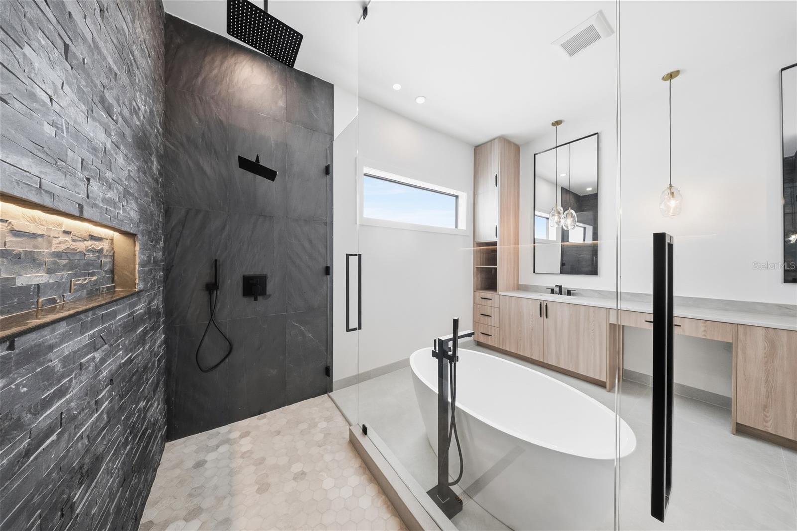 Em construção. Nova construção sofisticada no centro da cidade Esta nova casa de 5 quartos e 5,5 banheiros abrange 3.420 pés quadrados de área elevada, habilmente trabalhada com acabamentos luxuosos e funcionalidade cuidadosa por toda parte - e o melhor de tudo, não localizada em uma zona de inundação. No interior, paredes lisas de nível 4 e pisos de madeira de carvalho criam um cenário refinado e minimalista. A grande sala de conceito aberto possui uma lareira elegante, ladeada por arandelas de design e banhada por luz natural. A cozinha do chef impressiona com painéis pretos canelados na ilha, armários personalizados de carvalho branco e preto e iluminação pendente impressionante - tudo perfeitamente conectado ao bar e à despensa para entretenimento sem esforço. Suba as escadas para a suíte principal do segundo andar, onde a serenidade de um spa o aguarda com uma banheira independente, chuveiros duplos, um lustre sobre a banheira e um layout de penteadeira de carvalho branco acentuado por ousados encanamentos pretos. Cada detalhe foi considerado - desde uma elegante lavanderia dupla até iluminação selecionada, incluindo um lustre moderno na escada, louças sanitárias douradas e arandelas em camadas nos corredores. A casa também oferece acesso à varanda e ao pátio, confundindo as linhas internas e externas. Saia para o seu oásis particular: uma elegante piscina e spa cercado por uma paisagem exuberante e iluminação externa cuidadosa. Esteja você relaxando com a família ou recebendo convidados, esta casa oferece estilo de vida e luxo. As fotos atuais da listagem são de 3406 Arch St, esta casa terá o mesmo nível de acabamentos com uma paleta de cores diferente.