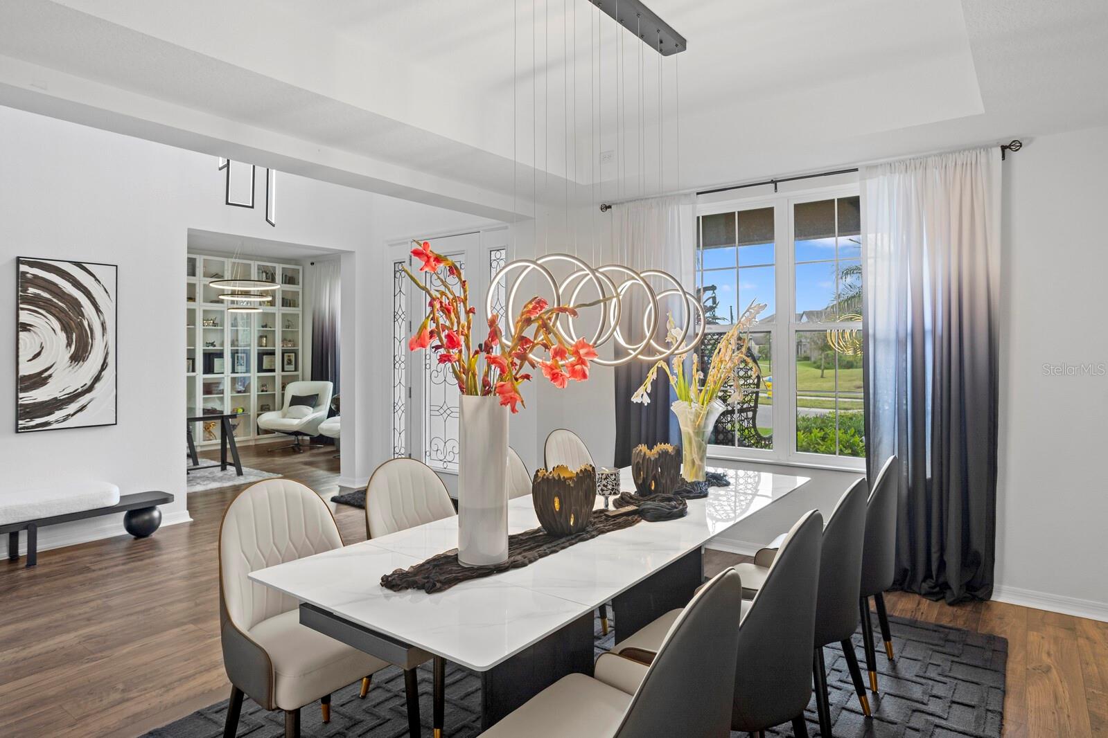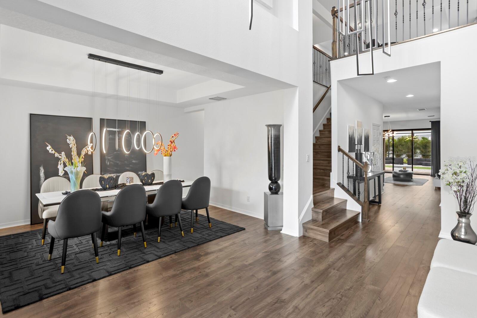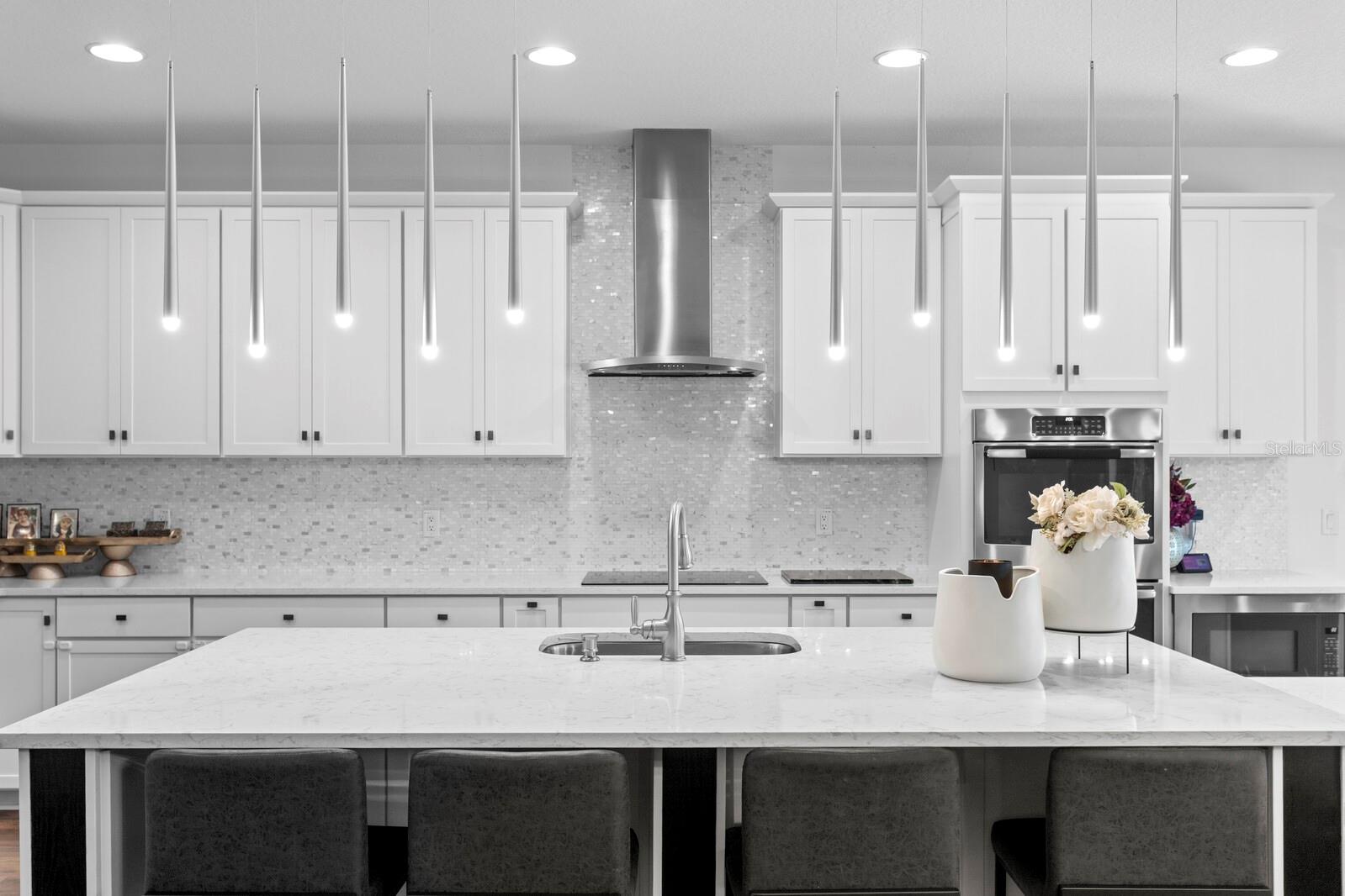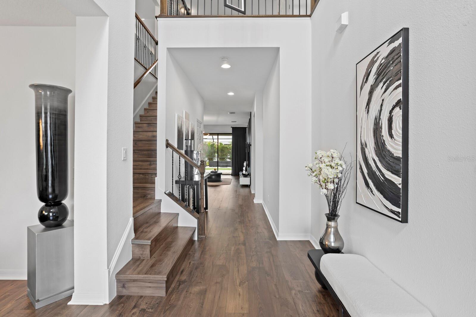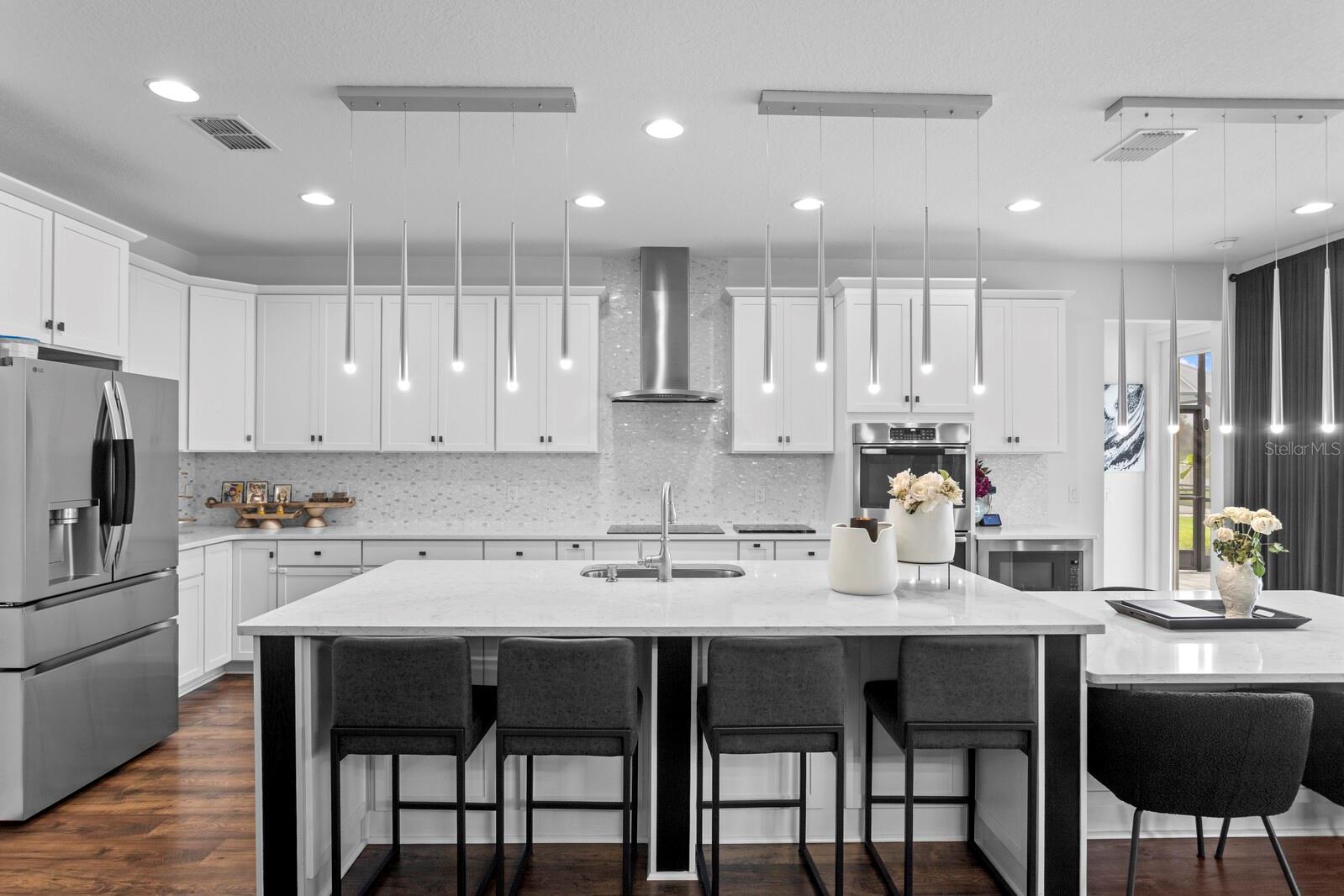 Em um beco sem saída tranquilo na seção de propriedade do K-Bar Ranch, onde as casas repousam em lotes maiores com espaço e privacidade entre eles, essa residência de canto se destaca. Uma largura de garagem de pavimentadora e paisagismo tropical maduro criam uma primeira impressão graciosa, definindo o tom para o que aguarda dentro. A entrada se desdobra em um hall de altura de alta altura, onde um lustre personalizado paira acima dos pisos de madeira de engenharia que transportam pelos principais espaços de estar. Para um lado, uma sala de jantar formal brilha sob a iluminação escultural, enquanto um escritório dedicado com prateleiras embutidas oferece um retiro perfeito para o trabalho de casa. No coração da casa, a cozinha é uma peça de exibição e um espaço de reunião, ancorado por balcões de quartzo, um layout de ilhas duplas, um backsplash de mosaico cintilante e pingentes de lágrima elegantes. Ele flui sem esforço para a sala de estar, onde uma parede de destaque ousada e os controles deslizantes do chão ao teto estão vistas do ar livre. Passo para descobrir mais de 2.000 pés quadrados de lanai exibido, projetado com um padrão de pavimentação atualizado e embutido de grama-uma verdadeira sala de estar ao ar livre com vista para a lagoa, com as palmas das palmas das mãos alinhadas no recinto para privacidade e ambiente semelhante ao resort. A suíte do proprietário está localizada no andar de baixo, oferecendo conveniência e privacidade com um banho inspirado em spa, com duas vaidades de quartzo, uma banheira de imersão embrulhada em ladrilhos de mármore e um chuveiro de vidro sem moldura. Uma suíte de hóspedes adicionais no térreo, com banho de suíte, oferece a acomodação perfeita para a família ou visitantes extensos. No andar de cima, a casa continua com quatro quartos espaçosos servidos por dois banheiros completos, além de uma grande sala de jogos e uma sala de mídia que está sendo usada atualmente como um quarto adicional, completo com seu próprio banheiro atualizado. No total, a casa oferece seis quartos, quatro banheiros completos e duas meias banheiros em um layout que equilibra grande escala com conforto habitável. Em toda a casa, o senso de cuidado é inconfundível. Além das extensas atualizações dos construtores, os proprietários investiram cuidadosamente em iluminação, acabamentos e detalhes do design que trazem coesão e elegância atemporal - uma casa cuidadosamente mantida e elevada muito além de sua construção original. A vida no K-Bar Ranch combina tranquilidade com conveniência. Os moradores desfrutam de comodidades no estilo resort, incluindo uma piscina, clube e playgrounds, tudo a poucos minutos do wiregrass, Publix, Jantar ao longo de Bruce B. Downs, Morris Bridge Road e fácil acesso à I-75. Isso é mais do que uma casa; É uma residência projetada para viver lindamente, onde todas as melhorias foram feitas com intenção e todo espaço convida você a ficar um pouco mais.