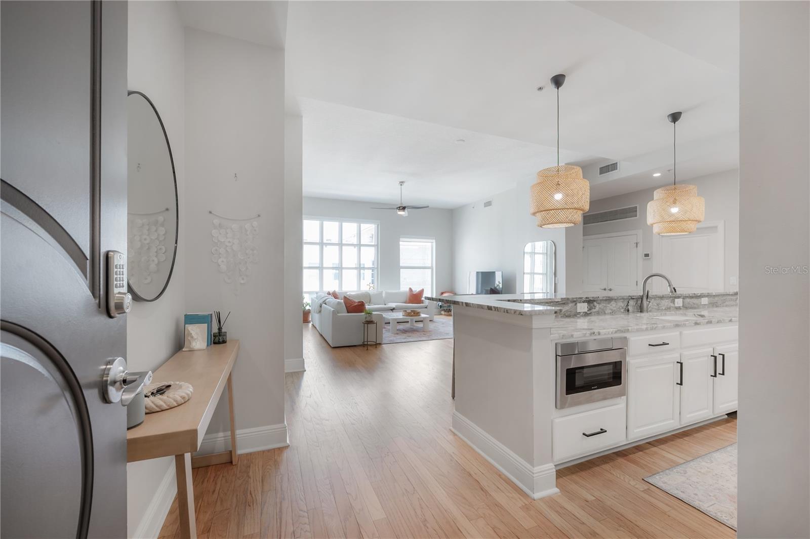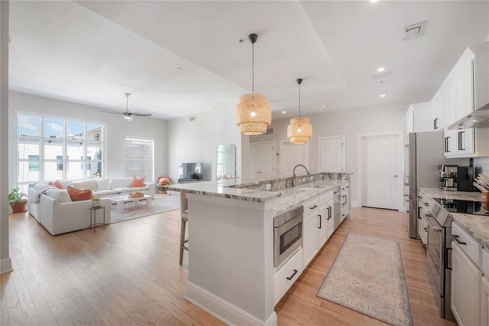 Bem -vindo à sua própria fatia do paraíso no coração de Channelside! Esta residência recentemente atualizada do 10º andar em Ventana é uma jóia rara que combina perfeitamente luxo, conveniência e estilo. Entre neste requintado condomínio de 2 quartos e 2 banheiros e você notará imediatamente o quão brilhante e arejado o espaço se sente. Os tetos altos de 12 pés, uma planta baixa aberta e tons neutros criam uma atmosfera cheia de luz que parece espaçosa e convidativa. Seja entretendo os hóspedes ou aproveitando o tempo tranquilo, todos os quartos são projetados para se sentir confortáveis e levantar. Os pisos de madeira refinados adicionam calor e fluem lindamente por toda parte, enquanto a cozinha é um verdadeiro showstopper com bancadas naturais de quartzito, armários de madeira branca sólida e utensílios de aço inoxidável premium. Os banheiros continuam a sensação elevada com balcões de quartzo e luminárias modernas e elegantes. Novas tonalidades de janelas permitem controlar a luz natural, mantendo a privacidade, e um novo AC de transagem garante o conforto o ano todo. Entre na espaçosa varanda para absorver a vista do canal da guarnição e da área de recreação do quarto andar e spa, perfeita para relaxar com um café da manhã ou relaxar no final do dia. Ventana é uma comunidade de luxo boutique que parece um retiro cosmopolita, oferecendo comodidades de primeira linha, como piscina, spa, sauna, academia, churrasqueiras a gás, espaços de jantar ao ar livre e um serviço de concierge dedicado. A localização é imbatível. Do lado de fora da sua porta, você encontrará supermercados, salões, spas, restaurantes e vida noturna. Sparkman Wharf, Water Street e os terminais de cruzeiros estão todos a momentos de distância, permitindo que você experimente o melhor de Tampa vivendo com facilidade. Não perca esta oportunidade de possuir uma casa brilhante, arejada e luxuosa em Channelside. Este condomínio é o equilíbrio perfeito de design moderno, conforto e conveniência prontos para você chamá -lo de lar.