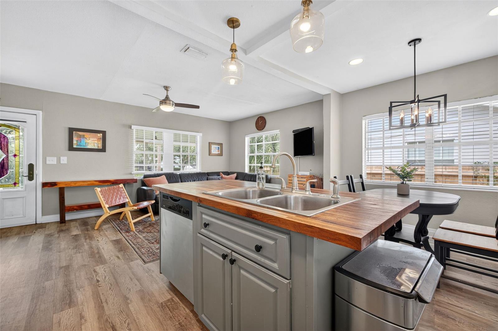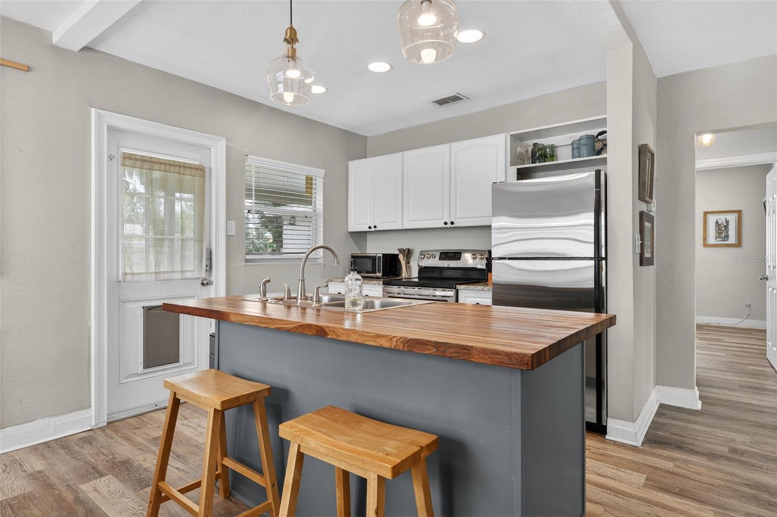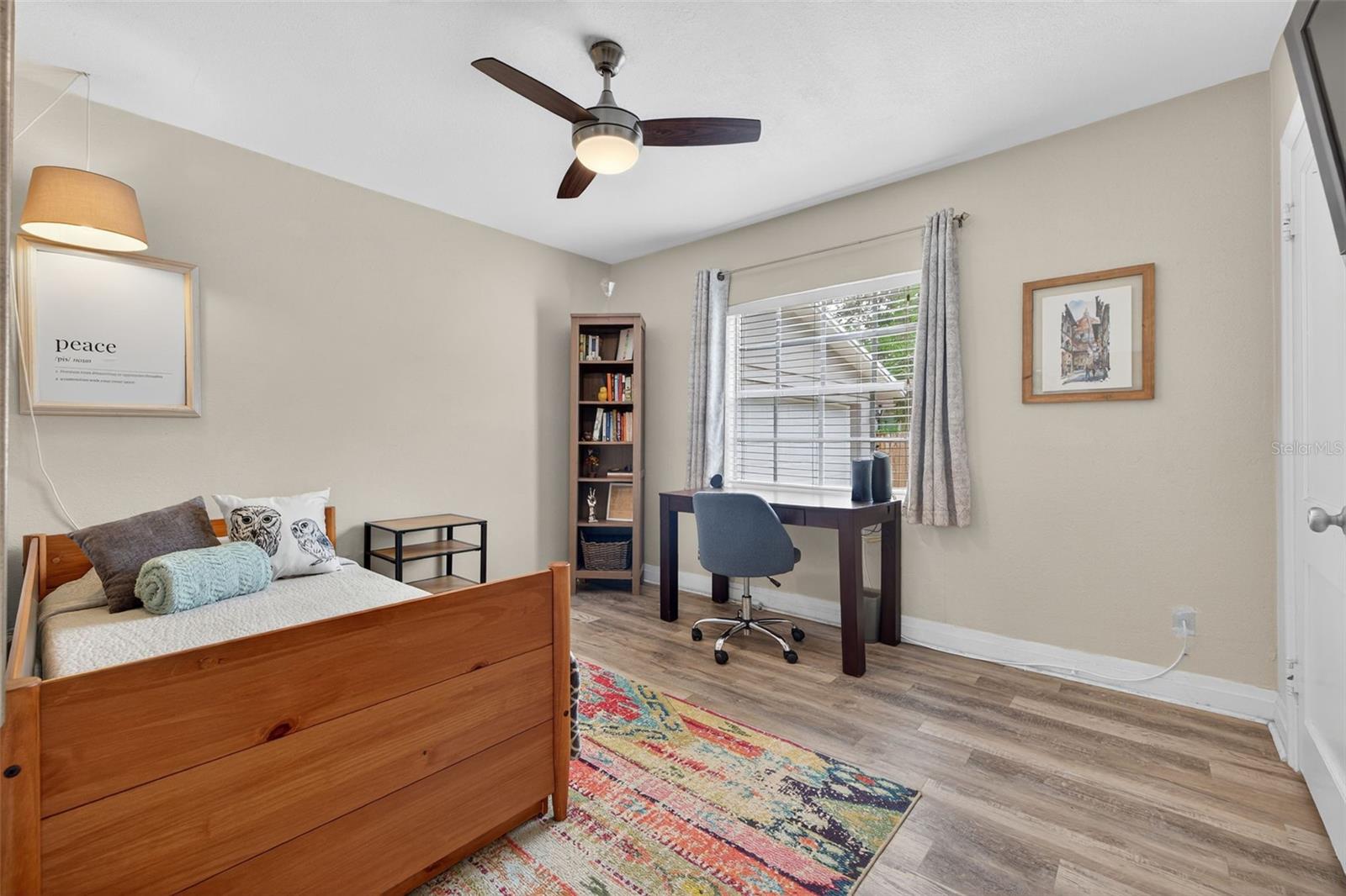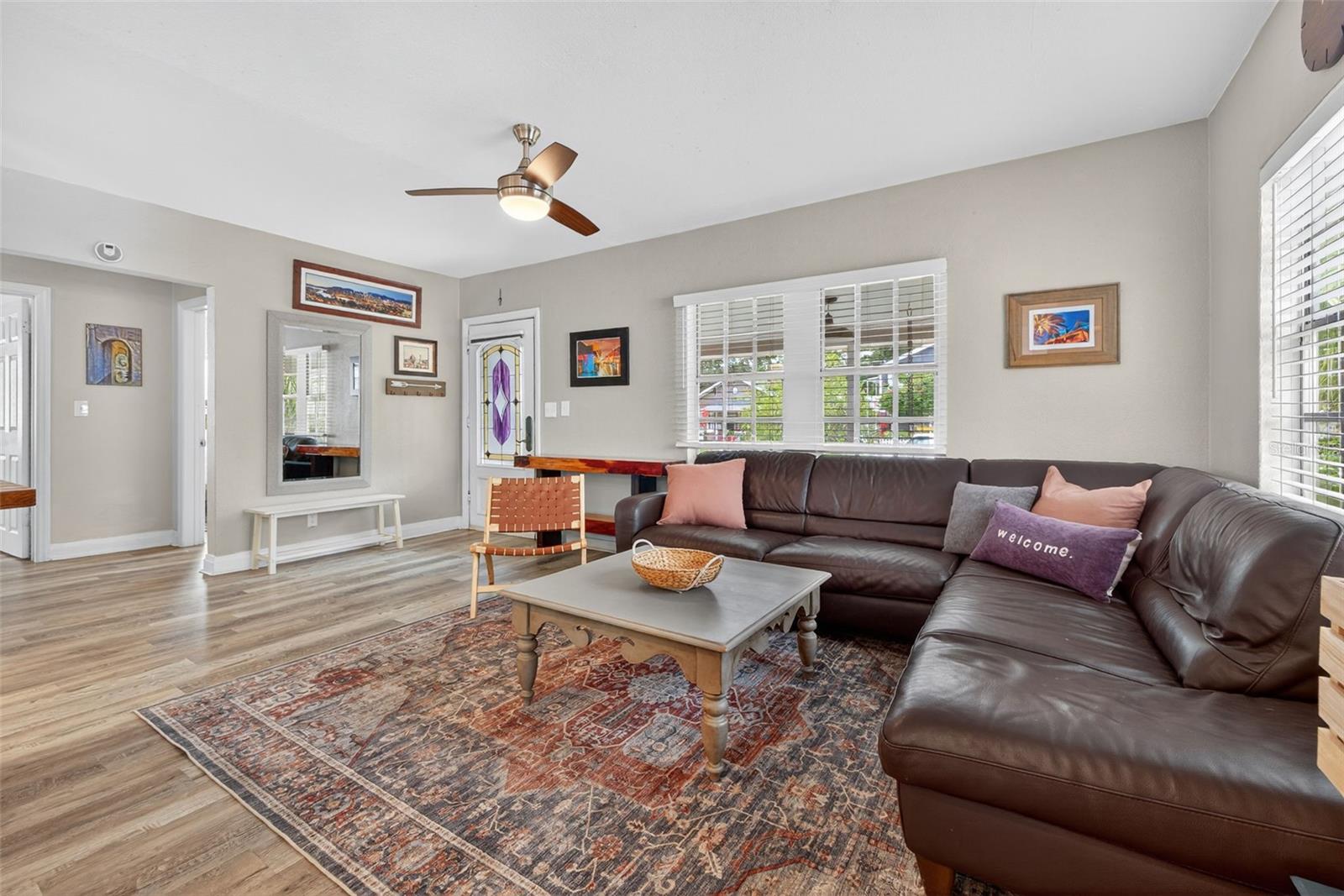 Bem-vindo a este charmoso bangalô em Seminole Heights que combina personalidade, funcionalidade e localização privilegiada. Esta casa de 2 quartos e 1 banheiro fica em um terreno enorme de 9.975 pés quadrados com um quintal totalmente cercado, perfeito para entretenimento ou expansão futura. Um achado raro no bairro, o imóvel possui um bloco de garagem para dois carros com espaço extra de armazenamento e uma lavanderia interna, conectada à casa por uma passagem aberta que leva à porta dos fundos. Aproveite suas manhãs na varanda coberta com um balanço ou relaxe no pátio coberto nos fundos com vista para o espaçoso quintal, ideal para árvores frutíferas, um jardim ou reuniões aconchegantes na fogueira. No interior, você encontrará piso de vinil por toda parte, um banheiro lindamente atualizado com uma nova penteadeira, banheira e azulejos, e uma cozinha que combina estilo e função com armários brancos, pia de aço inoxidável, ilha de açougueiro e iluminação pendente. Grandes atualizações proporcionam tranquilidade, incluindo um telhado (2018) e um AC totalmente novo (2025). Esteja você procurando a residência principal perfeita ou um investimento de sucesso no Airbnb, esta casa é a opção ideal. Localizado no coração de Seminole Heights, você está a poucos minutos dos favoritos locais, como Rooster & Till, Spaddy’s Coffee, Bamboozle, Cappy’s e uma variedade de restaurantes, cafés e cervejarias que tornam este bairro tão especial.