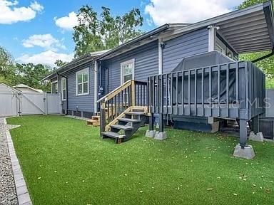 Descubra um dos bangalôs mais lindamente renovados de Seminole Heights, disponíveis mobiliados ou sem mobília! Esta impressionante casa de 2 quartos e 2 banheiros oferece 1.150 pés quadrados de estilo elegante, vivendo em um espaçoso lote de canto. Desde a garagem rochosa atraente até a varanda de grandes dimensões com um balanço encantador, o apelo do meio-fio é incomparável. No interior, desfrute de uma área de estar e jantar de conceito aberto, uma cozinha moderna de galera com bancadas em granito, utensílios de aço inoxidável e um recanto aconchegante. A espaçosa suíte primária apresenta armários personalizados de His and Hers e um banho de banheiro privativo lindamente atualizado. Recent upgrades include a 24-gauge black metal roof with solar attic breeze (2025), engineered hardwood flooring (2024), new interior paint (2023), tile in kitchen and laundry (2023), custom master closet by design (2023), and artificial turf with salt & pepper rock landscaping (2023), along with a tankless gas water heater, whole-home water softener, sprinkler system, Nova cerca com portões duplos e dois carports cobertos. Misturando charme dos anos 20 com conforto moderno, esta casa é o retiro perfeito para o Seminole Heights, o movimento pronto e cheio de atualizações atenciosas. Relaxe em sua varanda convidativa ou relaxe no oásis de quintal particular. Este é o estilo de vida que você estava esperando.