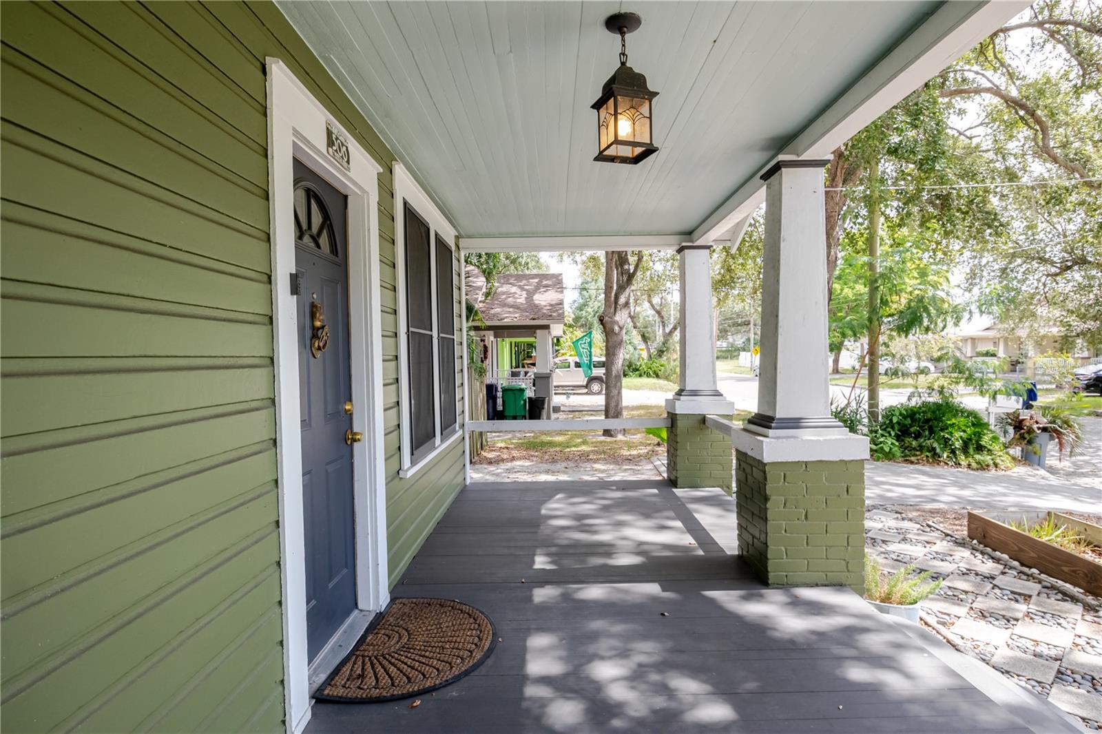 Apaixone-se por este bangalô Seminole Heights da década de 1920 lindamente restaurado! Uma ampla e acolhedora varanda convida a noites relaxantes e conversas amigáveis ao longo de uma das ruas de paralelepípedos mais pitorescas do bairro. No interior, este encantador de 2 quartos e 2 banheiros combina um caráter atemporal com atualizações atenciosas, oferecendo uma casa pronta para morar, repleta de luz natural e calor. No ano passado, a casa passou por uma extensa restauração fiel às suas raízes históricas. O revestimento de madeira original foi descoberto sob camadas de alumínio, cuidadosamente reparado, lixado e pintado recentemente em uma paleta de cores histórica autêntica. Todas as janelas foram restauradas - amarradas novamente, equipadas com novas ferragens de latão e complementadas por telas externas personalizadas e painéis transparentes para maior durabilidade. A varanda frontal foi totalmente reconstruída, com vigas reforçadas e deck macho e fêmea KDAT premium de 3 polegadas projetado para durar décadas. As caudas das vigas foram artisticamente expostas e até apresentadas em um site de casas históricas, ressaltando o trabalho artesanal e a atenção aos detalhes. Atualizações recentes aumentam o conforto e a tranquilidade, incluindo um novo telhado (2020), armários de cozinha reformados e pintados (2023) e paisagismo e cercas frescas (2024). A garagem individual de 320 pés quadrados oferece armazenamento abundante e uso flexível para hobbies ou oficina. Os amplos espaços de estar apresentam lindos pisos de madeira originais e luminárias em estilo de meados do século. Eles fluem perfeitamente para uma grande cozinha, com uma despensa extraível e portas francesas que levam à varanda dos fundos, dando uma sensação de interior/exterior. A espaçosa varanda nos fundos oferece o lugar perfeito para relaxar o ano todo, seja você desfrutando do café da manhã, da brisa noturna ou recebendo amigos enquanto aprecia a vista para o exuberante quintal. O quarto principal dispõe de banheiro privativo com chuveiro personalizado e armário adicional. Ambos os banheiros têm seu próprio toque da década de 1920 com azulejos de época. O quintal totalmente cercado oferece muito espaço para jardinar, entreter ou relaxar sob a sombra de árvores maduras e inclui várias árvores frutíferas - bananas, mamões e mangas - criando um retiro tropical privado em casa. Outras plantas comestíveis incluem tília kaffir, limoeiro, planta de hibisco e capim-limão. Localizado no coração de Seminole Heights, você estará a poucos passos dos favoritos locais - DI Coffee, The C House, Rooster & Till, Valhalla Resale, Gulf Coast Sourdough, entre outros fantásticos bares de coquetéis e cervejarias - todos com acesso rápido à I-275 para fácil deslocamento pela Baía de Tampa. Caminhe ou ande de bicicleta até os parques ribeirinhos ou até o Seminole Garden Center, ou faça uma caminhada rápida até o Farmer’s Market e outros eventos de férias realizados no Seminole Heights UMC. Venha experimentar o charme, a história e a comunidade que fazem deste um dos bairros mais procurados e cheios de personalidade de Tampa.