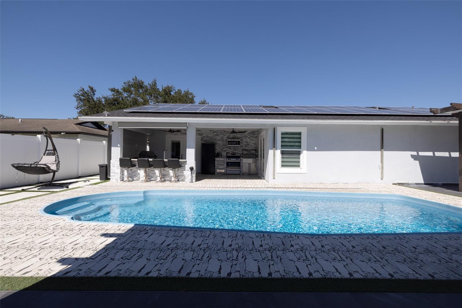 Experimente o verdadeiro luxo nesta deslumbrante casa de 3 quartos e 3 banheiros, onde cada detalhe exala sofisticação e estilo. Entre por uma bela porta moderna para uma cozinha elegante e iluminada com eletrodomésticos de aço inoxidável de última geração e azulejos impressionantes e enormes por toda parte. Janelas modernas contra o impacto do furacão, um sistema de câmera Ring e uma configuração de segurança completa proporcionam tranquilidade, enquanto uma elegante caixa de correio privada aumenta o apelo moderno da casa. A casa possui banheiros muito luxuosos e o quarto principal oferece closet. Aproveite a praticidade de uma garagem para dois carros e uma lavanderia interna com lavadoras e secadoras premium. Um telhado totalmente novo e painéis solares com eficiência energética aumentam ainda mais o conforto e o valor. Saia para o seu oásis de piscina privada, completo com uma cozinha exterior totalmente equipada e generosas áreas cobertas - perfeitas para entreter ou relaxar com estilo. Projetada com elegância, conforto e funcionalidade em mente, esta residência oferece verdadeiramente uma vida em estilo resort. Idealmente localizada perto de lojas, restaurantes, principais rodovias e escolas de alto nível, esta casa oferece a combinação perfeita de luxo e conveniência - a casa dos seus sonhos na Flórida o aguarda.