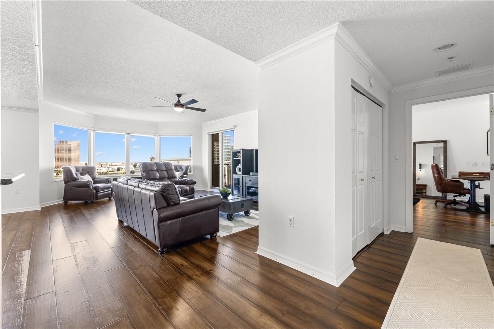 Experimente viver no auge da ilha particular mais cobiçada de Tampa. Situada no 11º andar do The Grandview em Harbour Island, esta requintada residência executiva captura vistas panorâmicas deslumbrantes do horizonte do centro da cidade, da Benchmark International Arena e das águas cintilantes do Garrison Channel. A partir do momento em que você entra, a luz natural preenche a grande sala de conceito aberto, acentuando os brilhantes pisos de madeira projetada e as amplas janelas do chão ao teto que emolduram os pores do sol mais cativantes da cidade. As persianas motorizadas oferecem conforto e privacidade sem esforço, enquanto a cozinha moderna apresenta elegantes bancadas de granito, um balcão para café da manhã e amplo espaço no balcão - perfeito para refeições divertidas e diárias. A espaçosa suíte principal oferece um retiro tranquilo, grande o suficiente para uma mesa ou área de estar íntima, e se abre diretamente para uma varanda privativa onde você pode relaxar com vistas deslumbrantes da orla e do horizonte. O banheiro inspirado em spa possui pias duplas, um box amplo generoso, uma banheira de imersão separada e um closet espaçoso, tudo projetado para relaxamento e elegância. Com apenas mais uma residência compartilhando o lobby do elevador, desfrute de uma elevada sensação de privacidade e exclusividade. Duas vagas de estacionamento premium completam esta oferta excepcional. Situado na glamorosa Harbour Island, uma das comunidades insulares privadas mais procuradas de Tampa Bay, o The Grandview oferece o equilíbrio ideal entre serenidade e sofisticação, onde os residentes desfrutam de acesso a quatro piscinas estilo resort, uma academia de ginástica totalmente equipada e a conveniência de estar a poucos passos da Benchmark International Arena, Water Street, Sparkman Wharf e dos melhores restaurantes, lojas e entretenimento de South Tampa. Descubra o que há de melhor em luxo, estilo de vida e localização – uma rara oportunidade de viver, trabalhar e se divertir em um dos locais mais prestigiados de Tampa