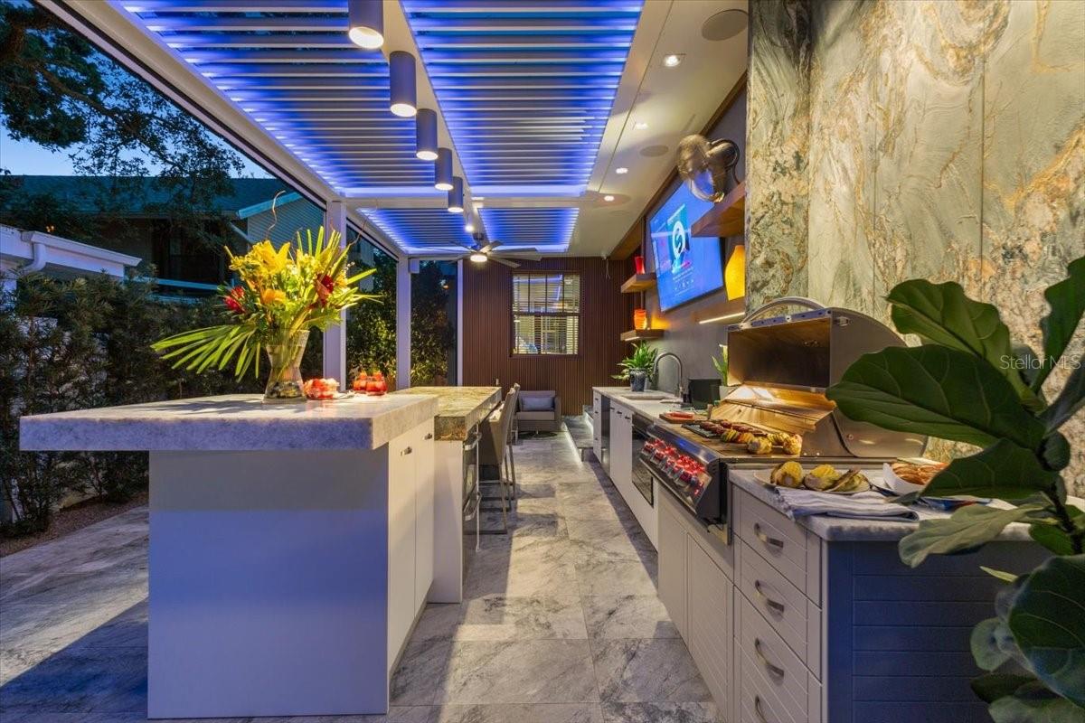 Luxo sem esforço — Design inteligente — Vida intransigente. Esta casa personalizada de um só andar foi reconstruída por um construtor e designer de interiores reconhecido. Oferece mais de 3.000 pés quadrados sob o telhado, incluindo 2.464 pés quadrados de área residencial climatizada. O vendedor está aberto a discussões criativas sobre financiamento, incluindo termos mantidos pelo vendedor ou ajudando um comprador qualificado a reduzir sua taxa de hipoteca para a faixa baixa de 5%. No interior, a casa apresenta piso de madeira de carvalho branco verdadeiro, tetos altos e banheiros com acabamento em pedra natural e mármore. Um sistema doméstico inteligente Control4 totalmente integrado gerencia iluminação, coberturas de janelas, controle de temperatura e entretenimento. O pacote audiovisual inclui quatro TVs de tela plana montadas, onze zonas de som e som surround 5.1 em três salas com três subwoofers para uma experiência de áudio rica e equilibrada. Uma entrada traseira personalizada leva a uma varanda de 408 pés quadrados com acabamento em travertino, ampliando a vida cotidiana ao ar livre. A cozinha externa inclui uma ilha e perímetro envoltos em pedra, churrasqueira de aço inoxidável de qualidade marítima, micro-ondas de convecção, lava-louças, armários com iluminação interna e iluminação pendente. Acima, um teto com venezianas motorizado se ajusta instantaneamente ao sol ou à chuva. Um spa independente fica logo abaixo de uma estrutura de telhado suavemente iluminada, oferecendo um local privado para relaxar. A garagem totalmente climatizada é uma vantagem rara. A casa está equipada com um gerador de gás natural para toda a casa, janelas e portas resistentes a impactos, uma porta de garagem resistente a furacões, telhado de metal com costura vertical e um sistema de câmera HD de oito zonas. A propriedade está localizada fora da zona de inundação. O lote de 9.060 pés quadrados é emoldurado por carvalhos maduros, cobertura estruturada, fontes de água e iluminação paisagística LED profissional. A grama artificial premium é instalada em todos os pátios frontal, lateral e traseiro, com uma área acolchoada na parte traseira adequada para animais de estimação, brincadeiras ou simples relaxamento. Localizada em um distrito escolar de alto nível e a poucos minutos do Aeroporto Internacional de Tampa, do distrito comercial de Westshore, do International Plaza e de restaurantes notáveis, esta casa oferece conveniência diária e privacidade tranquila em igual medida. Agende sua exibição privada