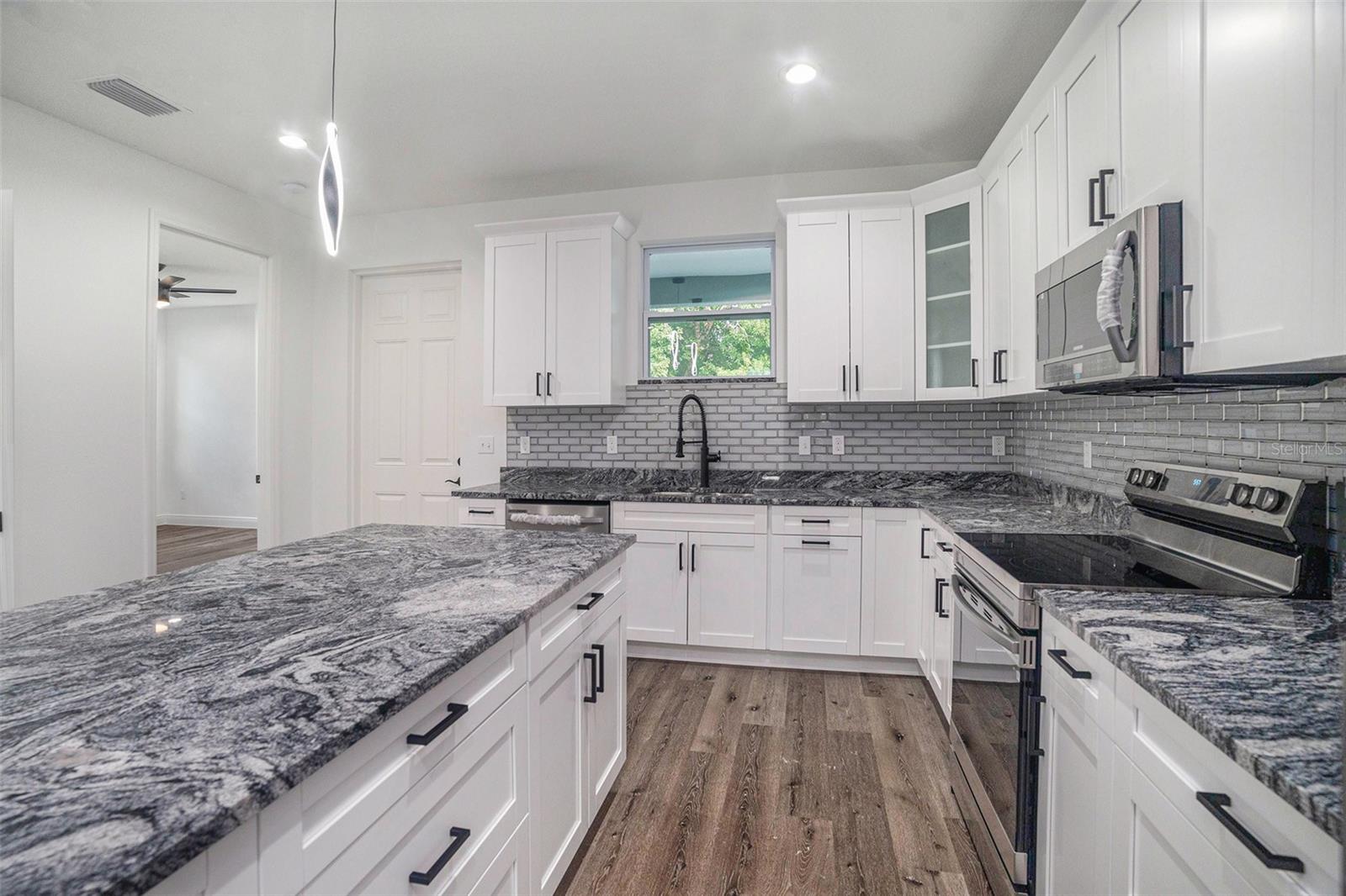 Linda nova casa de construção em uma ótima localização, sem HOA ou CDD! Esses 3 cama + 2 banheiros possuem um piso de vinil laminado de jantar e reluzente por toda parte. A bela cozinha tem vista para uma sala de família leve e brilhante e possui balcões de granito, utensílios de aço inoxidável, backsplash de telha de vidro, belos armários, despensa e grande ilha central. Retiro mestre relaxante apresenta teto de bandeja, grande closet e belo banheira de suíte final com chuveiro, vaidades duplas e balcão de granito. Quartos adicionais são grandes de tamanho, com o segundo banheiro da tendência. A varanda traseira coberta relaxante cercada por um grande quintal privado totalmente cercado. Outros recursos incluem tetos altos, rodapés de 5 1/2 polegadas e um layout de conceito aberto. Ótima localização i