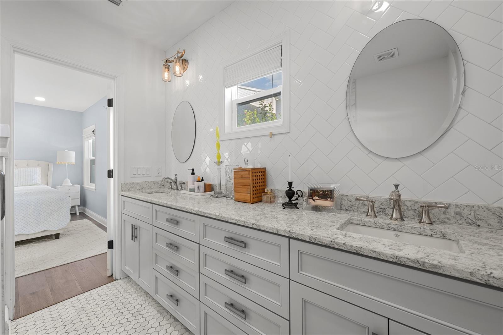 O bangalô atualizado Gray Gables, combinando características modernas com charme clássico, no altamente cotado Plant District e não em uma zona de inundação. Esta casa de quatro quartos e 3,5 banheiros oferece uma planta bem projetada, complementada por salas de estar formais separadas e salas familiares para máxima flexibilidade. Detalhes arquitetônicos elevam o interior, incluindo tetos de catedral, vigas decorativas de madeira na sala de estar, duas lareiras notáveis e marcenaria excepcional. A ampla cozinha é inspiradora, com bancada estendida de quartzo, backsplash de mármore, exaustor personalizado com azulejos decorativos, gavetas largas, fogão a gás, micro-ondas e forno de convecção Bosch embutidos e cafeteria. O armazenamento é abundante com gavetas de fechamento suave e um armário de despensa dedicado com prateleiras extensíveis. Em toda a casa, você encontrará iluminação embutida LED, impressionante piso de madeira projetada, elegante piso de cerâmica e lindas maçanetas de cristal. Cada banheiro completo possui um chuveiro de vidro sem moldura, e a suíte principal oferece uma penteadeira longa com duas pias e uma parede backsplash em espinha de peixe. A praticidade encontra o luxo com uma entrada separada no mudroom, um aquecedor de água a gás sem tanque, todas as novas janelas em 2022, um novo telhado em 2023, revestimento Hardie Plank, garagem flexível para um carro e uma garagem para um carro. Saia para um oásis privado com um deck composto que leva à piscina aquecida de água salgada e ao spa, e ao grande quintal cercado. Na pitoresca rua South Tampa, a uma curta distância de carro do centro de Tampa, Bayshore Boulevard, Aeroporto Internacional de Tampa e inúmeras opções de restaurantes, compras e entretenimento.