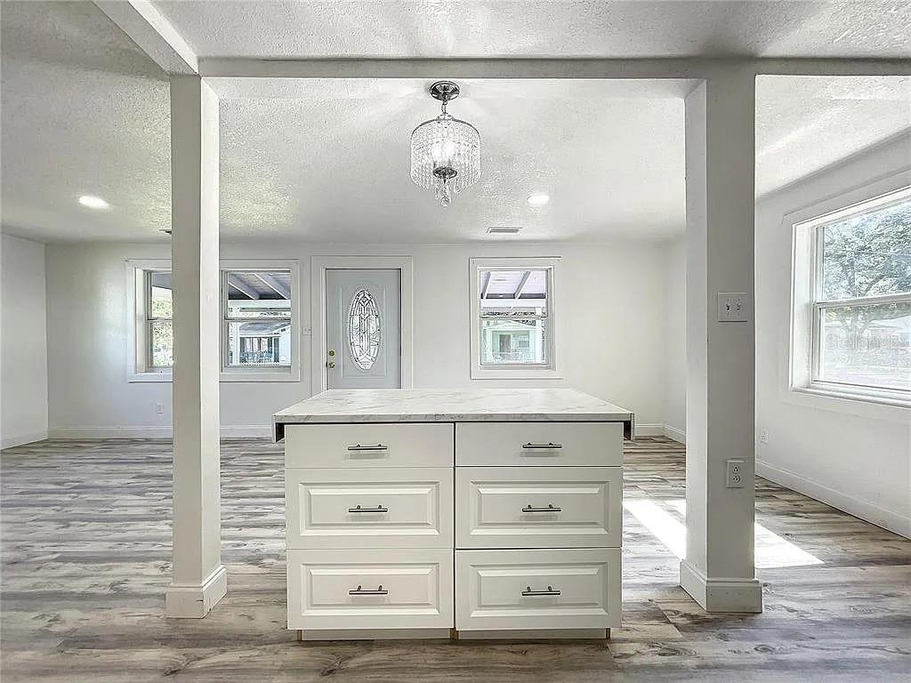 Bem-vindo a este bangalô lindamente reformado de 3 quartos e 2 banheiros, situado em um espaçoso terreno de esquina. Completamente remodelada de cima a baixo, esta casa combina acabamentos modernos com conforto sem esforço e está realmente pronta para morar. Entre para encontrar um piso de pranchas de vinil elegante e luxuoso fluindo perfeitamente por todo o espaço de conceito aberto, perfeito para entretenimento. Grandes janelas panorâmicas enchem a casa de luz natural. A cozinha dispõe de eletrodomésticos em aço inoxidável e uma ilha central com gavetas de arrumação. A planta dos quartos divididos oferece o máximo de privacidade, com uma generosa suíte principal que inclui um luxuoso banheiro totalmente remodelado com detalhes em azulejos foscos. Dois quartos adicionais compartilham um banheiro de hóspedes lindamente atualizado, e uma espaçosa lavanderia interna acrescenta conveniência para a vida cotidiana. As atualizações proporcionam tranquilidade, incluindo um NOVO TELHADO em 2025, um novo aquecedor de água em 2025, novo A/C e janelas em 2022, junto com pintura interna e externa nova, novos acessórios, iluminação, portas, acabamentos e paisagismo. A casa também está pronta para furacões, com painéis de compensado já cortados no tamanho certo e etiquetados para cada janela, e parafusos de janela instalados e prontos para fácil preparação para tempestades. O amplo lote de esquina oferece muito espaço para entretenimento ao ar livre, animais de estimação e brincadeiras!