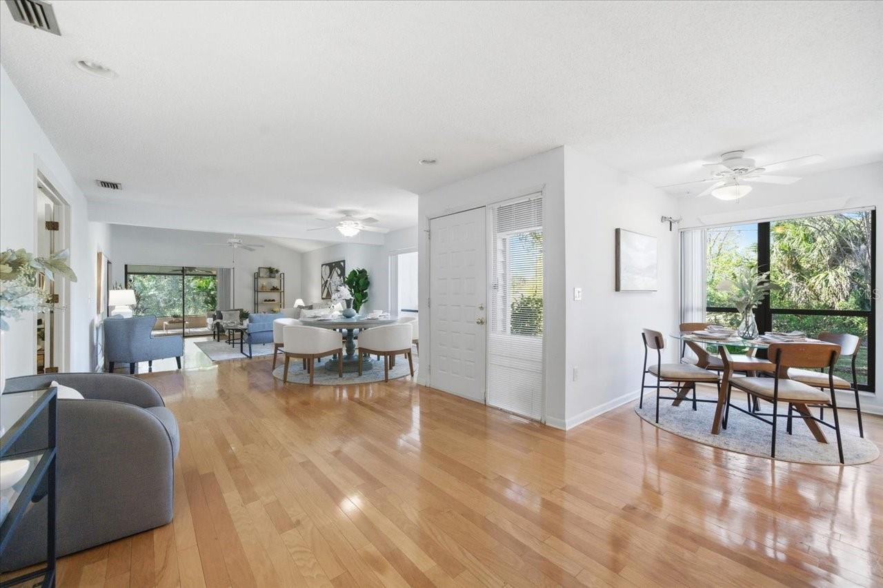 Linda unidade de canto/final em Fairway Village com 2 quartos e 2 banheiros, todos em um nível. Esta planta de conceito aberto oferece um espaço luminoso e convidativo com piso de madeira em todas as áreas principais. Desfrute de vistas incríveis do cinturão verde arborizado da casa e do pátio dos fundos, criando um ambiente sereno e privado. A varanda coberta e protegida é perfeita para relaxar e apreciar a paisagem. Os destaques adicionais incluem garagem para dois carros e um estilo de vida de baixa manutenção, com o condomínio oferecendo piscina e manutenção externa. Uma oportunidade maravilhosa para desfrutar de conforto, conveniência e ambiente pitoresco na comunidade de Carrollwood.