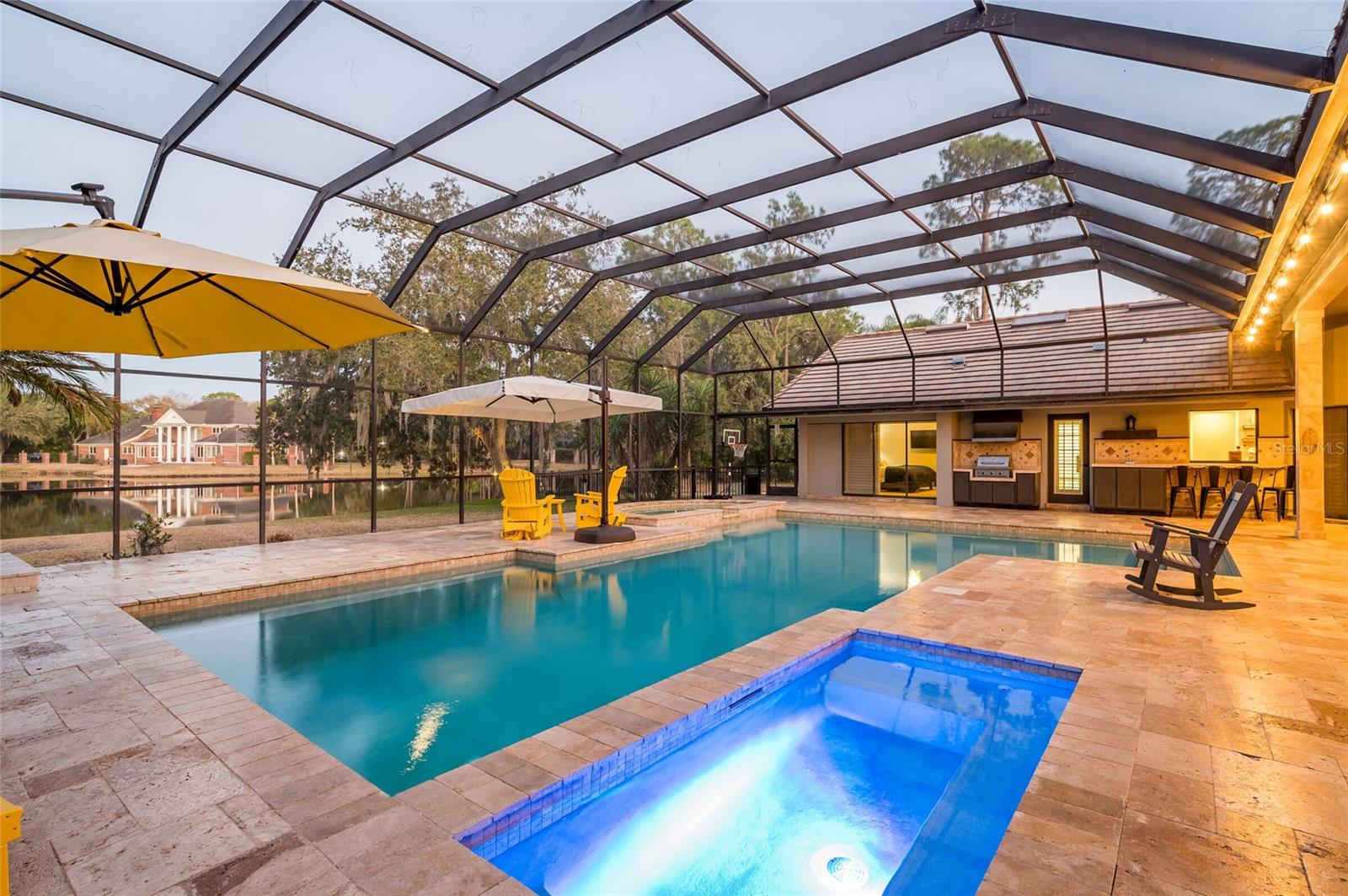 BEM-VINDO A CASA nesta residência de luxo excepcional no THE RESERVE AT TAMPA PALMS - o único enclave fechado com segurança 24 horas dentro desta comunidade de campo de golfe altamente cobiçada. A partir do momento em que você chega, a entrada circular de tijolos e a grande entrada com PORTA DUPLA causam uma primeira impressão impressionante. Entre em um layout aberto e iluminado, projetado tanto para uma vida elegante quanto para entretenimento sem esforço, com uma área de jantar formal, escritório/escritório privativo e um amplo espaço principal destacado por tetos altos, detalhes arquitetônicos e janelas do chão ao teto que enchem a casa com luz natural. Seus olhos são imediatamente atraídos para o espaço externo deslumbrante, onde portas deslizantes de grandes dimensões se abrem para revelar uma AMPLA VISTA PARA A ÁGUA e uma impressionante PISCINA ESTILO RESORT e SPA completo com recursos aquáticos, criando o melhor estilo de vida interno e externo da Flórida. A cozinha lindamente decorada se abre para uma área de estar secundária com LAREIRA A GÁS e área de jantar ou área flexível em estilo marquise, oferecendo BANCADAS DE GRANITO, armários abundantes, um REFRIGERADOR DE PAREDE personalizado embutido, eletrodomésticos atualizados e um BAR CONSTRUÍDO PERSONALIZADO convenientemente localizado ao lado da cozinha - tornando esta casa um sonho para entretenimento. A planta baixa de quartos divididos oferece o máximo de privacidade com um retiro sereno do proprietário escondido em sua própria ala, com TETOS VOLUME, janelas arquitetônicas impressionantes, dois closets e um banheiro privativo inspirado em spa com banheira de imersão, box amplo, pias duplas e um ambiente tranquilo e relaxante. No lado oposto da casa, você encontrará três quartos adicionais, incluindo um layout Jack-and-Jill, além de um banheiro de hóspedes que também funciona como banheiro de piscina, enquanto atualizações cuidadosas, como armários personalizados, armazenamento extra, acabamentos e seleções de pintura de designer elevam cada espaço. Do lado de fora, desfrute de uma ampla varanda coberta com espaço para relaxar e jantar, uma COZINHA EXTERIOR e vistas serenas de uma LAGOA TRANQUILA, perfeita para noites relaxantes e reuniões de fim de semana. Atualizações adicionais incluem uma garagem lateral para 3 carros com piso de epóxi imaculado e um sistema de armazenamento de parede e gabinete ProSlat de alta qualidade, uma porta de carregamento de veículos elétricos, amaciante de água para toda a casa e sistema de água potável por osmose reversa, propriedade totalmente cercada, iluminação paisagística externa profissional e iluminação permanente personalizada para férias com opções de cores controladas remotamente. No interior, persianas e persianas elétricas na área de estar principal acrescentam conforto e estilo, juntamente com árvores frutíferas na propriedade e gás natural para maior eficiência. Viver em Tampa Palms também significa desfrutar de um incrível estilo de vida comunitário com um clube de luxo, clube de vinhos, quadras de tênis, piscinas e uma academia de ginástica de última geração, todos convenientemente localizados perto de escolas, hospitais, lojas, restaurantes e entretenimento de primeira linha, oferecendo a rara combinação de privacidade, segurança, luxo e estilo de vida que realmente não pode ser superado.