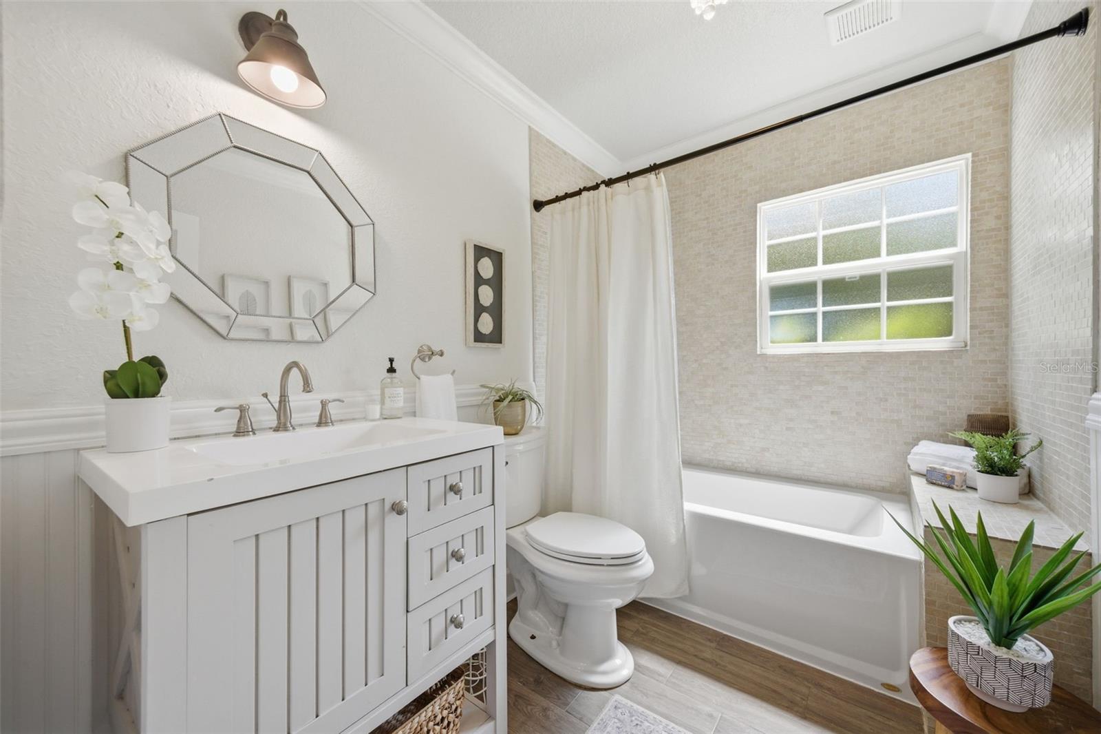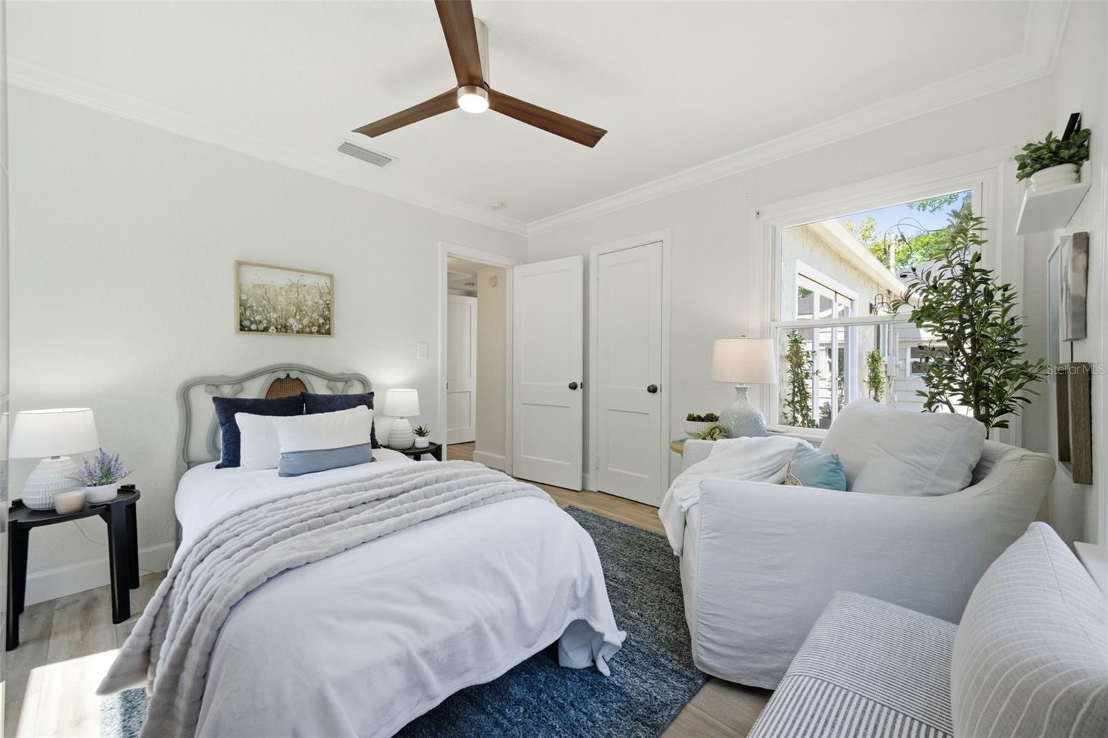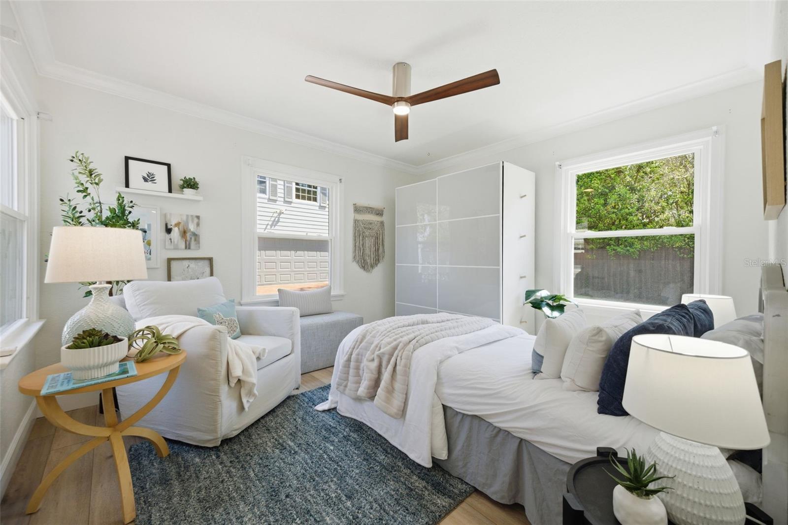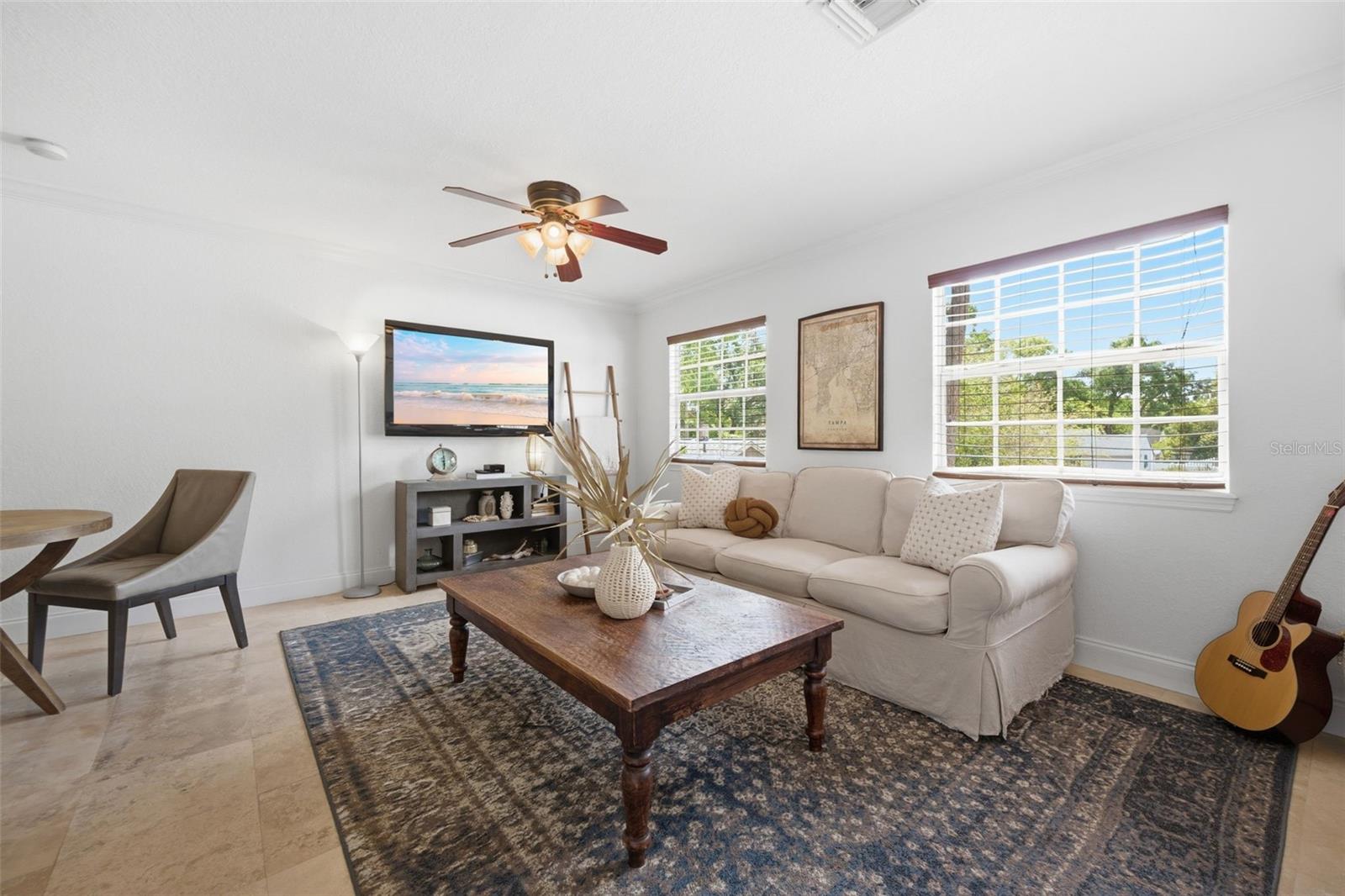 Esta casa Wellswood pronta para morar em Tampa oferece uma residência principal de 1.385 pés quadrados com três quartos e dois banheiros atualizados, além de um apartamento estúdio separado de 504 pés quadrados localizado acima de uma garagem individual para dois carros. Construída em 2008, a unidade residencial acessória inclui cozinha e banheiro privativos, tornando-a ideal para residência multigeracional ou renda de aluguel perto do rio Hillsborough. O interior da casa apresenta novo piso LVP e uma cozinha renovada com armários shaker brancos, bancadas de quartzo e eletrodomésticos GE Cafe brancos. As principais atualizações de infraestrutura proporcionam tranquilidade, incluindo um telhado 2021, sistemas HVAC 2019 e 2023, dutos 2025, um aquecedor de água 2026 e novas janelas 2022. O quintal cercado de grandes dimensões serve como um oásis privado com grama de baixa manutenção, um galpão de armazenamento de tamanho generoso e grandes portas sanfonadas retráteis instaladas em 2024 que abrem perfeitamente a casa para a área de entretenimento. Esta propriedade pré-inspecionada e preventivamente protegida contra cupins está situada em um bairro de alto crescimento perto de Seminole Heights, ZooTampa e Downtown Tampa.