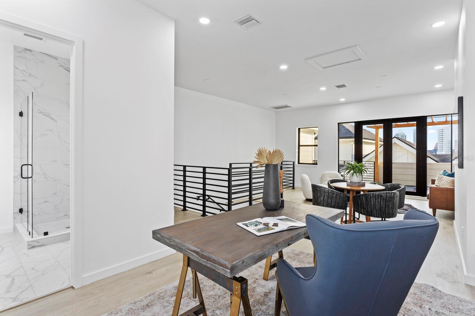 Bem-vindo à casa dos seus sonhos em Tampa Heights! Entre nesta deslumbrante casa nova que combina lindamente o charme histórico com a elegância moderna. Idealmente situado a apenas dois quarteirões da vibrante Armature Works, você desfrutará de uma infinidade de restaurantes, cafés e bares, todos a poucos minutos do centro de Tampa. Esta residência urbana durável de construção em bloco está localizada na Zona de Inundação X e permaneceu completamente inalterada pelos furacões anteriores. Entre para encontrar uma planta convidativa e aberta que aumenta o espaço da casa. O primeiro andar dispõe de uma entrada acolhedora e acesso conveniente à garagem para 2 carros. O segundo andar funciona como o coração da casa, onde a cozinha do chef se conecta perfeitamente à sala de estar. A linda cozinha gourmet possui eletrodomésticos de aço inoxidável Thermador de última geração, armários personalizados e uma ilha ampla que é perfeita para reuniões e entretenimento. Retire-se para a luxuosa suíte master no terceiro andar, completa com um luxuoso banheiro privativo. Dois quartos adicionais compartilham um banheiro bem equipado, garantindo conforto para todos. O showstopper é um espaço flexível completo no quarto andar com seu próprio banheiro privativo que oferece infinitas possibilidades! Transforme-o em um grande escritório, área de entretenimento, brinquedoteca ou o que mais se adequar ao seu estilo de vida! A partir daqui, saia pelas grandes portas do pátio para o seu deslumbrante terraço na cobertura com vista para o centro da cidade! Este espaço é perfeito para desfrutar do seu café da manhã, do pôr do sol deslumbrante e de refeições ao ar livre. Esta é a vida urbana no seu melhor.