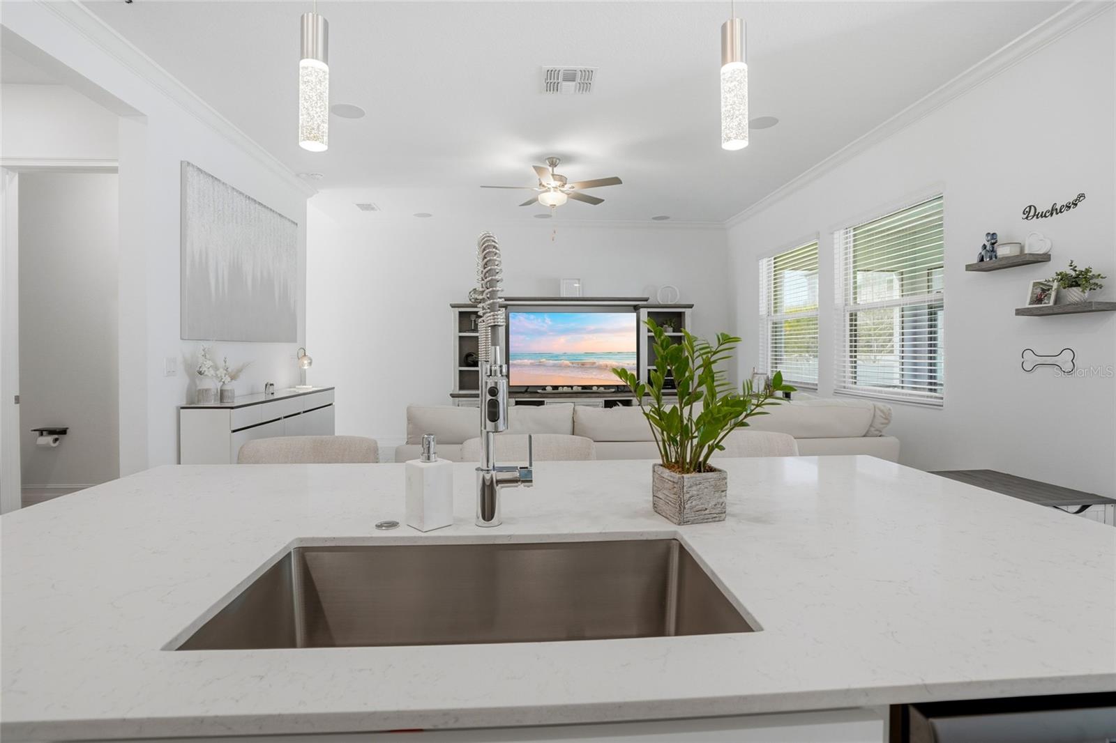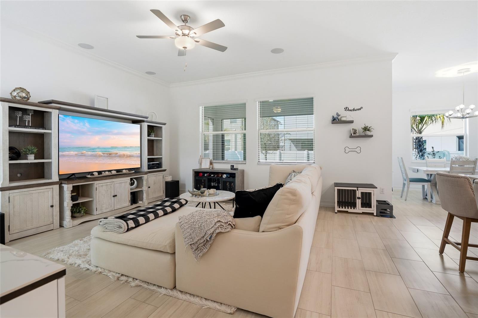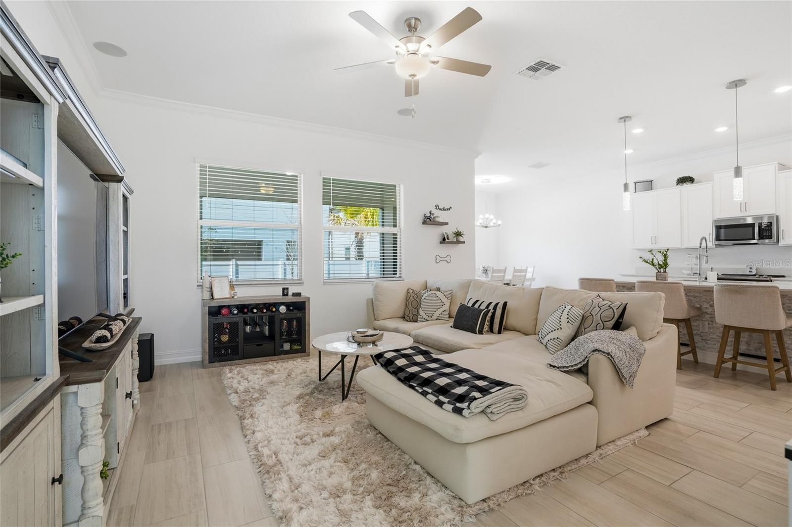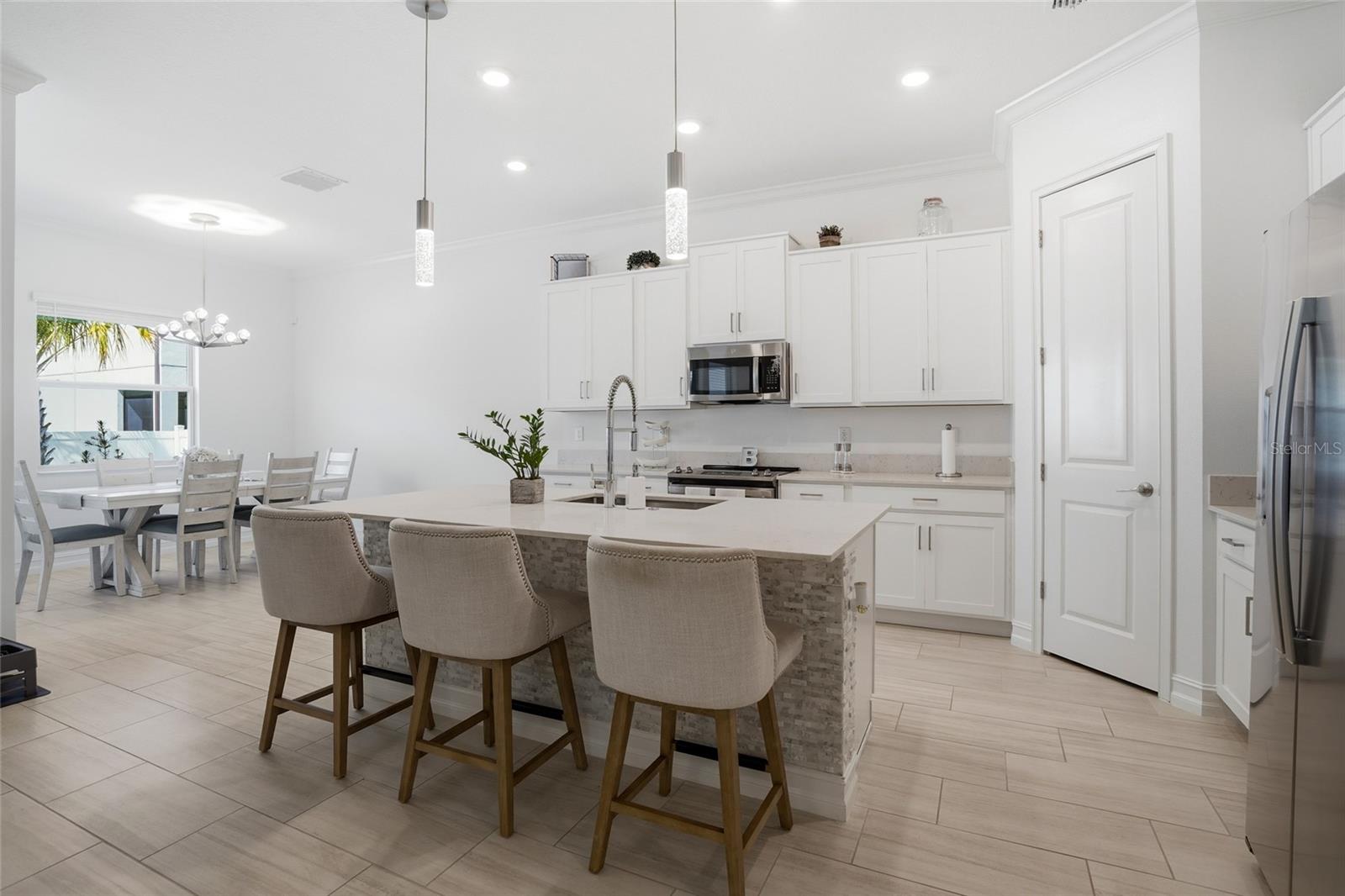 Construída em 2023, esta casa de quatro quartos e dois banheiros e meio lindamente conservada oferece estilo moderno, design atencioso e uma sensação luminosa e arejada por toda parte. Situada em uma rua tranquila e bem conservada, a propriedade possui uma garagem anexa para dois carros e um quintal totalmente cercado para maior privacidade. Ao entrar, você é recebido por um hall de entrada dramático com tetos altos de dois andares que criam uma sensação imediata de espaço e luz. A área de estar principal apresenta piso de tábuas grandes, sancas e uma paleta de cores neutras que complementa qualquer estilo. Portas de vidro deslizantes abrem para uma varanda protegida, criando uma experiência de vida interna e externa perfeita. A cozinha foi projetada tanto para a vida cotidiana quanto para o entretenimento, com bancadas de quartzo branco, uma ilha espaçosa com assentos e um distinto detalhe de mármore na base da ilha. Uma generosa área de jantar fica ao lado da cozinha, juntamente com assentos adicionais na ilha para refeições casuais. O primeiro andar e a varanda são conectados para som surround e possuem 7 alto-falantes Sonos embutidos no teto. Todos os quatro quartos estão localizados no andar de cima, junto com um loft espaçoso que oferece espaço flexível para sala de mídia, escritório ou área de lazer. A suíte principal possui um grande closet, pia dupla, chuveiro amplo, vaso sanitário privativo e armário de roupa de cama para armazenamento adicional. A conveniência continua com uma lavanderia no andar de cima, e a lavadora e a secadora se adaptam à casa. Idealmente localizada com fácil acesso à Base Aérea MacDill, à Selmon Expressway e ao Gandy Boulevard, esta casa também fica a poucos minutos de uma grande variedade de lojas, restaurantes e conveniências do dia a dia. Esta casa pronta para morar combina construção moderna, espaço funcional e uma localização privilegiada.