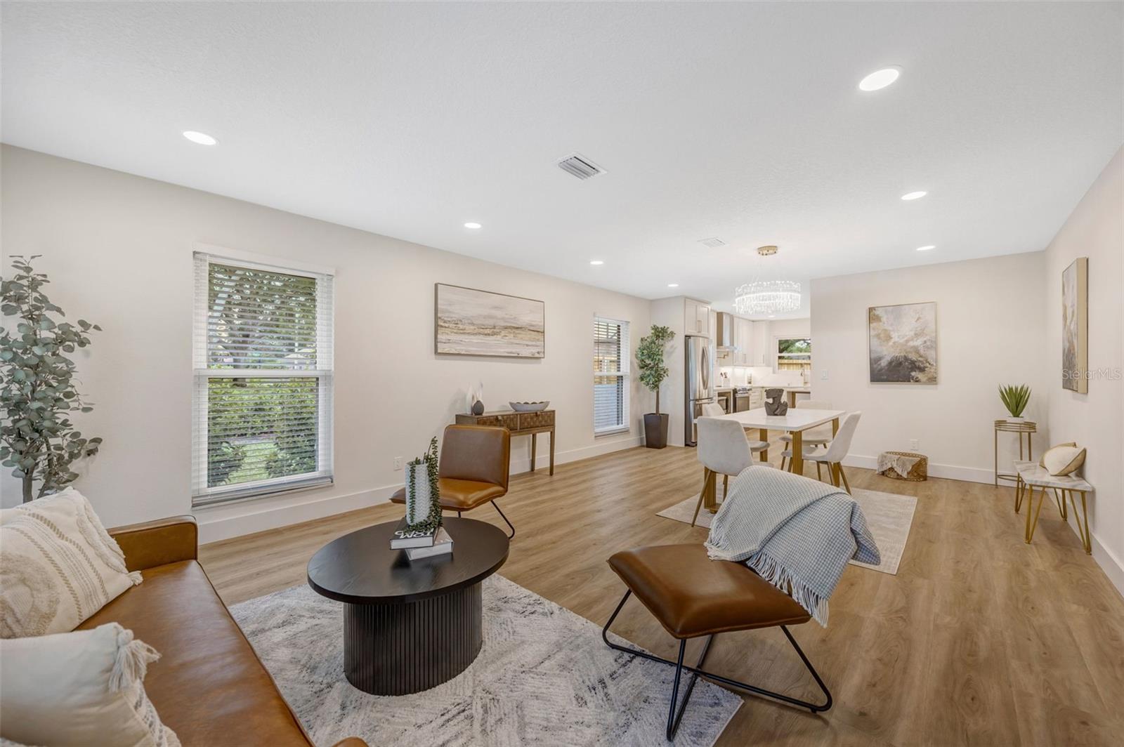 Experimente a vida elevada na Flórida nesta deslumbrante casa com piscina totalmente remodelada, localizada no exclusivo Golf Crest Village de Carrollwood Village Fase 1. Situada em um espaçoso terreno cercado de 0,33 acres na Flood Zone X, esta residência de 4 quartos e 3 banheiros oferece um espaço de estar lindamente atualizado, projetado para conforto e estilo. Entre para descobrir um interior cheio de luz com luxuoso piso de pranchas de vinil (sem carpete), novas portas internas de dois painéis e molduras de acabamento, pintura interna e externa fresca e iluminação e luminárias LED atualizadas em toda a casa. A cozinha do chef cuidadosamente redesenhada é o coração da casa, apresentando armários de madeira de 42 polegadas com sancas, bancadas de quartzo Calacatta, uma ilha na beira de uma cachoeira com assentos, pia de tigela única, eletrodomésticos de aço inoxidável, enchimento de panelas e um elegante exaustor - tudo acentuado com elegantes acabamentos em bronze champanhe. A suíte principal é um retiro privado, completo com uma parede personalizada com detalhes em madeira e portas francesas que se abrem para o deck pavimentado da piscina e o exuberante quintal. O banheiro privativo inspirado em spa possui pias duplas com bancadas de quartzo, box amplo de vidro sem moldura com azulejos modernos e closet espaçoso. Ideal para entretenimento, a casa oferece uma combinação formal de sala de estar e jantar, uma cozinha de conceito aberto com vista para a sala da família e uma grande marquise repleta de luz natural e vista para a área da piscina paisagística. A planta baixa flexível oferece excelentes opções para vida multigeracional, com espaço que pode facilmente acomodar familiares ou convidados. Áreas de estar separadas e configurações de quartos permitem privacidade e independência, ao mesmo tempo que mantêm um layout funcional e conectado. Grandes atualizações proporcionam tranquilidade, incluindo janelas de painel duplo Simonton, telhado de telha tridimensional (2025), painel elétrico atualizado, sistema HVAC (2021) e aquecedor de água. Saia para o seu oásis privado no quintal com uma piscina recapeada (fevereiro de 2026), pavimentação recém-selada (março de 2026), novo sistema de irrigação, nova cerca e exuberante gramado de Santo Agostinho. A entrada de grandes dimensões e a garagem para 2 carros acrescentam conveniência e apelo ao meio-fio. Aprimoramentos adicionais incluem nova textura de parede desmontável e casca de laranja, um sistema de amaciante de água e um contrato de prevenção de cupins. Localizados em uma das comunidades mais procuradas de Carrollwood, os moradores desfrutam de acesso a pé a parques, playgrounds, quadras de tênis e pickleball, parque para cães, pista de skate e muito mais. O vizinho Carrollwood Country Club oferece 27 buracos de golfe, além de associações sociais, de tênis ou de golfe opcionais, uma academia e uma piscina aquecida. Esta casa pronta para morar combina luxo moderno com uma localização imbatível - agende hoje mesmo sua exibição privada!
