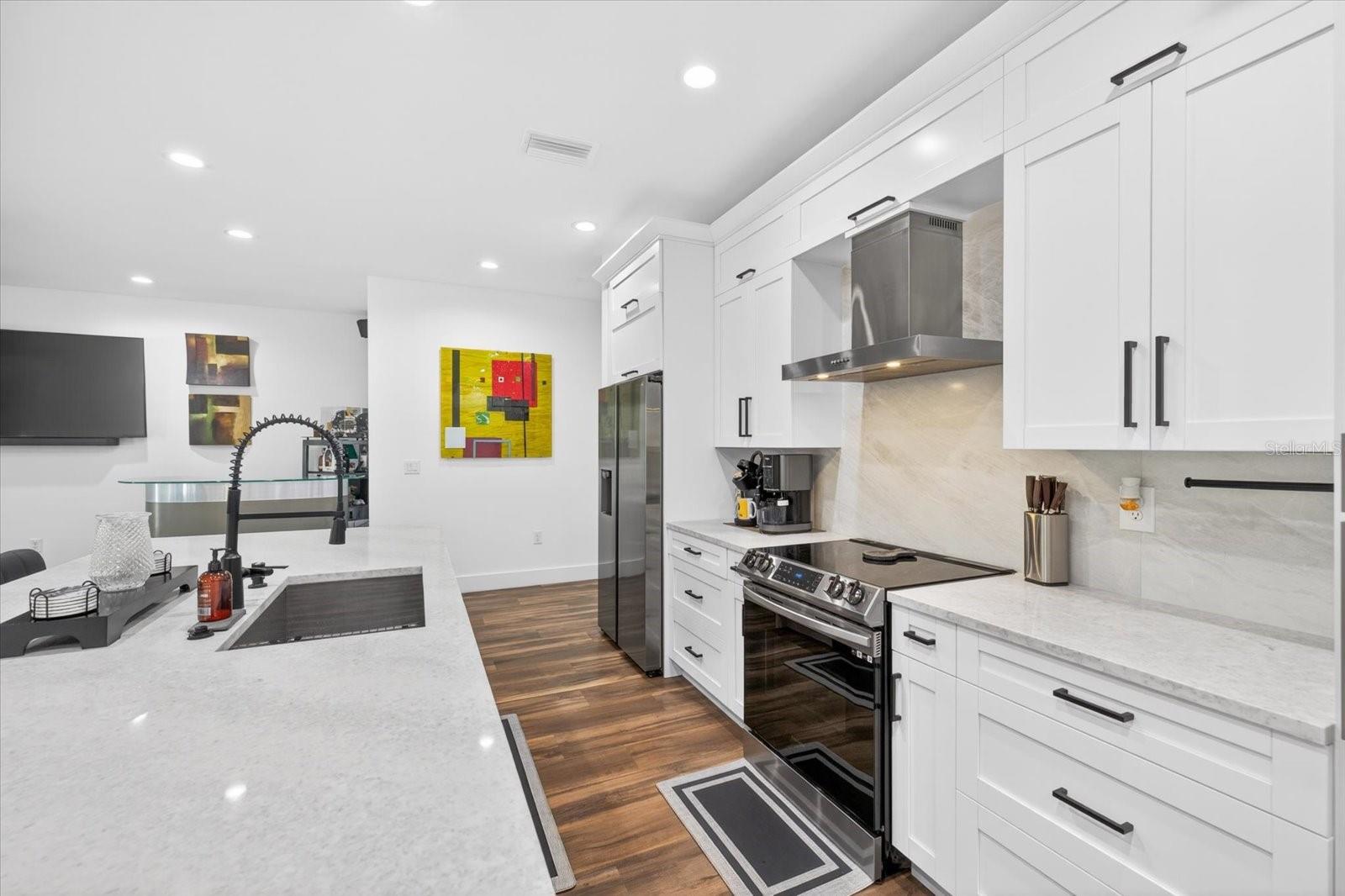 Bem-vindo a esta deslumbrante residência moderna em South Tampa, onde o design elevado encontra a vida funcional. Construída com estilo e tranquilidade, esta casa apresenta uma construção elevada e um exterior limpo e contemporâneo que se destaca imediatamente. Entre em um espaço de conceito aberto e luminoso com piso de pranchas de vinil de luxo e um fluxo fácil entre as áreas de estar, jantar e cozinha. A cozinha do chef é a peça central da casa, apresentando uma grande ilha de quartzo com assentos, armários elegantes, eletrodomésticos de aço inoxidável e amplo armazenamento, perfeito para entretenimento ou para a vida cotidiana. A área de estar principal se abre para uma espaçosa varanda coberta, criando uma vida interna e externa perfeita e um espaço ideal para relaxar ou receber hóspedes durante todo o ano. No andar de cima, a suíte principal cria um retiro privado com proporções generosas, closet e banheiro inspirado em spa completo com banheira de imersão independente, box de vidro e pia dupla. Os quartos adicionais são bem dimensionados e cuidadosamente posicionados, proporcionando flexibilidade para hóspedes, familiares ou escritórios domésticos. O quintal totalmente cercado oferece privacidade e espaço para desfrutar do ar livre, enquanto o design elevado e a construção mais recente agregam confiança e valor a longo prazo. A garagem de grandes dimensões oferece excelente funcionalidade com tetos altos e racks de armazenamento suspensos, proporcionando muito espaço para organização e acomodando confortavelmente o estacionamento. Convenientemente localizada perto de restaurantes, lojas e tudo o que South Tampa tem para desfrutar, esta casa combina design moderno, layout inteligente e localização imbatível.