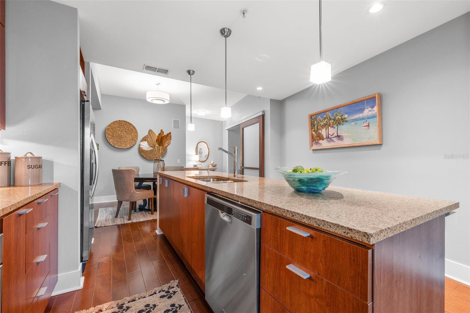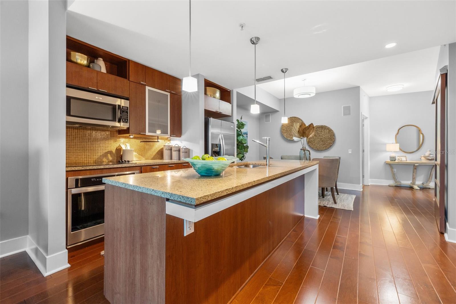 Bem-vindo ao 912 Channelside Dr Unit 2311, com localização central no vibrante bairro de Channelside, em Tampa! Este condomínio oferece um excelente exemplo de vida urbana, rodeado de inúmeras opções de entretenimento, estabelecimentos comerciais e deliciosos restaurantes. Esta unidade final meticulosamente trabalhada possui 2 quartos e 2 banheiros completos, exalando elegância moderna com sua espaçosa cozinha e área de estar em conceito aberto. A cozinha possui elegantes bancadas de granito, convidando aventuras culinárias e encontros com amigos e familiares. Retire-se para o oásis do quarto principal, onde uma grande banheira de imersão, pia dupla, box amplo e closet aguardam, proporcionando o santuário perfeito para relaxar. O segundo quarto oferece versatilidade, ideal para ser usado como um aconchegante quarto de hóspedes ou um produtivo home office, com um conveniente banheiro de hóspedes adjacente. Inclusa nesta unidade uma vaga de garagem coberta, garantindo comodidade e segurança. As taxas HOA cobrem serviços essenciais, como TV a cabo/Internet, manutenção do terreno, comodidades comunitárias, segurança e acesso a um concierge privado. Situados na comunidade The Place at Channelside, os moradores desfrutam de comodidades incomparáveis, transformando todos os dias em um retiro semelhante a um resort. Relaxe à beira da piscina cintilante, relaxe na sede do clube, rejuvenesça na sauna aquecida ou prepare um banquete de churrasco nas churrasqueiras. Mantenha-se ativo no centro de fitness completo, desafie os amigos para um jogo na sala de jogos comunitária ou desfrute do belo pôr do sol no terraço da cobertura. Convenientemente localizado a poucos quarteirões da Water Street, os moradores podem explorar a atmosfera vibrante de Sparkman Wharf, Amalie Arena, The Florida Aquarium e saborear a melhor comida que Tampa tem a oferecer. Não perca esta oportunidade excepcional de experimentar o que há de melhor na vida urbana no coração de Channelside. Agende sua exibição hoje e adote um estilo de vida de luxo, conveniência e emoção!