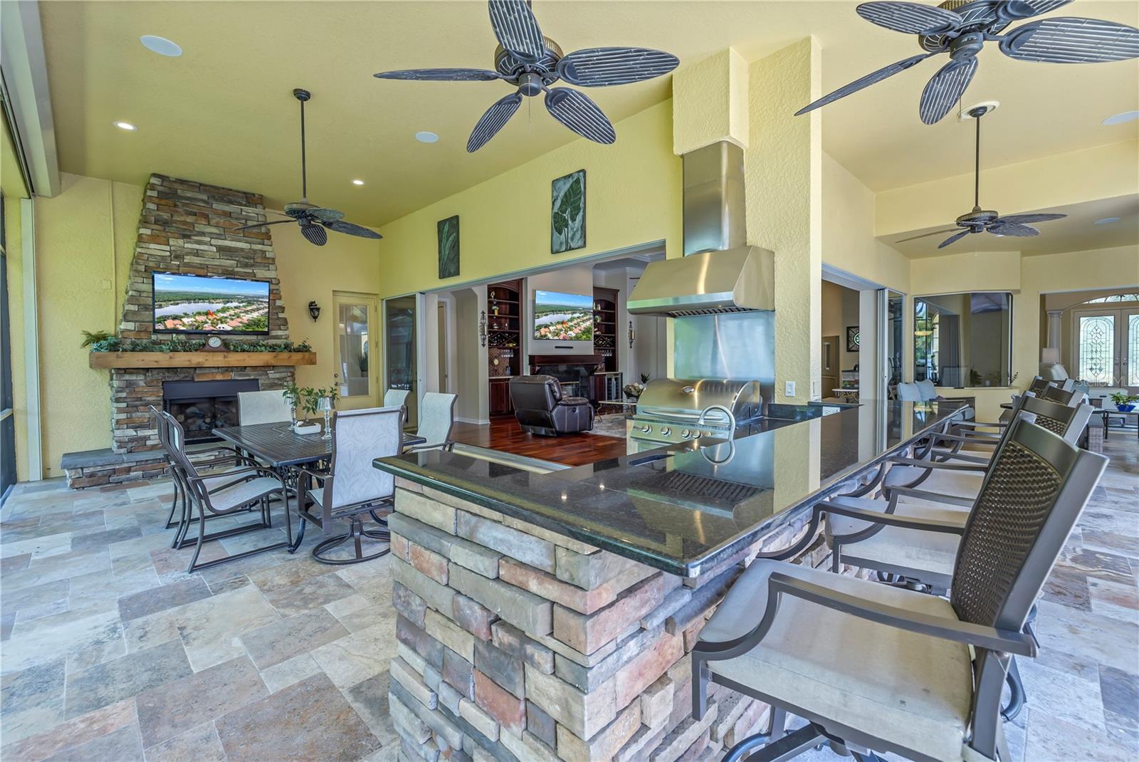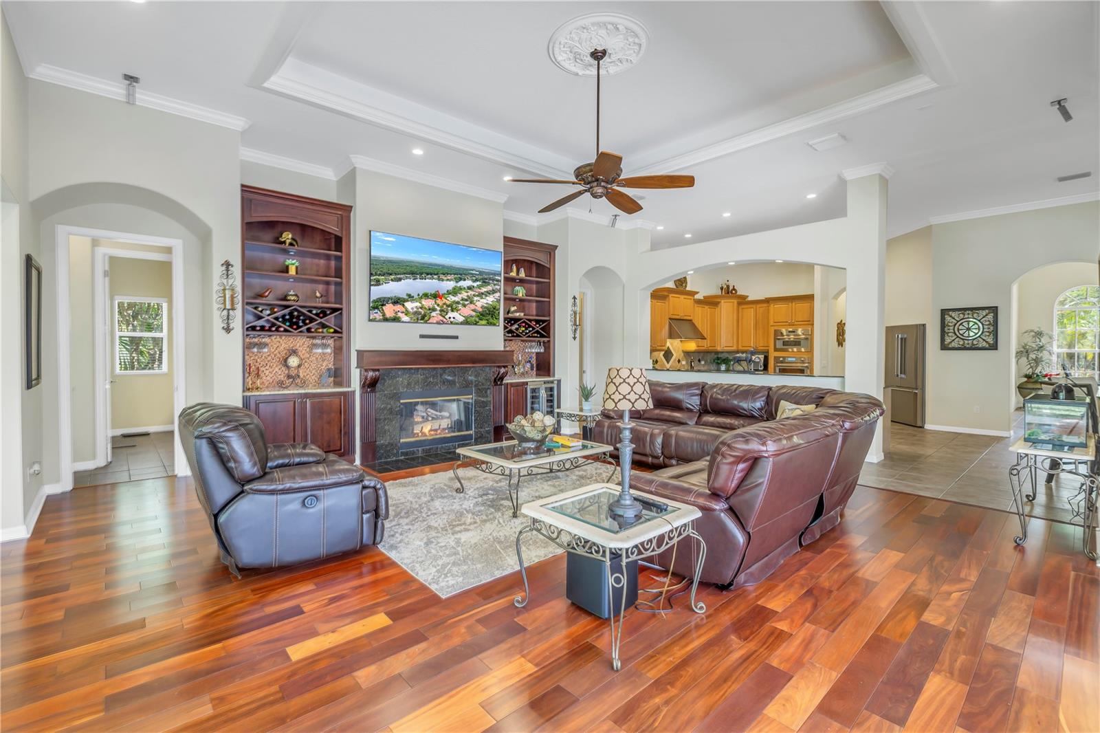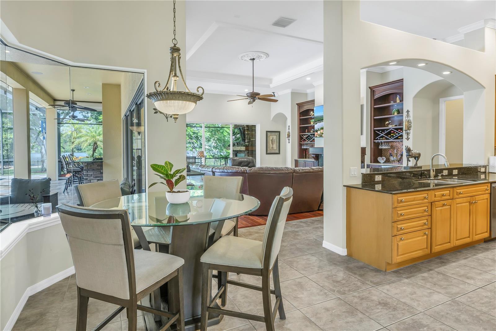ENORME redução de preço de US$ 100 mil!!! Bem-vindo à sua casa de sonho! Esta casa EXQUISITA, da premiada construtora Hannah-Bartoletta, possui uma propriedade em estilo mediterrâneo com 4 quartos e 3,5 banheiros, completa com escritório, sala de jantar formal e sala de estar formal, além de garagem para 3 carros. Ele está situado em um terreno à beira-mar com belo paisagismo no bairro Exclusive Tree Tops of West Chase. Oferecendo privacidade incomparável e vistas deslumbrantes para o lago, esta casa construída sob medida é uma obra-prima de design e artesanato, com mais de US$ 170 mil em atualizações de um sistema de som doméstico Bose personalizado, telas de furacão Kevlar que abrangem todos os 1100 ambientes externos cobertos e blindados. varanda, 3 lareiras a gás (2 internas, 1 externa), eletrodomésticos Thermador, gerador doméstico movido a gás e muito mais. Muitos outros itens internos são negociáveis, incluindo, entre outros: caiaques, barco elétrico (legal para uso em lago alimentado por nascentes de 25 acres), todas as TVs e muito mais. Centralmente localizado a poucos minutos do Aeroporto Internacional de Tampa, das praias do Golfo e do centro da cidade. O apelo excepcional do meio-fio é incomparável: acesso circular para estacionamento de hóspedes, novas portas de garagem e um quintal cercado melhoram o exterior elegante da casa. O luxuoso interior apresenta uma planta aberta e cheia de luz, com tetos altos e portas deslizantes que fundem perfeitamente os espaços internos e externos. Cozinha Gourmet: Bancadas em granito, backsplash de azulejos personalizados, armários de 42" com sancas, cooktop a gás em aço inox, ilha de cozinha e despensa. Suíte Master espaçosa: Inclui área de estar, piso de madeira, teto falso e closets. O banheiro principal possui pias duplas, box amplo e banheira de jardim. Oásis de entretenimento: A ampla varanda envolvente possui uma piscina e spa aquecidos de água salgada, azulejos de travertino, uma cozinha externa completa e várias lareiras para diversão durante todo o ano. Esta joia à beira do lago é mais do que apenas uma casa – é um estilo de vida. Não perca a oportunidade de personalizar esta deslumbrante propriedade e desfrutar das vistas junto à lareira na sua praia privada. BEM VINDO A CASA!!!