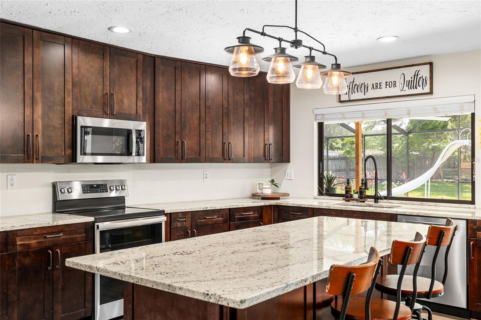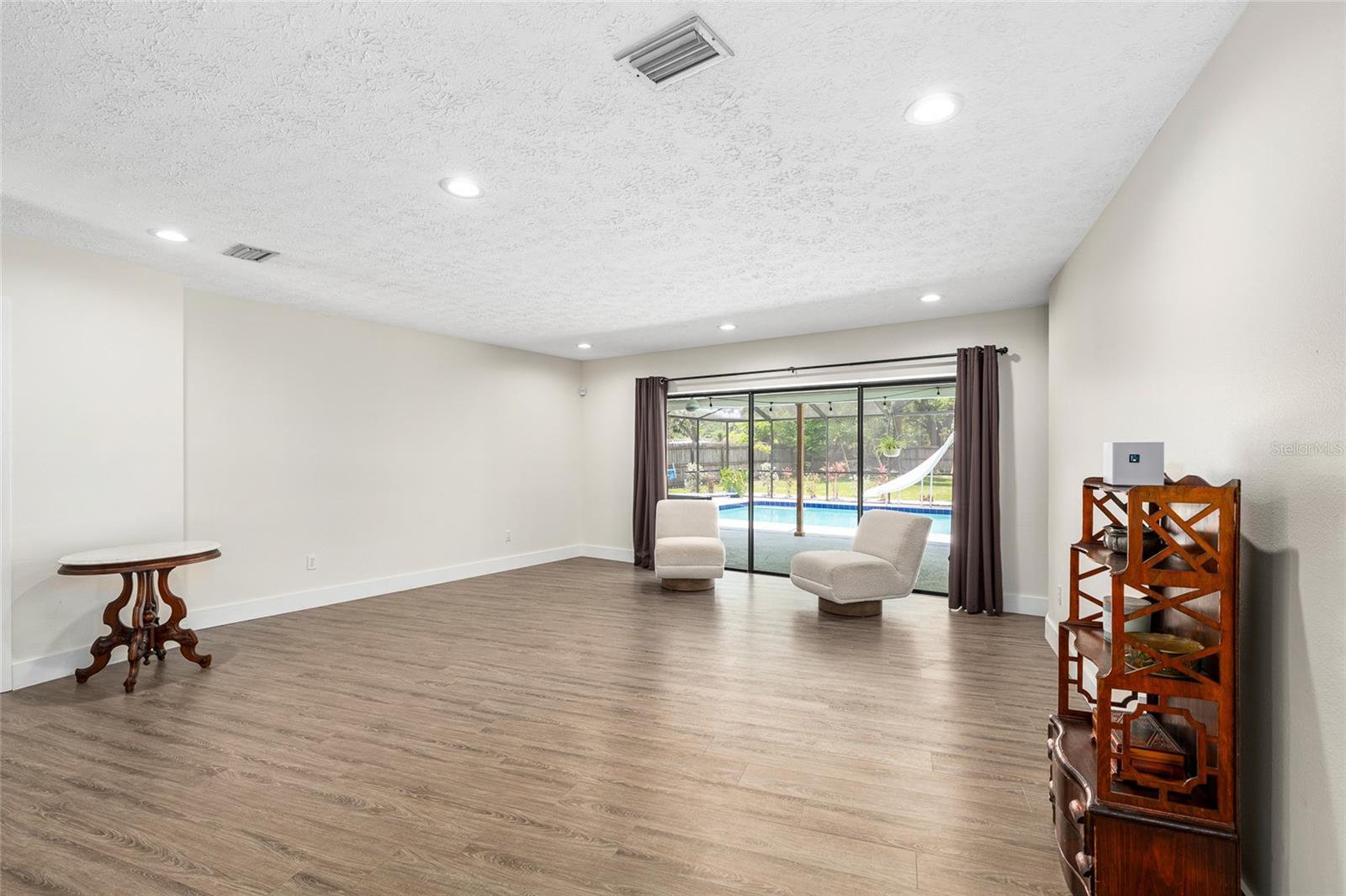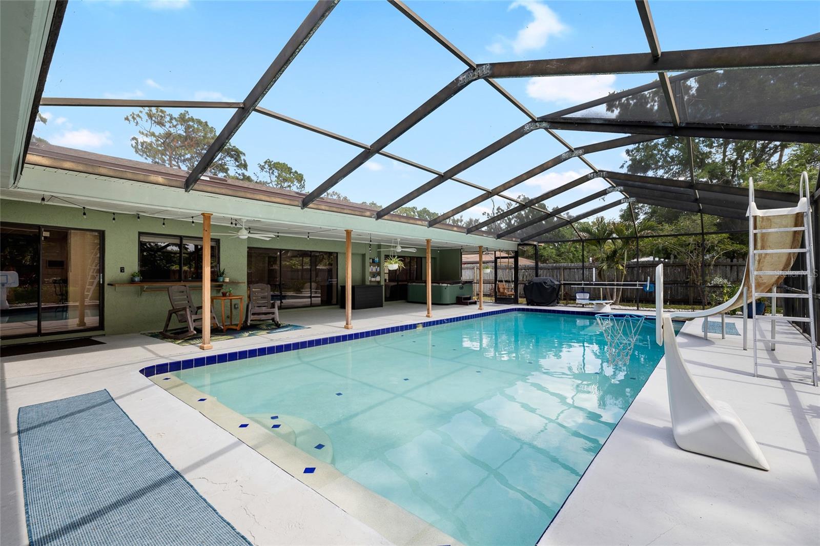 Localizado em um lote de meio acre em um bairro tranquilo, esta casa é a que você está procurando! Meticulosamente mantido por dentro e por fora, possui um novo telhado em 2024, bem como uma piscina com um pátio coberto de 17x52. Você vai adorar a cozinha conceitual aberta com bancadas em granito e um forno duplo, perfeito para entretenimento. Com assentos de bar e sala de jantar, há muito espaço para sediar. A janela deslizante acima da pia permite que você sirva comida ou bebida diretamente para a área da piscina! A lareira de pedra com manto de madeira rústica oferece um ótimo ponto focal para a reunião na sala de estar, mas você também apreciará o espaço secundário. O piso LVT em toda a casa se destaca a crianças e animais de estimação, enquanto oferece uma aparência elegante e consistente. Passe algum tempo relaxando na suíte primária recentemente remodelada, com uma luxuosa banheira de imersão, chuveiro e vaidades duplas. Há um quarto secundário e um banheiro com sua própria entrada privada que pode funcionar facilmente como uma suíte de sogros, expandindo as possibilidades de como você usa esta casa. Além da piscina, desfrute do paisagismo de baixa manutenção, belas árvores de sombra e quintal cercado. A Home está localizada em um bairro amigável para a Carrollwood Elementary, uma escola muito desejável na área. Há muito estacionamento na garagem para um trailer, barco ou outros brinquedos ao ar livre, checando todas as caixas para sua próxima casa!