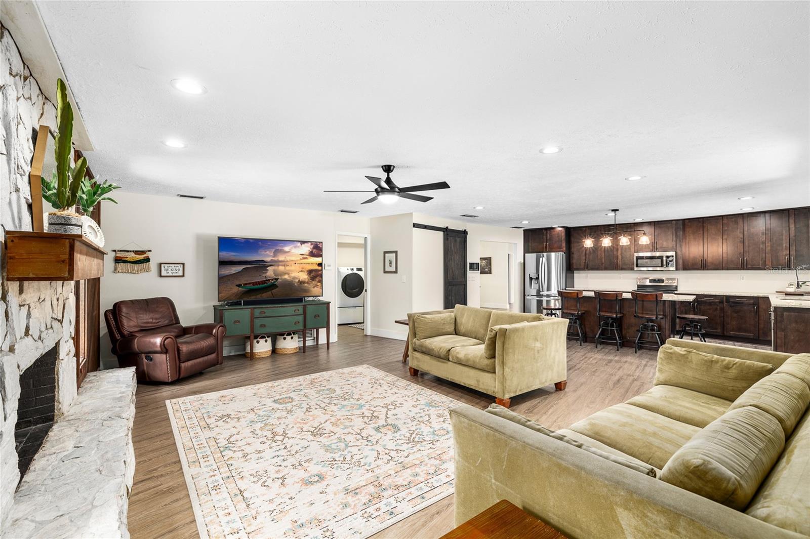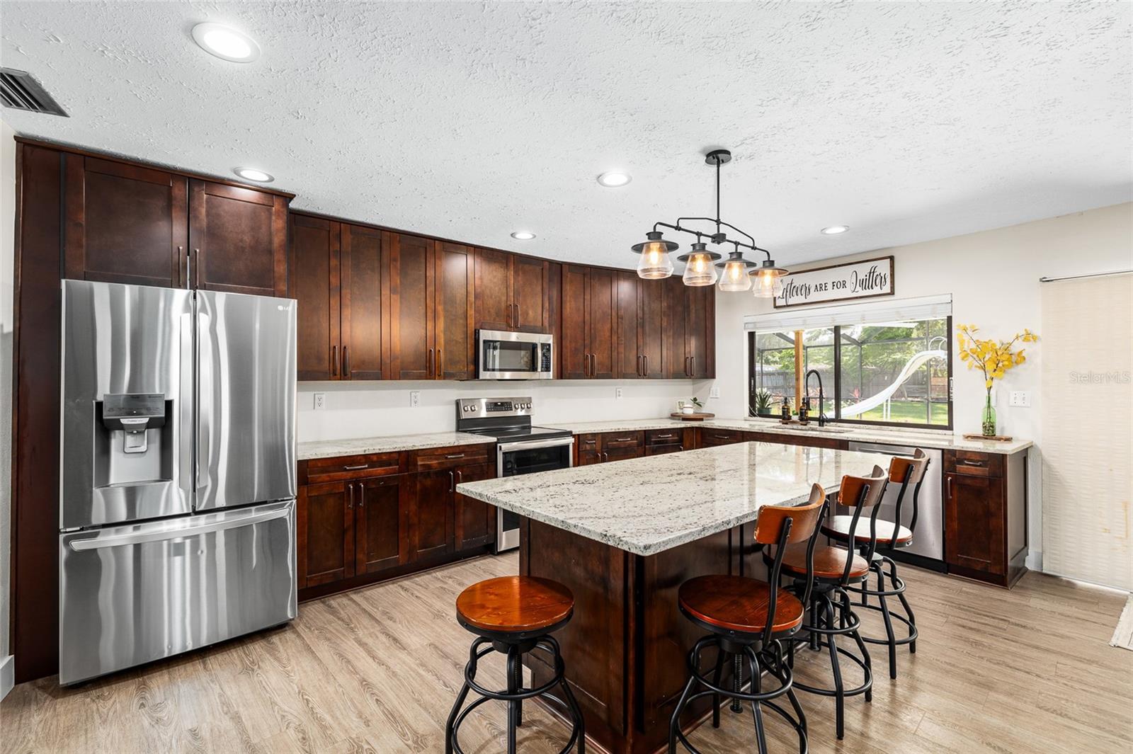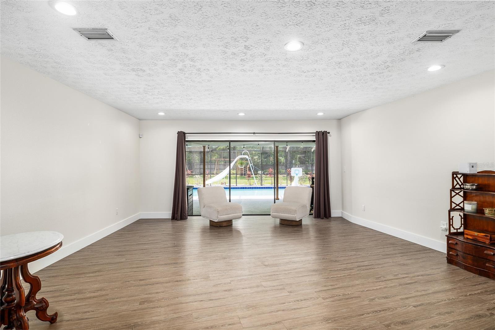 Localizado em um lote de meio acre em um bairro tranquilo, esta casa é a que você está procurando! Meticulosamente mantido por dentro e por fora, possui um novo telhado em 2024, bem como uma piscina com um pátio coberto de 17x52. Você vai adorar a cozinha conceitual aberta com bancadas em granito e um forno duplo, perfeito para entretenimento. Com assentos de bar e sala de jantar, há muito espaço para sediar. A janela deslizante acima da pia permite que você sirva comida ou bebida diretamente para a área da piscina! A lareira de pedra com manto de madeira rústica oferece um ótimo ponto focal para a reunião na sala de estar, mas você também apreciará o espaço secundário. O piso LVT em toda a casa se destaca a crianças e animais de estimação, enquanto oferece uma aparência elegante e consistente. Passe algum tempo relaxando na suíte primária recentemente remodelada, com uma luxuosa banheira de imersão, chuveiro e vaidades duplas. Há um quarto secundário e um banheiro com sua própria entrada privada que pode funcionar facilmente como uma suíte de sogros, expandindo as possibilidades de como você usa esta casa. Além da piscina, desfrute do paisagismo de baixa manutenção, belas árvores de sombra e quintal cercado. A Home está localizada em um bairro amigável para a Carrollwood Elementary, uma escola muito desejável na área. Há muito estacionamento na garagem para um trailer, barco ou outros brinquedos ao ar livre, checando todas as caixas para sua próxima casa!