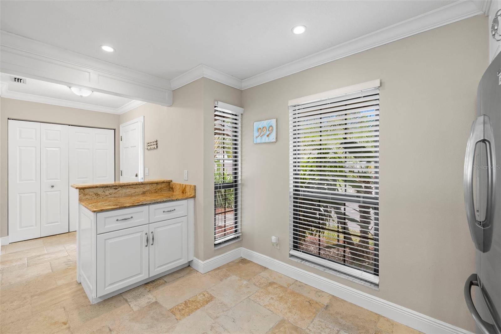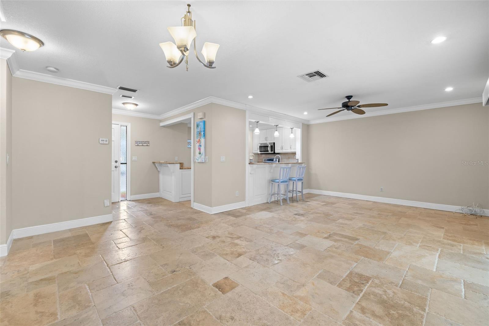Aprecie a beleza serena dos terrenos e da comunidade à beira do Golfo nesta encantadora vila de 2 quartos e 2 banheiros em Tarpon Springs. A propriedade recebe você com piso de travertino nas áreas de estar principais e uma cozinha aberta e bem iluminada com balcão para café da manhã, iluminação embutida e uma abertura que se conecta à área de estar principal e à sala Florida. A cozinha possui bancadas de granito de cristal dourado, armários com fechamento suave e eletrodomésticos Maytag e LG de qualidade. Os quartos são lindamente acabados com sancas. O quarto principal tem acesso privado ao enorme quarto Florida e uma espaçosa suíte com chuveiro alto e banco embutido. O quarto de hóspedes é igualmente convidativo, com muita luz natural e closet. O banheiro de hóspedes inclui banheira completa e iluminação embutida, com armário de lavanderia convenientemente próximo. A sala Florida serve como um espaço versátil e iluminado pelo sol, com janelas Hurricane com vista para um pequeno quintal privado e galpão de armazenamento com áreas gramadas e árvores. A poucos passos do calçadão, você pode desfrutar da vista do Golfo diariamente, e a comunidade oferece comodidades como piscina aquecida e spa, perfeito para relaxar durante o dia ou à noite. Localizada a apenas 1,6 km das praias locais e perto das históricas Docas de Esponja de Tarpon Springs, esta villa combina a beleza natural com a proximidade da cultura e atrações locais. ****USE O CHROME PARA ACESSAR O TOUR 3D****