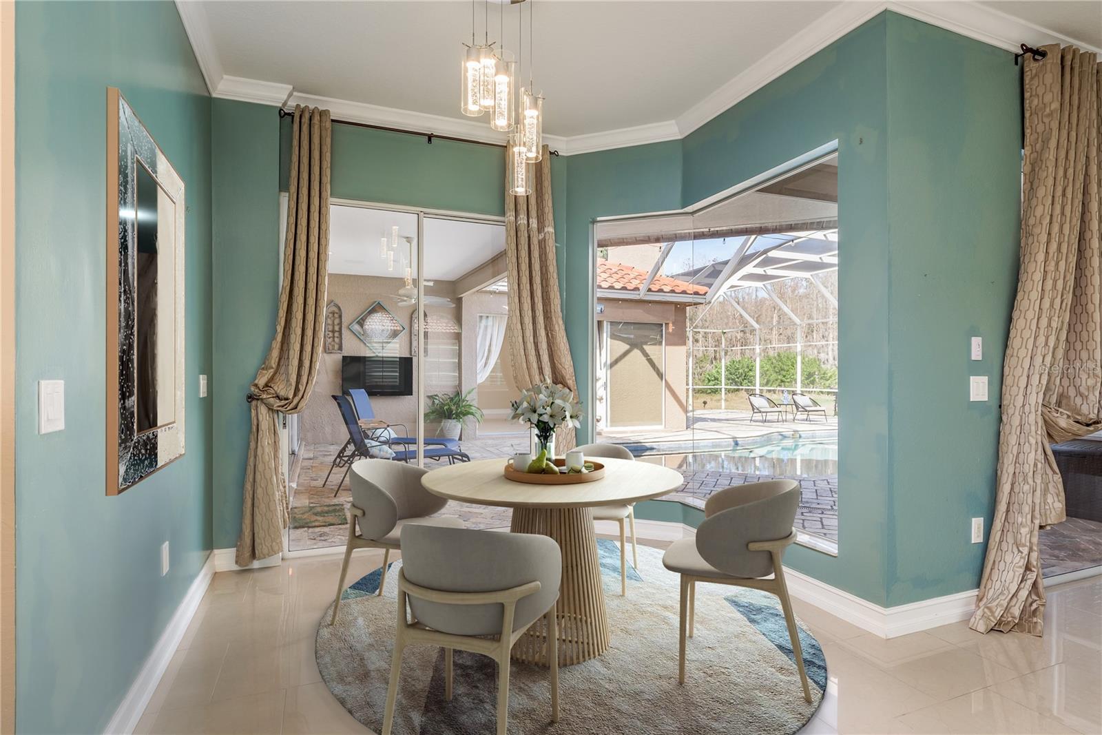 Bem-vindo a uma mistura requintada de luxo e tranquilidade neste espaçoso retiro paradisíaco de cinco quartos, quatro banheiros e 4.006 pés quadrados em Crescent Oaks. Desfrute de vistas deslumbrantes da piscina e do campo de golfe nesta casa notável localizada na prestigiosa comunidade de golfe e tênis Crescent Oaks de Tarpon Springs. Fique absolutamente impressionado ao entrar na impressionante porta dupla e desfrute das vistas deslumbrantes de todas as comodidades de vida mais requintadas. No interior, a grande área de estar em conceito aberto apresenta tetos altos e muita luz natural, perfeita para reuniões sofisticadas. A cozinha do chef gourmet possui bancadas de quartzo com detalhes em granito, balcão para café da manhã, armários de madeira e eletrodomésticos Samsung de aço inoxidável. A combinação cozinha-sala é ideal para a vida moderna, com uma cozinha que oferece espaço adicional para refeições. Pisos de cerâmica luxuosos em todas as áreas principais acrescentam elegância a esta casa de sonho. A suíte principal palaciana inclui banheiro privativo com closet espaçoso e chuveiros duplos com efeito de chuva. Quatro quartos adicionais de tamanho generoso oferecem conforto e privacidade, complementados por dois banheiros tipo spa com bancadas de quartzo. As características internas adicionais incluem azulejos por toda parte, tetos altos, portas de vidro deslizantes para a área da piscina, sancas nos quartos da frente, uma planta dividida em três vias, uma suíte bônus para sogros, uma sala de artesanato/escritório, uma grande lavanderia sala , e uma lareira a lenha. O exterior da casa é igualmente impressionante, com piscina e spa com azulejos de travertino, uma varanda com banheira de hidromassagem, combinação de piscina e telhado de telha. O grande pátio da piscina é perfeito para relaxar e se divertir. A casa foi recentemente pintada em 2024 e oferece vistas deslumbrantes do campo de golfe ao lado do 7º Tee e do lago. Situada em 0,25 acres de terreno meticulosamente paisagístico, a propriedade exibe um gramado impecavelmente cuidado com imponentes árvores maduras, criando um apelo elegante ao meio-fio, incluindo uma entrada circular. A espaçosa garagem para 3 carros oferece armazenamento adicional, combinando perfeitamente conveniência e estilo. O amplo quintal serve como um retiro sereno com um pátio coberto perfeito para refeições ao ar livre e entretenimento. Localizada em um condomínio fechado, a casa oferece acesso a um clube comunitário, quadras de tênis de saibro e um campo de golfe. Esta opulenta residência está pronta para morar, oferecendo o equilíbrio perfeito entre luxo moderno e charme clássico. Não perca a chance de chamar esta residência de tirar o fôlego de seu lar para sempre e desfrutar de uma vida de luxo e conforto incomparáveis!