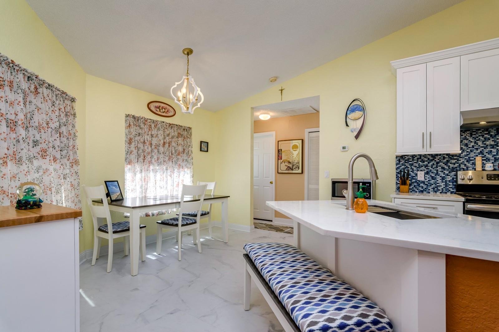Localização, localização, localização !!! Apenas 600 etapas para a entrada de Fred Howard Park! Bem-vindo a esta encantadora casa de família de 2 quartos e dois banheiros na altamente desejável área de Casas de Gateway Gateway de Tarpon Springs! Esta jóia apresenta uma planta baixa, proporcionando privacidade e espaço. Você vai adorar a cozinha atualizada com armários elegantes de 42 polegadas, deslizamentos de despensa embutidos e bancadas impressionantes de quartzo, fazendo cozinhar e entreter uma brisa. Além de seu belo interior, esta casa foi cuidadosamente atualizada com um novo telhado e A/C, ambos instalados em 2023, e tinta externa mais recente, oferecendo paz de espírito nos próximos anos. Saia e aproveite o sereno Lanai, onde você encontrará uma piscina cintilante e um quintal aconchegante, cercado por sua privacidade - perfeita para o relaxamento ao ar livre. O canto do café da manhã/área de jantar oferece uma vista pitoresca da piscina, trazendo a beleza do ar livre. A localização é a chave, e esta casa oferece! A apenas um quarteirão e meio da entrada de Fred Howard Park and Beach, você terá acesso a quilômetros de trilhas cênicas, caiaques, natação e uma das praias mais impressionantes do Golfo da América. Sunset Beach, um local favorito para o pôr do sol de tirar o fôlego, também fica a poucos minutos. Se você é um entusiasta ao ar livre, adorará estar tão perto da trilha Pinellas para andar de bicicleta e caminhar. O charme histórico de Downtown Tarpon Springs fica a apenas alguns minutos, junto com as famosas docas de esponja, onde você pode desfrutar de uma deliciosa culinária grega e lojas únicas. A Tarpon Springs é conhecida por sua rica cultura e festivais gregos, suas pitorescas cursos de água e uma abundância de parques, tornando-o uma das principais pequenas cidades históricas dos EUA. Esta casa também está convenientemente localizada perto de excelentes escolas, do pré-escolar ao ensino médio e do St. Petersburg College. High & Dry! Não em uma zona de inundação! Além disso, não há como se preocupar, sem taxas e restrições de escrituras - é o lugar perfeito para chamar de lar! Não perca esta rara oportunidade de desfrutar de um verdadeiro estilo de vida da Flórida em uma das melhores áreas de Tarpon Springs!