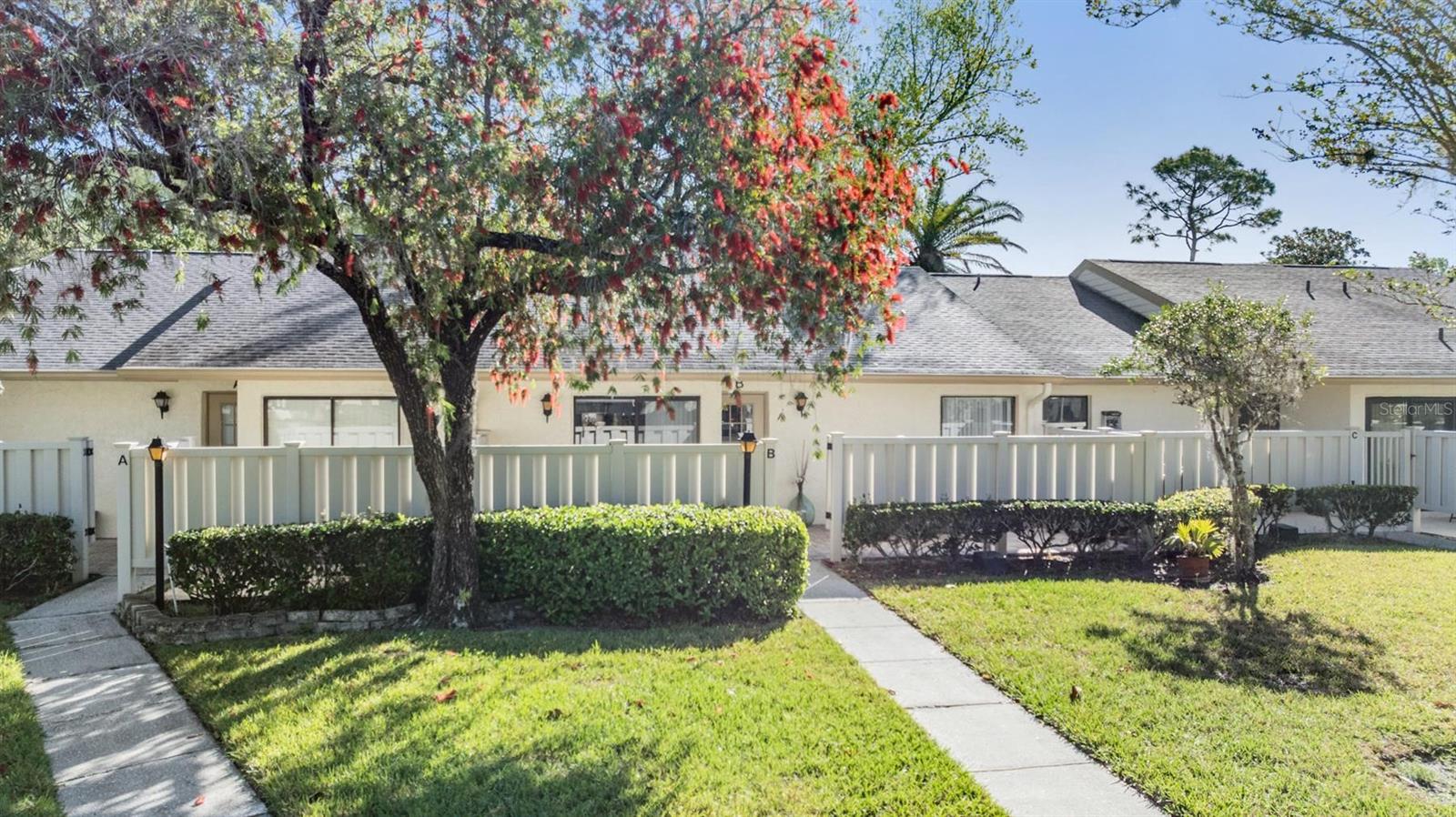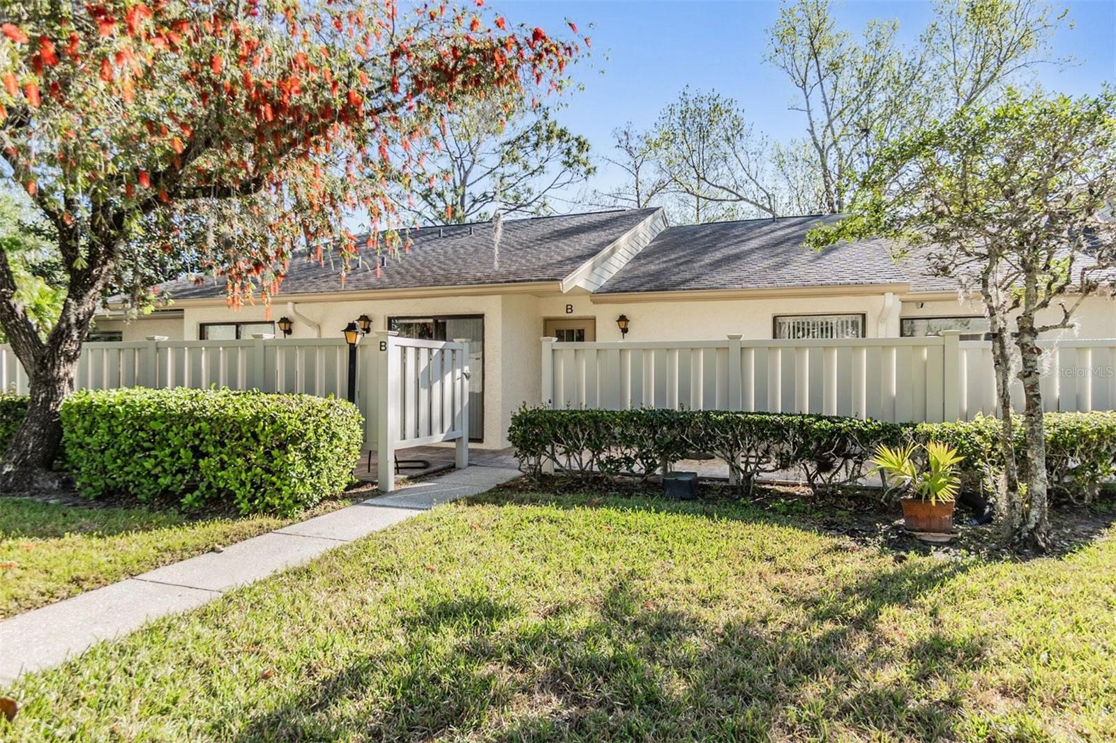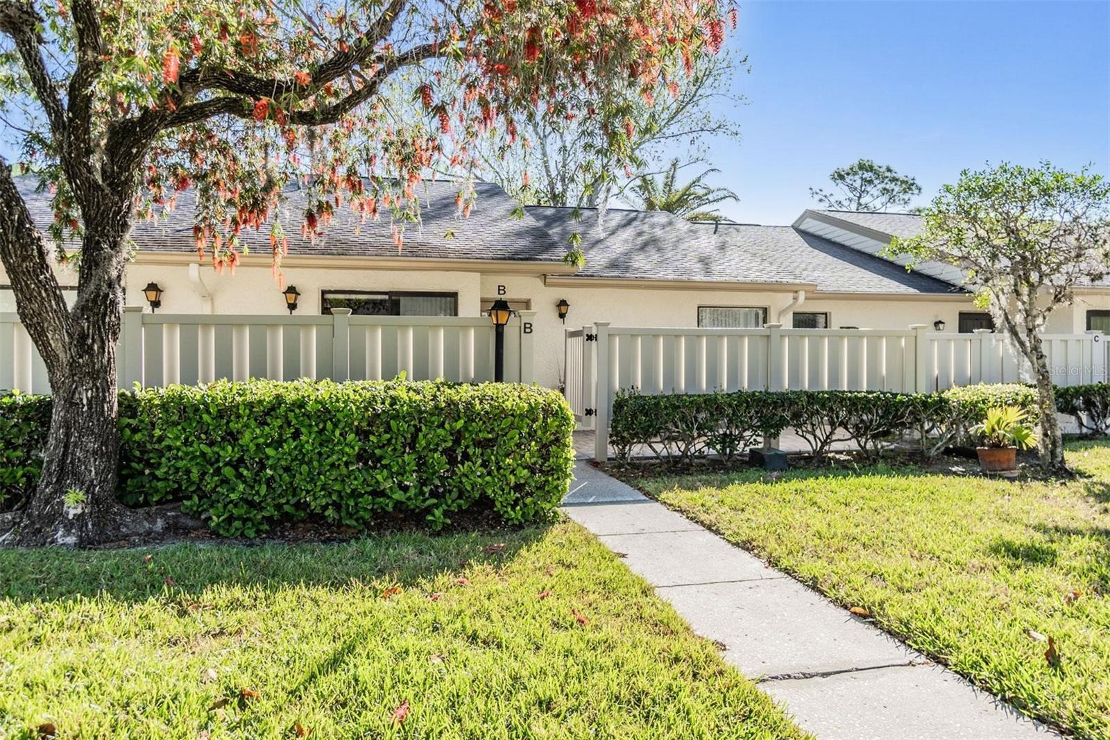 Aninhado na desejável comunidade de Pine Ridge, em Lake Tarpon, esta encantadora vila não sofreu inundações ou danos durante os furacões, oferecendo tranquilidade a seus moradores. Ao entrar, você entrará em um pátio frontal cercado extra grande que oferece um espaço generoso de entretenimento com privacidade definitiva. Ideal para grelhar, o pátio também acessa a cozinha por conveniência. Este banheiro de 2 quartos e 2 apresenta 1.177 pés quadrados, mais uma sala fechada da Flórida, abrangendo a parte de trás da vila com A/C (não incluído no Sqft total aquecido). Grande sala aberta aberta com tetos abobadados adiciona uma sensação de abertura à área de estar- mostra leve e brilhante. A cozinha atualizada possui bancadas em granito, amplo balcão e armários para armazenamento e preparação. A suíte primária possui um banheiro privativo remodelado e um closet. O segundo quarto de hóspedes e o banho de hóspedes remodelados adjacentes estão convenientemente situados na frente da vila. Aproveite a sala da Flórida fechada com unidade de armazenamento extra. Voltar, aproveite a vista dos motivos habilmente mantidos. O estacionamento designado está disponível em frente à vila, com muito estacionamento de hóspedes nas proximidades. Deer Hollow em Pine Ridge é uma comunidade fantástica que oferece: clube, piscina e spa, quadras de tênis, playground, manutenção da vila, incluindo manutenção externa, terrenos, lixo e água. Localizado perto de todas as comodidades, compras, parques e praias, esta vila é perfeita para casais que procuram reduzir o tamanho ou procurar uma escapada de inverno.