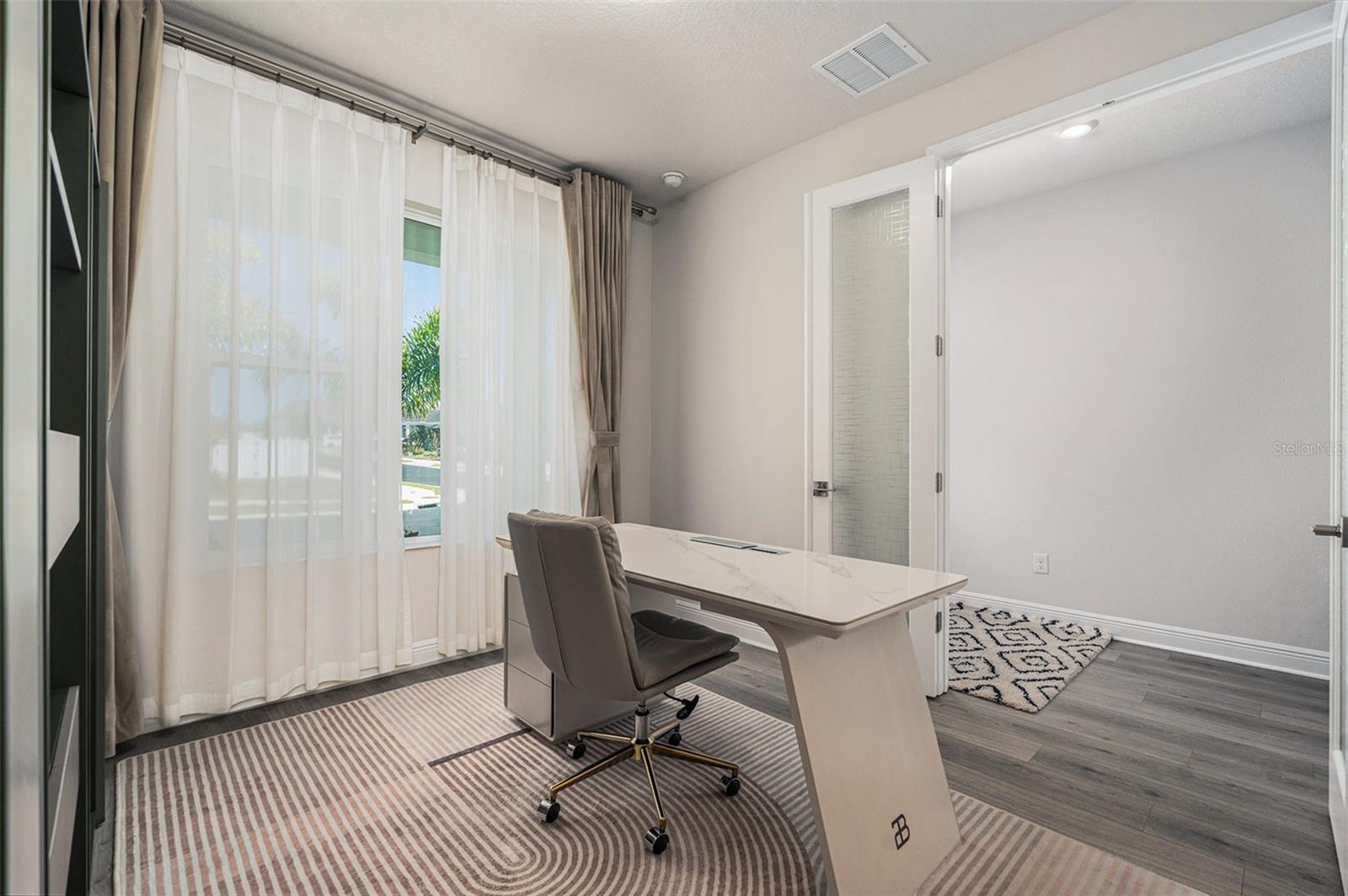 Luxo, espaço e vistas deslumbrantes da água! Esta é sua chance de possuir uma casa de 5 camas e 3 banheiros, construída por David Weekley, no exclusivo condomínio fechado de Eagle Creek Estates. Com tetos de 9 pés, pisos de madeira e porcelana, esta casa combina estilo e durabilidade. A cozinha do chef apresenta bancadas de pedra e novos aparelhos que fluem para as áreas de jantar e de estar; Perfeito para entretenimento. As portas francesas do estudo oferecem um espaço de trabalho tranquilo e brilhante. O quarto do primeiro andar e o banheiro completo oferecem flexibilidade para os hóspedes. No andar de cima contém o espaçoso loft, lavanderia e a suíte master de grandes dimensões. O teto dividido da suíte master elogia a impressionante vista para a água com um closet e chuveiro que criam o retiro perfeito. Aprecie a vista serena da água da extensa Lanai. Localizado próximo ao lounge da comunidade, esta casa oferece privacidade com conveniência incomparável. Agende sua turnê privada hoje e capture esta chance de esplendor superior!