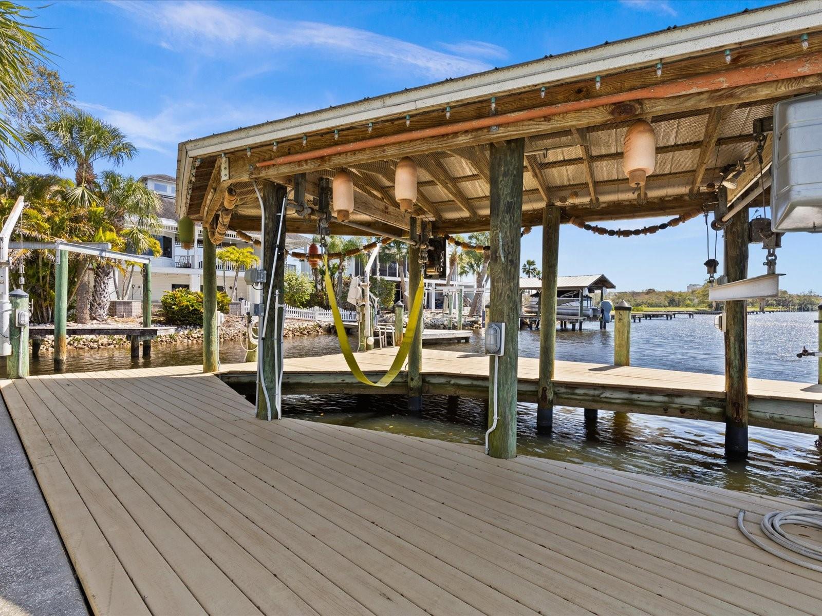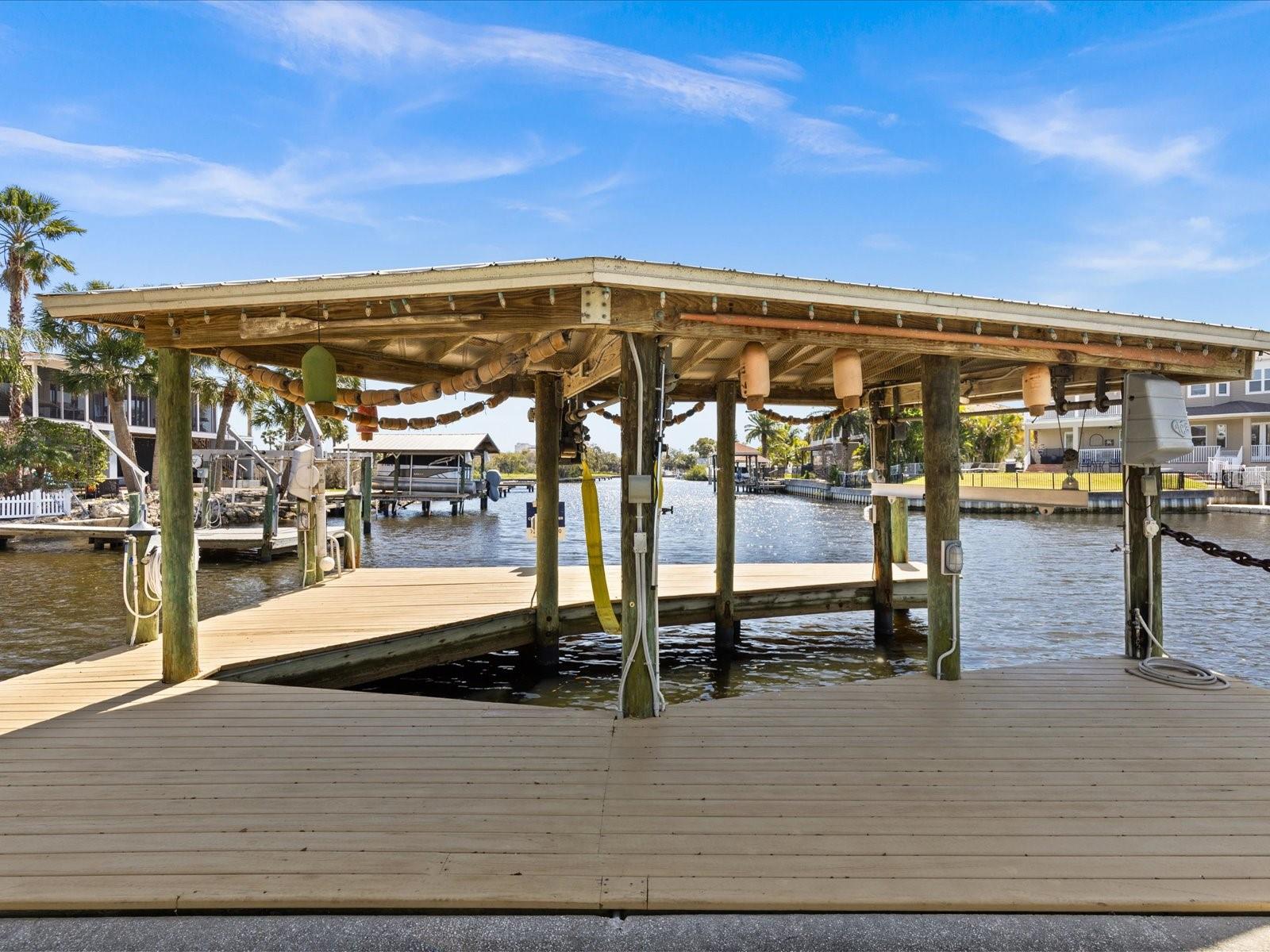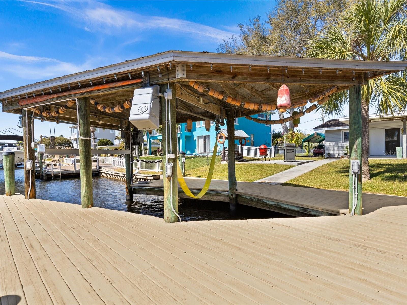 Experimente o epítome da vida à beira-mar da Flórida nesta casa excepcional! Situada ao longo de um amplo e profundo canal de água com 25 metros de orla marítima, esta residência oferece um cais privativo coberto com elevador para barcos e vistas deslumbrantes sobre o mar, proporcionando acesso direto aos igarapés, ao Rio Anclote e ao Golfo do México. Idealmente localizada perto do centro de Tarpon Springs, esta casa encantadora e meticulosamente mantida possui dois quartos e dois banheiros. A propriedade inclui uma garagem para um carro, uma garagem estendida e de tamanho generoso com uma garagem coberta removível que seria ótima para estacionamento de barcos e trailers, inundando a casa com luz solar natural e vistas para o mar de quase todos os cômodos. A cozinha se destaca, com armários de madeira, abundantes bancadas em granito e prateleiras extensíveis na despensa. Aconchegue-se ao redor da lareira de pedra a lenha nas noites frias, saboreando chocolate quente. A casa está equipada com sistemas elétricos de última geração, uma conveniente passarela de sótão de 3 pés de largura para armazenamento, sistema de irrigação e janelas contra impactos de furacões. Entre no grande pátio coberto para apreciar as amplas vistas para o mar, perfeitas para entretenimento com uma área de churrasqueira separada coberta, um chuveiro ao ar livre e um galpão versátil. O espaçoso quintal oferece amplo espaço para brincar ou adicionar uma piscina. A doca coberta e o elevador para barcos atendem aos entusiastas da navegação, permitindo fácil acesso a ilhas-barreira, aventuras de pesca ou cruzeiros relaxantes ao pôr do sol diretamente do quintal. Convenientemente localizado perto de lojas, restaurantes, Fred Howard Park Beach, Sunset Beach e das mundialmente famosas Sponge Docks, oferecendo uma variedade de culinária grega e outras delícias culinárias. Aproveite esta oportunidade para um estilo de vida à beira-mar que combina conforto, charme e localização privilegiada! O ELEVADOR DE BARCO HVAV 2023 ACOMODARÁ 12.000 LBS POR PROPRIETÁRIO