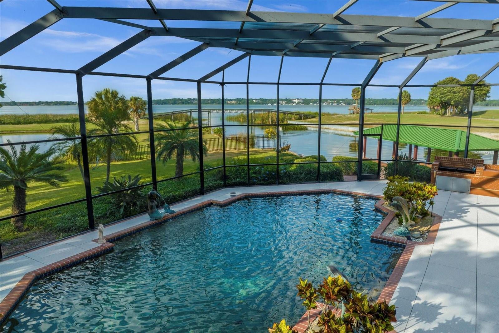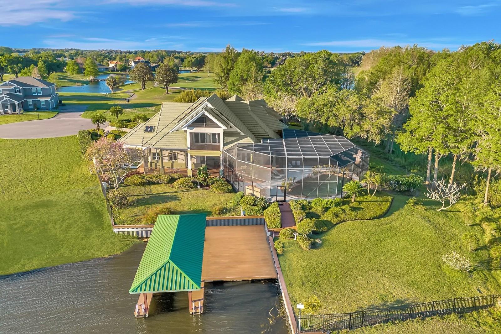 A luxuosa vida à beira do lago convida você para seu retiro particular no coração da Flórida Central. Esta extensa propriedade fica em uma localização privilegiada no Lago Dora, parte da Cadeia de Lagos Harris, onde você pode desfrutar de vistas deslumbrantes do nascer e do pôr do sol. Com quatro quartos, quatro banheiros e meio, uma cozinha gourmet e uma impressionante piscina e pátio, esta casa com design exclusivo emana sofisticação em Deer Island, uma verdadeira ilha natural de 400 acres. Uma entrada circular em um beco sem saída recebe você em seu santuário sereno, onde amplas janelas do chão ao teto inundam o espaço com luz natural e oferecem vistas panorâmicas, convidando você a relaxar. A suíte principal serve como um refúgio de tranquilidade, com lareira a gás, um lago de pedra envolvente com fonte e uma área de estar protegida onde os sons suaves da água corrente e o canto dos pássaros melhoram sua experiência de spa. Esta suíte também possui um bar, dois closets separados, banheira de hidromassagem, box amplo e lustres cativantes. As áreas de jantar e de estar artisticamente projetadas oferecem vistas panorâmicas, perfeitas para reuniões com a família e amigos. A cozinha dos sonhos do chef possui conveniências modernas, como bancadas de granito, uma ilha grande, armários personalizados para amplo armazenamento, uma grande despensa e eletrodomésticos de aço inoxidável. Ele se estende perfeitamente tanto para uma área de bar molhado quanto para uma magnífica varanda coberta, oferecendo vistas pitorescas do Lago Dora. Sua fuga diária para o paraíso o aguarda com uma piscina aquecida em estilo resort, uma banheira de hidromassagem separada no solo, uma lareira a gás propano, uma churrasqueira de tijolos, uma exuberante folhagem tropical, uma espetacular cozinha de verão e espaçosas áreas de estar e de estar. No andar de cima, descubra três quartos cuidadosamente projetados que compartilham uma varanda com vista para o Lago Dora, dois banheiros completos e espaço de armazenamento adicional. Os recursos adicionais incluem uma garagem para três carros generosamente iluminada e ventilada, sistemas de filtragem de água e amaciadores de água para toda a casa, painéis solares econômicos e um ancoradouro privativo com dois elevadores elétricos para barcos, proporcionando acesso ao Lago Dora e além. Aventuras no centro de Monte Dora ou Tavares estão a apenas uma curta viagem de barco. Restaurantes à beira-mar e boutiques estão disponíveis em Tavares, na America’s Seaplane City, e no histórico Mount Dora. Em seu oásis particular, você poderá desfrutar de tudo isso quantas vezes desejar. O exclusivo condomínio fechado de Deer Island é uma ilha natural de 400 acres cercada pelo Lago Dora e pelo Lago Beauclair. Possui um imponente campo de golfe profissional de 18 buracos, de propriedade privada, recentemente nomeado um dos 50 melhores campos de golfe públicos da América. Ele também está classificado em 5º lugar nos 25 melhores cursos da Flórida! A apenas cerca de 45 minutos de Orlando, Deer Island oferece o estilo de vida ativo e relaxante que você procura na Flórida Central.