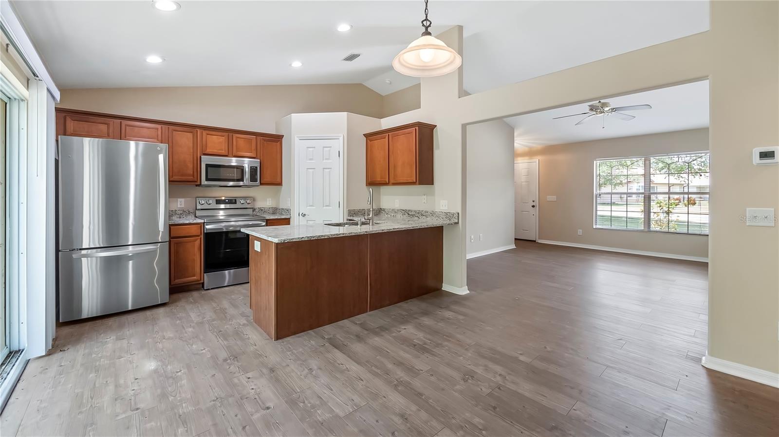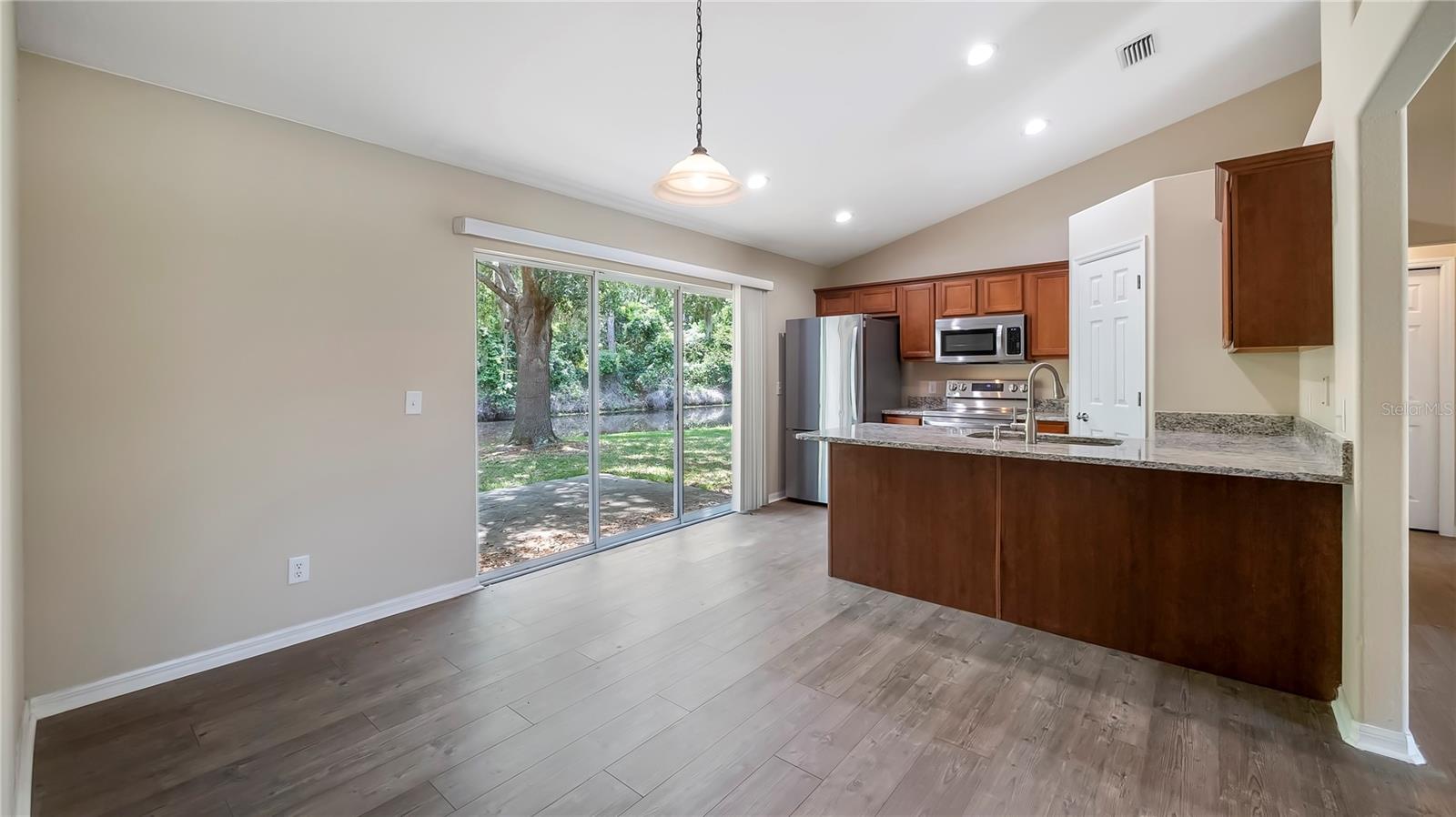 Sem vizinhos de trás, apenas um lago que tem uma família de patos fofos que vêm nos visitar! Venha conhecer esta casa reformada com telhado totalmente novo, balcões de granito e piso totalmente novo! Não há necessidade de fazer nada além de trazer seus móveis e morar! Ótima planta baixa sem desperdício de espaço, por isso parece ainda maior do que a metragem quadrada indica! A cozinha tem todos os eletrodomésticos de aço inoxidável, bancadas em granito e muito espaço na bancada. Faça uma refeição casual no bar de café da manhã ou na sua sala de jantar. Como se abre para a área de jantar e os controles deslizantes se abrem para a área do pátio, este é um lugar incrível para churrascos e diversão! Quer apenas relaxar? Isso funciona aqui também! Este quintal é tranquilo com a área de conservação, então é só o lago e as árvores! Sente-se no seu pátio e aproveite a brisa de todos os lagos e espaços abertos próximos. A sala de estar maior, com teto abobadado, tem muito espaço para uma seção ou um sofá e cadeiras para aproveitar o tempo lá dentro também! A suíte principal tem um tamanho generoso, com bastante espaço para sua suíte. O banheiro foi atualizado com um enorme espelho sobre as pias duplas e balcões de granito, torneiras atualizadas e um ótimo chuveiro sem transição. Os quartos de hóspedes têm amplo armário e o banheiro de hóspedes tem o mesmo granito e encanamento do quarto principal. Esta banheira tem uma combinação de chuveiro/banheira com parede de azulejos! Sua lavanderia interna tem até lavadora e secadora, então venha já! Com localização central na Flórida Central, em uma comunidade com mais de 55 anos, mas a poucos quarteirões de uma rampa de barco pública para o Lago Eustis, parte da Cadeia de Lagos do Lago Harris. Os restaurantes locais ficam a poucos quarteirões, além de redes de restaurantes maiores a poucos minutos desta comunidade menor. Centros comerciais locais e regionais a 10 minutos. Tavares, Leesburg e o encantador Monte Dora são cidades próximas. O Aeroporto Internacional de Orlando fica a cerca de uma hora, assim como todos os principais parques temáticos, como Walt Disney World, Universal Studios, Sea World e outras atrações, e os principais shoppings e centros outlet. Por favor, veja o vídeo do interior/drone, mas reserve um tempo para ver esta incrível casa pessoalmente!