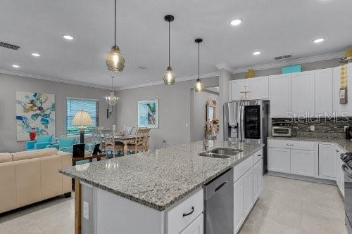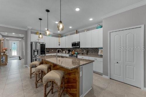 Esta casa meticulosa está disponível na comunidade de golfe The Deer Island Club no buraco #9. Construída pela Maronda Homes em 2021, é uma casa inteligente e apresenta inúmeras atualizações, como: tetos de bandeja, sancas, geladeira, porta frontal com painel de vidro personalizado, detalhes em pedra no exterior frontal, tampos de granito nos banheiros, chuveiro com efeito de chuva em banheiro principal, backsplash de cozinha, carpete luxuoso de baixo perfil no primário, iluminação pendente sobre balcão de café da manhã detalhado em madeira personalizada, ventiladores de teto Hunter, iluminação de entrada, persianas personalizadas no pátio, calhas de chuva, sótão decorado para armazenamento extra, garagem com armários personalizados, é alcatifado e portão de garagem com câmara de segurança. Deer Island é um condomínio fechado e requer um código de acesso das 18h às 6h. Associações de golfe disponíveis. Se você gosta de passear de barco, a ilha oferece rampas para barcos com acesso à Cadeia de Lagos Harris, no centro de Mt. Dora fica a menos de dois quilômetros de distância por água. Os residentes podem usar o clube, a piscina comunitária, as quadras de tênis e o pickleball.