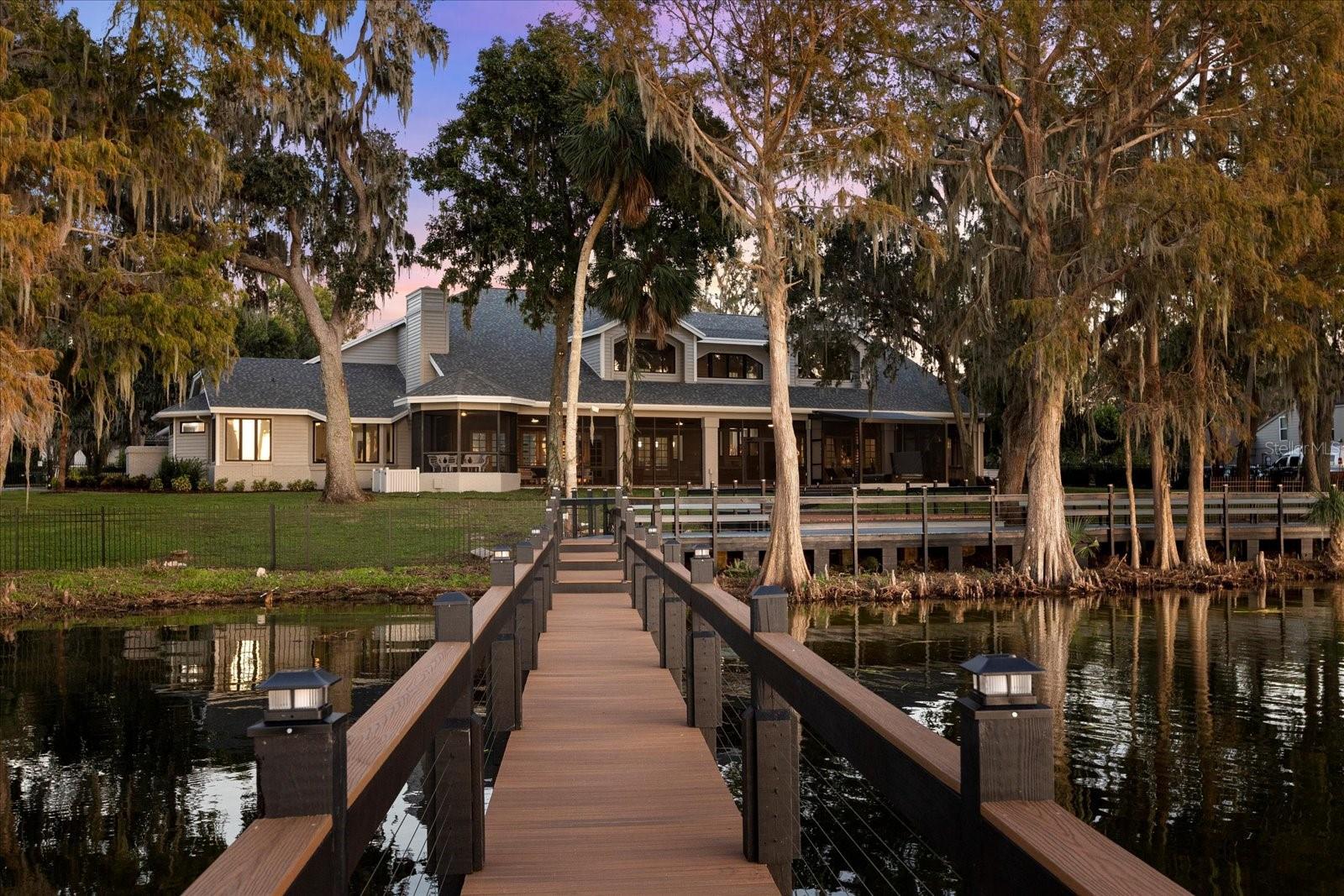 Descubra o luxo incomparável e a vida serena à beira do lago nesta obra-prima arquitetônica localizada na impressionante comunidade de Squirrel Point. Com mais de 300 pés de costa no Lago Dora, parte da renomada Cadeia de Lagos Harris, e 1,5 hectares de propriedade exuberante, esta residência oferece pôr do sol de tirar o fôlego e o melhor estilo de vida à beira-mar. Sua nova casa de barco particular possui elevador para seu barco e amplo espaço para dois jet skis, garantindo aventuras perfeitas na água. Em aproximadamente 10 minutos de barco, você pode chegar ao centro de Tavares, a "Cidade dos Hidroaviões da América", ou às charmosas ruas históricas de Mount Dora, famosa por seus restaurantes excepcionais, boutiques e festivais durante todo o ano. No interior, esta casa apresenta artesanato atemporal e atualizações modernas. O piso de porcelanato flui por todo o primeiro andar, onde a vista para o lago embeleza a sala de estar, a sala de jantar, a cozinha, a suíte principal e uma suíte de hóspedes adicional. As salas de estar e de jantar impressionam com tetos altos em caixotões de 22 pés, lareira a lenha e três conjuntos de portas francesas que levam à ampla varanda. Um novo bar seco e uma parede de vinhos iluminada por LED elevam a experiência gastronômica, ideal para entretenimento. A cozinha do chef recém-renovada é um empecilho, apresentando uma impressionante ilha de cascata de quartzo, bancadas de quartzo, uma pia de fazenda e eletrodomésticos 2024 totalmente novos, incluindo uma geladeira e freezer Frigidaire Pro de 60 polegadas, fogão de indução com exaustor, lava-louças, forno duplo e microondas de gaveta. Portas francesas conectam a cozinha à varanda, onde a vida ao ar livre atinge novos patamares com múltiplas áreas de estar, uma cozinha de verão equipada com uma grelha a gás Coyote nunca usada, um frigobar e um spa totalmente novo com garantia transferível. A luxuosa suíte principal é um santuário privado, oferecendo vistas tranquilas para o lago, uma área de estar aconchegante e um closet espaçoso com amplo armazenamento e armários personalizados. O banheiro privativo é um retiro semelhante a um spa, com banheira de imersão, box amplo, pia dupla de quartzo e vaso sanitário privativo. O primeiro andar inclui ainda uma suite adicional, dois quartos de hóspedes (um actualmente utilizado como escritório e outro actualmente utilizado como ginásio), casas de banho completas, uma lavabo e uma espaçosa lavandaria. No andar de cima, um loft versátil tem vista para as áreas de estar e jantar e oferece amplo espaço para relaxar, jogar ou usar no escritório. Dois quartos são cuidadosamente conectados internamente por um banheiro Jack-and-Jill remodelado e externamente por uma varanda coberta. O acesso adicional ao sótão garante armazenamento conveniente. O telhado foi substituído em 2019. Extensas atualizações em 2024 elevam a funcionalidade e a estética da casa, incluindo novos ventiladores de teto e luminárias por toda parte, motores de porta de garagem acionados por correia com entrada de garagem fechada e teclado, pintura interna e externa fresca, um gerador GENERAC de 26,5 kW , quatro novas unidades de ar condicionado, um sistema de irrigação atualizado, um cais composto, deck e passarela de madeira tratada com pressão e um novo elevador para barcos. Esta casa é realmente o sonho de qualquer artista, oferecendo espaços internos e externos perfeitos para hospedar reuniões grandes ou pequenas. Desde os seus acabamentos requintados até à sua localização incomparável à beira do lago, esta propriedade é um achado raro que promete um estilo de vida de elegância, conforto e aventura. Agende seu tour privado hoje e experimente esta extraordinária propriedade à beira do lago em primeira mão!