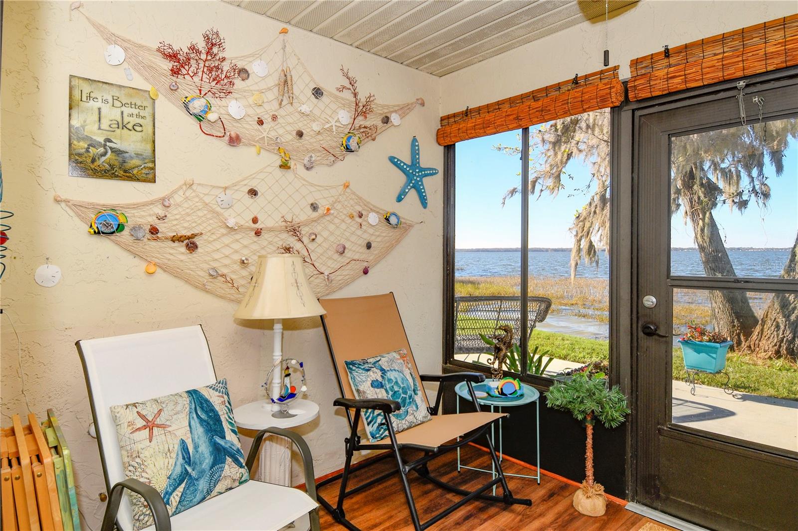 Direct Lakefront-Lake Eustis-Este lindo condomínio à beira do lago 2/2 foi transformado em um oásis de deleite tropical. A decoração e os móveis temáticos da praia (alguns dos quais estão disponíveis para a lista de compras em anexos) apenas faz você sentir que entrou em sua própria ilha particular. Contribuição do vendedor para os custos do comprador no valor de US $ 1.000,00 no fechamento. A suíte master enfrenta o lago, além de sair da porta dos fundos alguns degraus para apreciar a doca da comunidade e o gazebo. Esta casa tem muito espaço no armário com o vestígio, entre no armário da suíte master com prateleiras personalizadas e o Hall Bath tem seu próprio armário de linho. O quarto de hóspedes tem vista para o pátio privado. As atualizações incluem o novo telhado de "C" em 2021, novo A/C 2019 ', vinil de luxo de nova prancha em toda a casa em 22'. Nova tinta interior, novos acessórios de teto, tinta fresca em armários de madeira maciça na cozinha, novas bancadas de quartzo na cozinha. Mantendo com o tema, a antiga despensa de “porta” da cozinha foi removida e substituída por um buffet exclusivo para servir e armazenamento (além de que esta cozinha come na área na janela da sacada com vista para o pátio) também foram adicionados novos balcões e pias nos dois banhos, a nova gaiola ou o zagueiro lateral. A nova lavadora e secadora empilhável da GE foi instalada com prateleiras adjacentes para obter mais armazenamento. Esta comunidade amigável inclui uma grande piscina, spa e área de deck e é um local de encontro favorito para muitas atividades e sempre tem alguns eventos planejados para a maioria dos meses. O fato de ser um carrinho de golfe amigável faz as curtas viagens ao centro de "Sea Plane City" Tavares a apenas alguns minutos. O Cypress Cove é um trajeto fácil para o Aeroporto Internacional de Orlando, além de fazer compras e entretenimento a poucos minutos de casa! Aproveite a vida na água! As docas da comunidade são "Primeiro a chegar o primeiro saque".