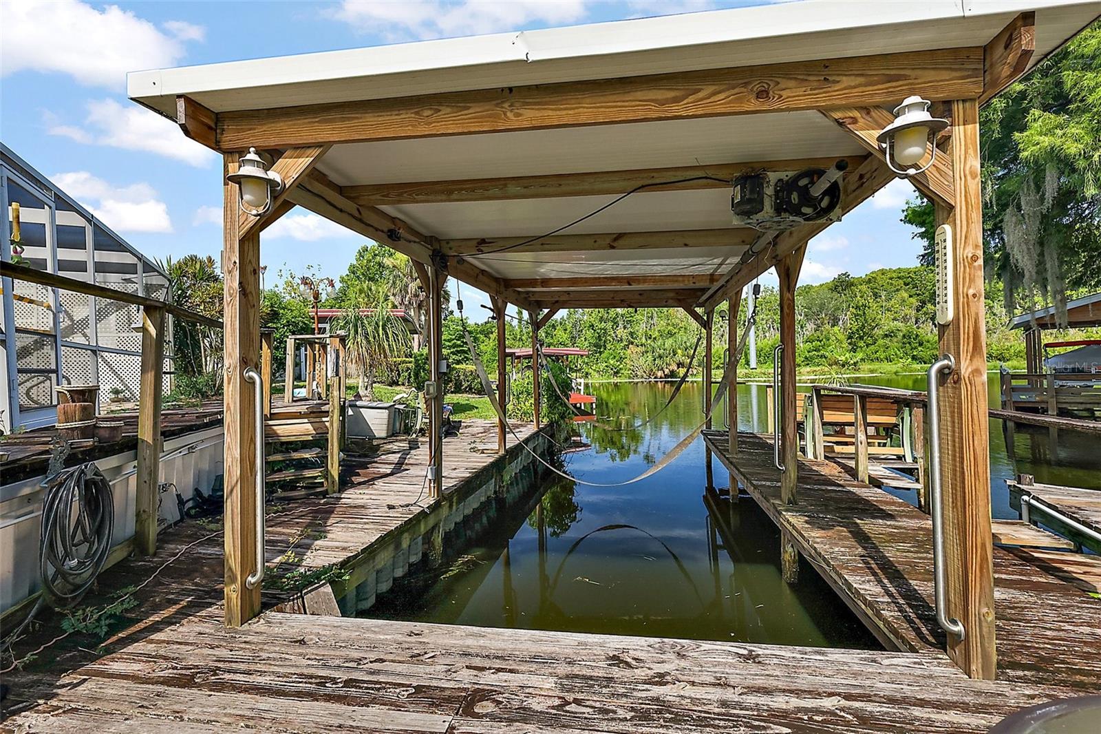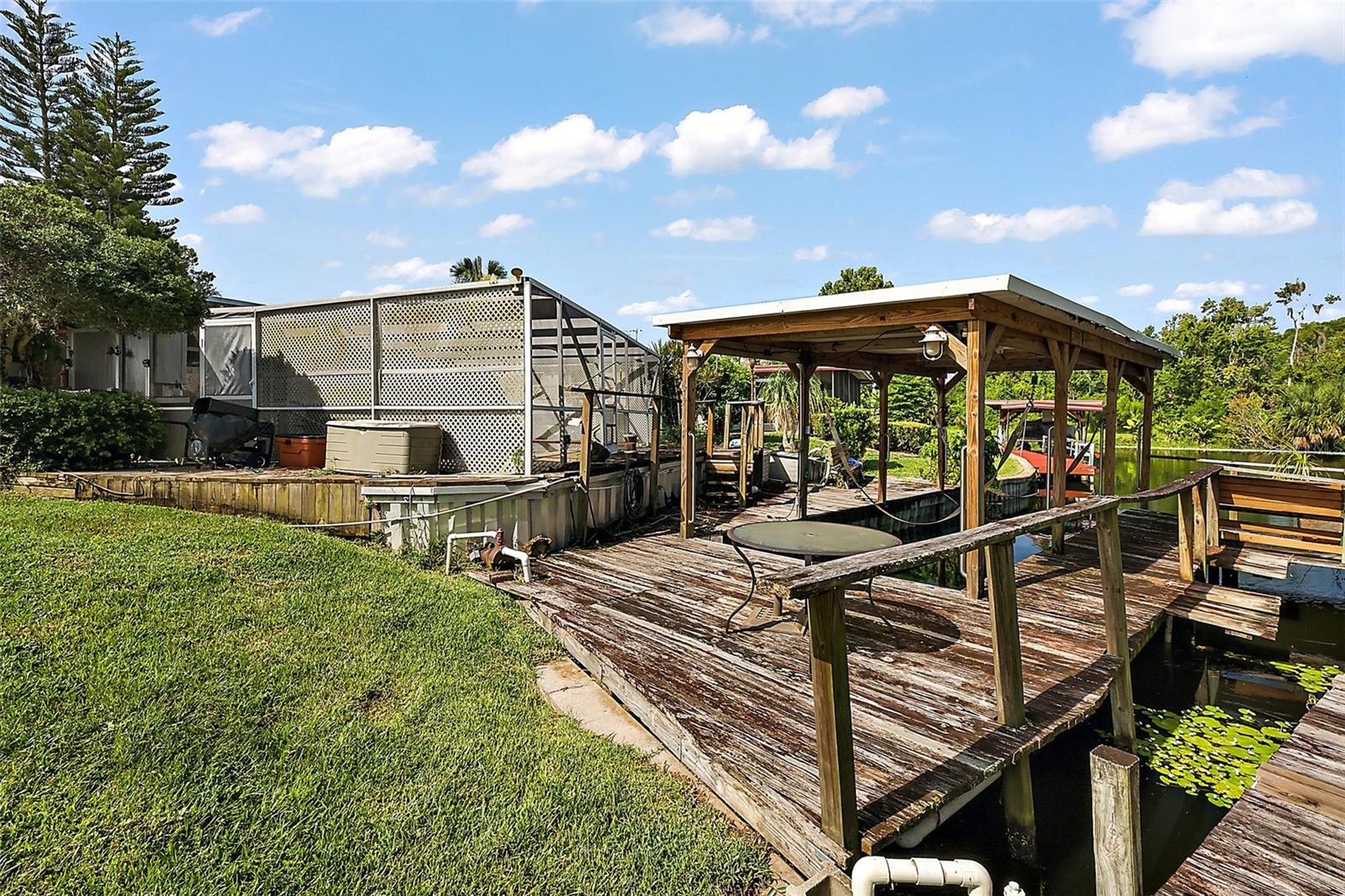 Situada na procurada comunidade de mais de 55 pessoas de Imperial Terrace West, em Tavares, Flórida, está esta propriedade em frente ao canal de água doce. O 2 quartos, A casa de planta aberta com 2-1/2 banheiros fica em um terreno de esquina. A entrada circular pode acomodar quatro veículos e possui vegetação madura e paisagismo ao redor. Há duas portas de vidro deslizantes que levam a uma piscina aquecida no solo e continuam até um cais atualizado e uma casa de barcos com elevador para barcos. O interior conta com cozinha reformada com armários de madeira e geladeira de inox, fogão a gás, micro-ondas e balcão para café da manhã. Pintura atualizada e acentuada com sancas. As janelas foram atualizadas o que permite muita luz natural em toda a casa. Há um escritório/escritório logo ao lado da área de jantar. Os quartos são espaçosos com closets. Ar condicionado duplo resfria a casa. O HOA é baixo (US$ 25/mês) e NÃO HÁ ALUGUEL DE LOTE - VOCÊ É O DONO DO TERRENO! A comunidade aceita carrinhos de golfe, com piscina, banheira de hidromassagem/jacuzzi, clube, biblioteca, quadra de shuffleboard e uma infinidade de atividades no bairro durante todo o ano. Você tem que vir conhecer esta casa!