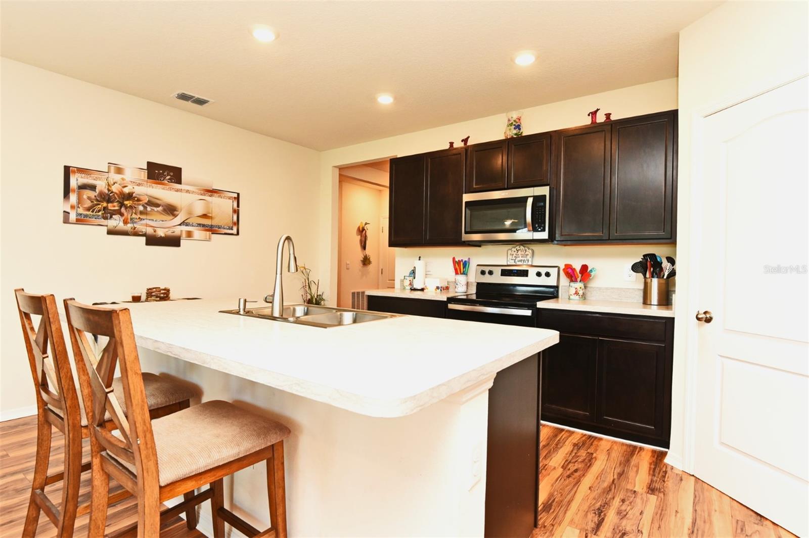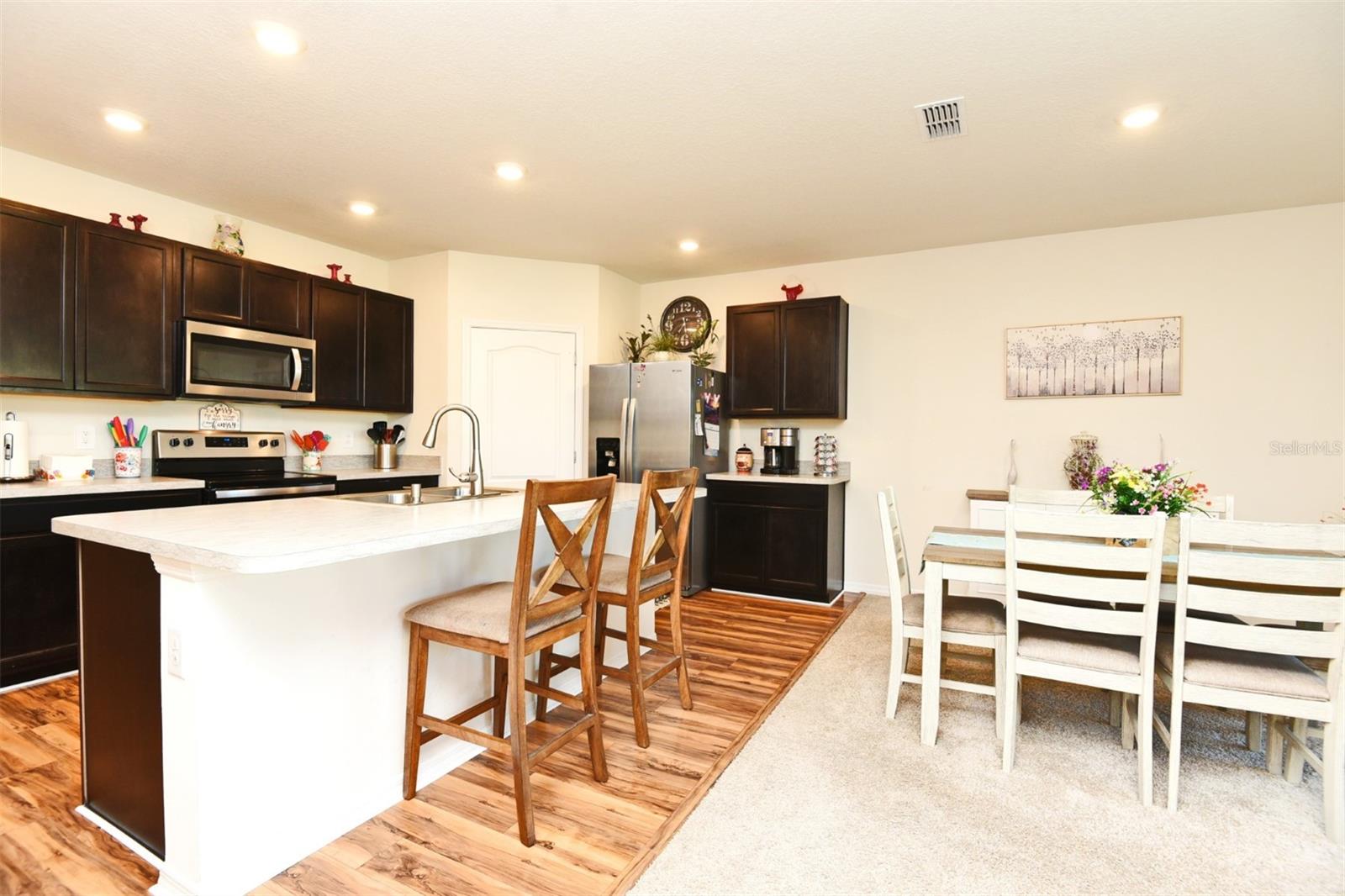 Bem-vindo a esta bela casa de 4 quartos e 2 banheiros construída em 2022. Situada em uma rua sem saída, esta propriedade oferece um cenário pitoresco com vista para um grande lago. Ao entrar, você é recebido por uma planta aberta e arejada, adornada com tetos altos e rico piso laminado que se estende perfeitamente desde a entrada até a cozinha bem equipada. A cozinha é uma delícia culinária, apresentando uma ilha grande com um bar de café da manhã para refeições casuais, uma despensa e modernos eletrodomésticos de aço inoxidável. As áreas de jantar e de estar oferecem vistas esplêndidas do quintal e do lago tranquilo. O espaço integrado de estar, jantar e cozinha facilita o entretenimento. Retire-se para o quarto principal, que oferece banheiro privativo com pias duplas, closet espaçoso e armário de roupa de cama separado. Três quartos adicionais de tamanho generoso oferecem amplo espaço para todas as suas necessidades. Há uma lavanderia interna para maior comodidade. Saia para as portas de correr para o pátio coberto e protegido e relaxe enquanto aprecia as vistas serenas. Sem vizinhos traseiros! Abrace o charme de Tavares, também conhecida como “Cidade dos Hidroaviões”, conhecida pela extensa cadeia de lagos nas proximidades. Não perca a oportunidade de personalizar este lar doce lar – ligue hoje mesmo!